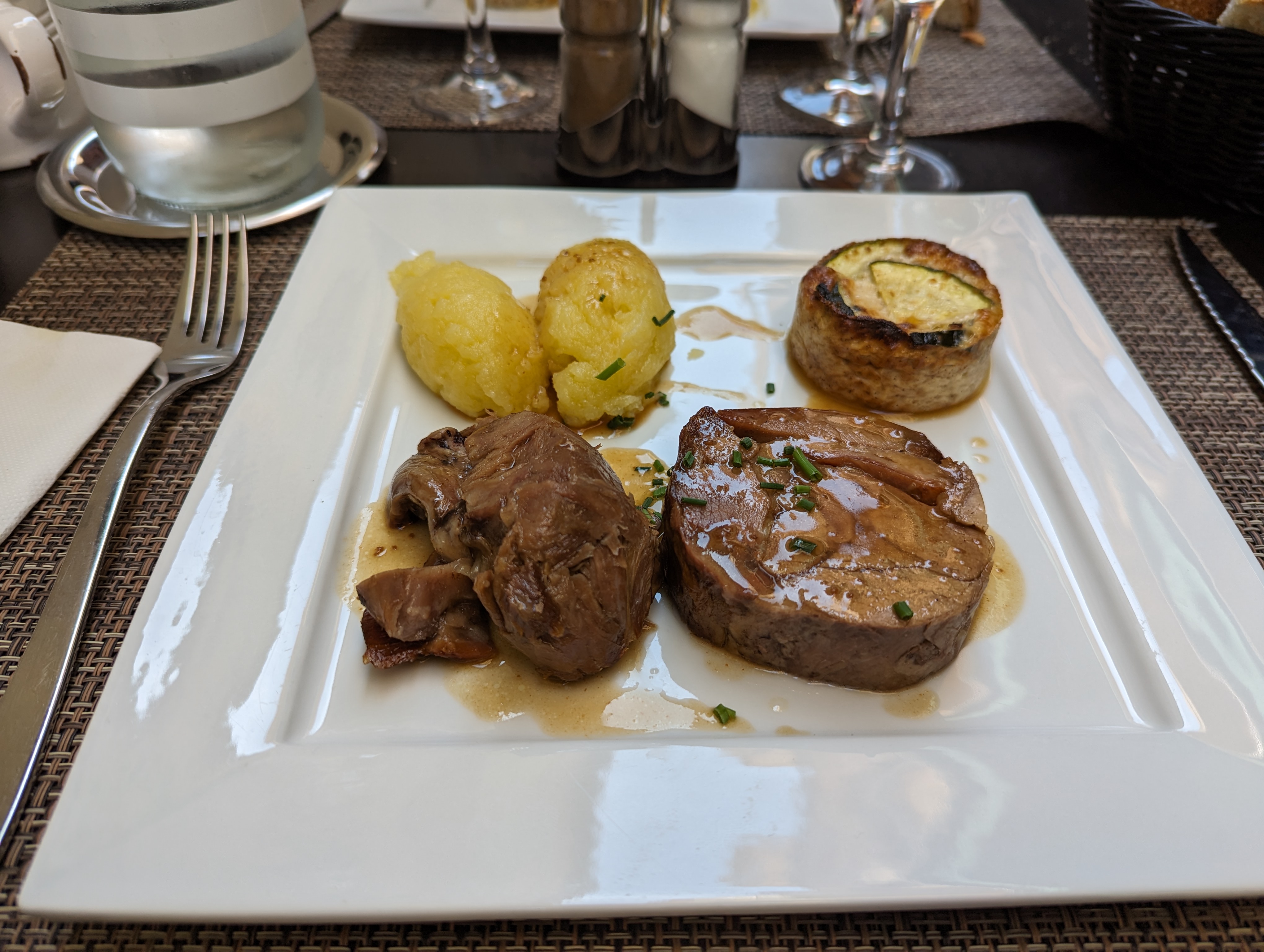 Sauté de veau excellent !!! Le cordon bleu également. Et copieux avec ça ! Sans oublier la mousse de mascarpone... Couple très sympathique aux petits soins pour les clients. Je recommande très fortement.