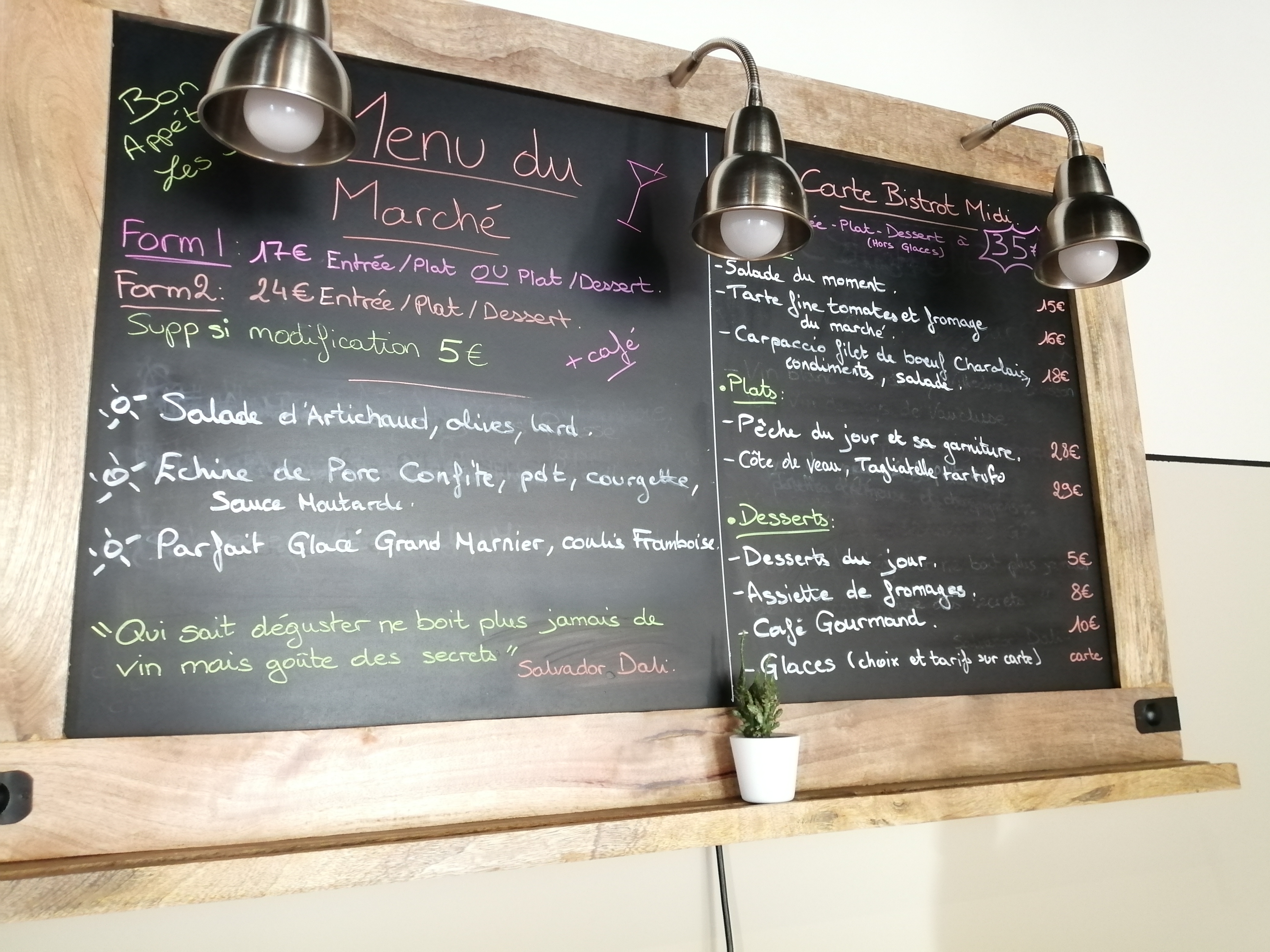 Belle carte du midi. Une adresse que nous recommanderons certainement à nos invités de Mirabel.