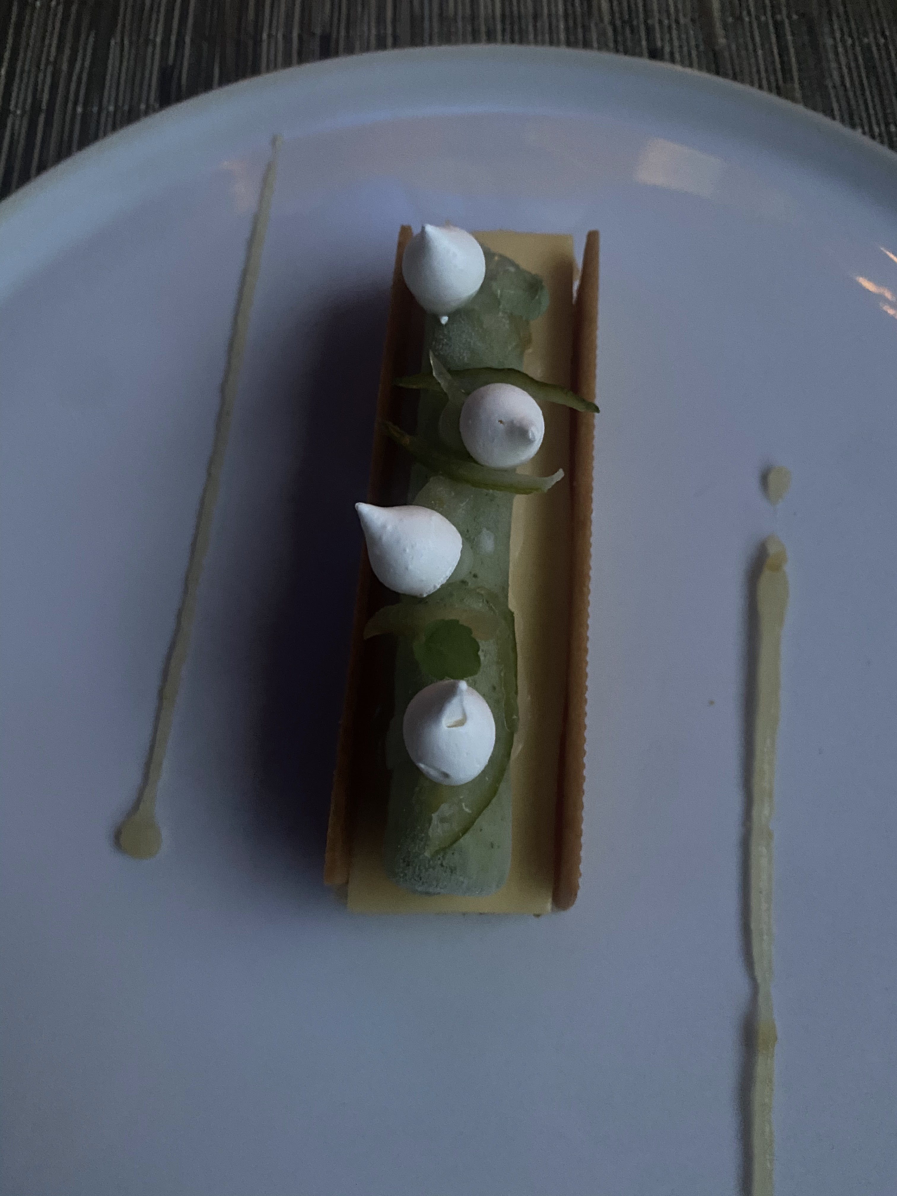 Cadre épuré Personnel au petit soin et service rapide ! Petite gougere au Comté pour commencer Ensuite, un gaspacho au melon (vraiment très bon et frais): la douceur de l'été Ensuite j'ai poursuivi avec un pavé de veau très tendre et ça sauce était terrible Accompagné d'un Mâconnais (vin rouge de Bourgogne) avec des oignons confits et sa purée de petits pois Enfin comme dessert, le clou du spectacle 😋 Un duo ananas/coco et son biscuit croquant (un mariage de goûts) Ça respire l'été ! Je reconseille fortement ce restaurant à la hauteur d'un gastronomique !!!