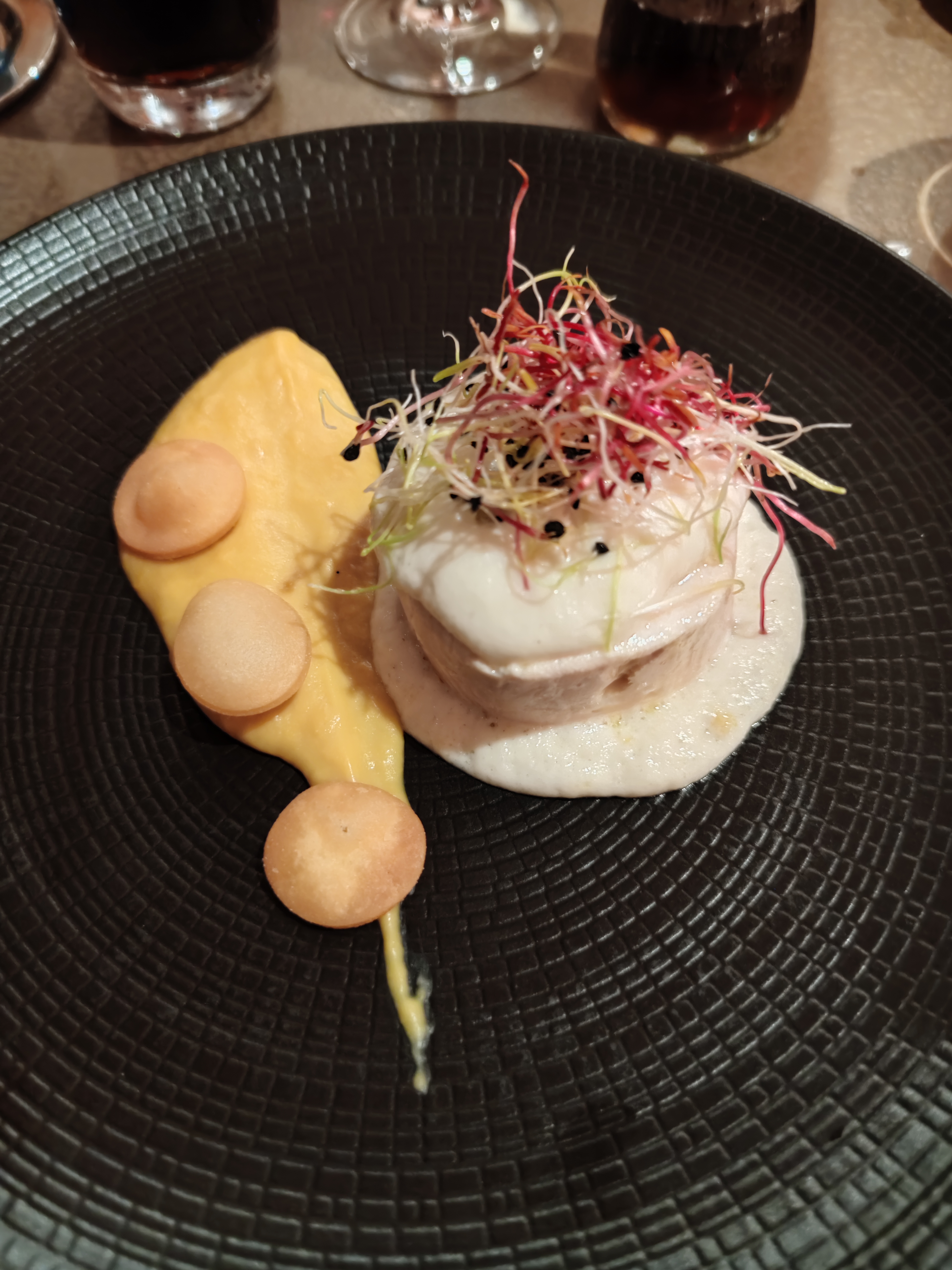 Très belle expérience gustative . La truite avec ses frites de panais et fenouil était parfaite, le veau avec son jus est délicieux et le chariot de desserts est très beau. Le service est attentif et rapide c'est appréciable. Mais un petit bémol nous a contrarié. Nous sommes partis du restaurant sans prendre de café et nous avons eu un regret. En passant devant la piscine Nous avons demandé 2 cafés mais en passant par l'accueil pour régler ces 2 cafés tout simples sans mignardise nous ont été facturés 18 € !!