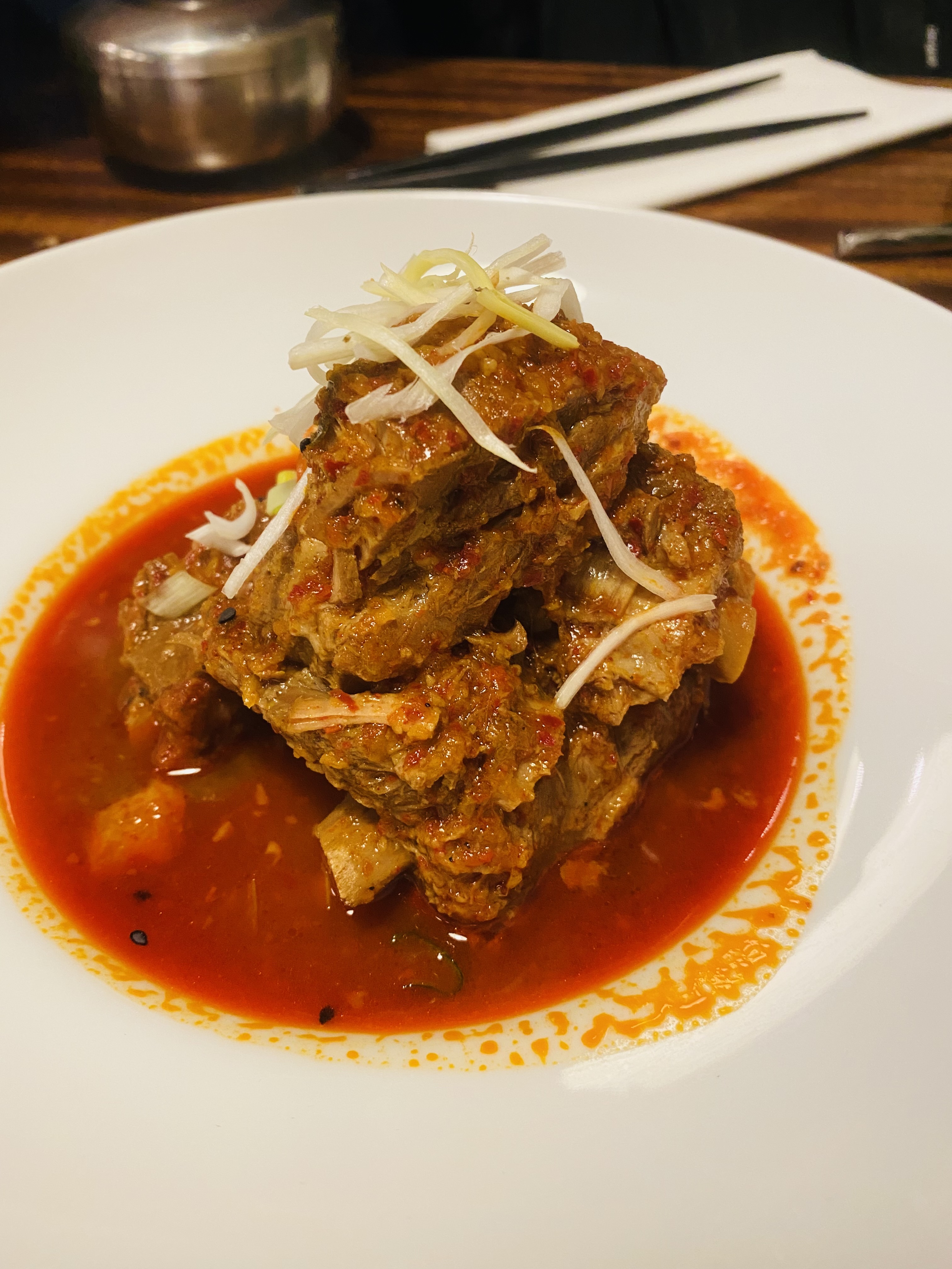 Un savoureux restaurant coréen. L'endroit peut devenir très fréquenté à l'heure du dîner, il est donc préférable de réserver avant de s'y rendre. J'ai essayé le tofu mariné et les raviolis grillés en entrée. Les deux plats sont si jolis dans l’assiette que j’ai l’impression de m’être définitivement nourri les yeux avant de manger. Le plat principal, une soupe de bœuf épicée avec du riz, est également délicieuse. J'ai vraiment apprécié la chaleur à l'intérieur de la soupe.