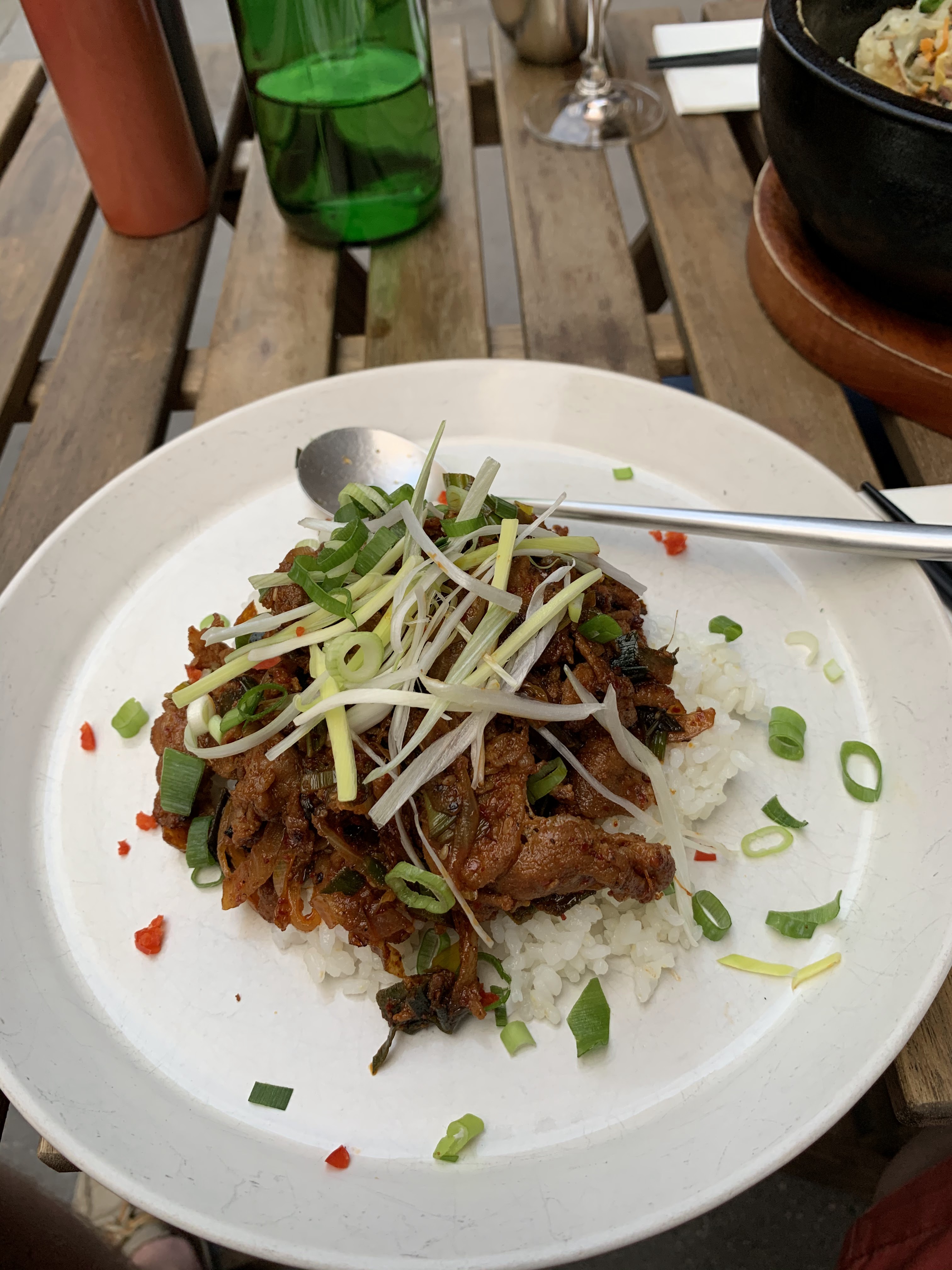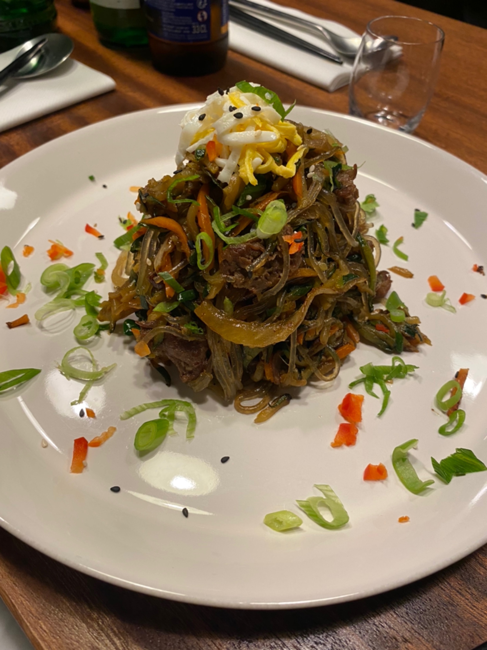 Bulgogi et japchae commandés. Tout était bien, surtout le bulgogi. Je ne dirais pas que c'étaient des plats coréens authentiques mais c'était plutôt une fusion (bonne). Le prix est correct et l'ambiance était bonne, ce qui signifie que c'était confortable et propre même si l'ambiance n'était pas vraiment coréenne.