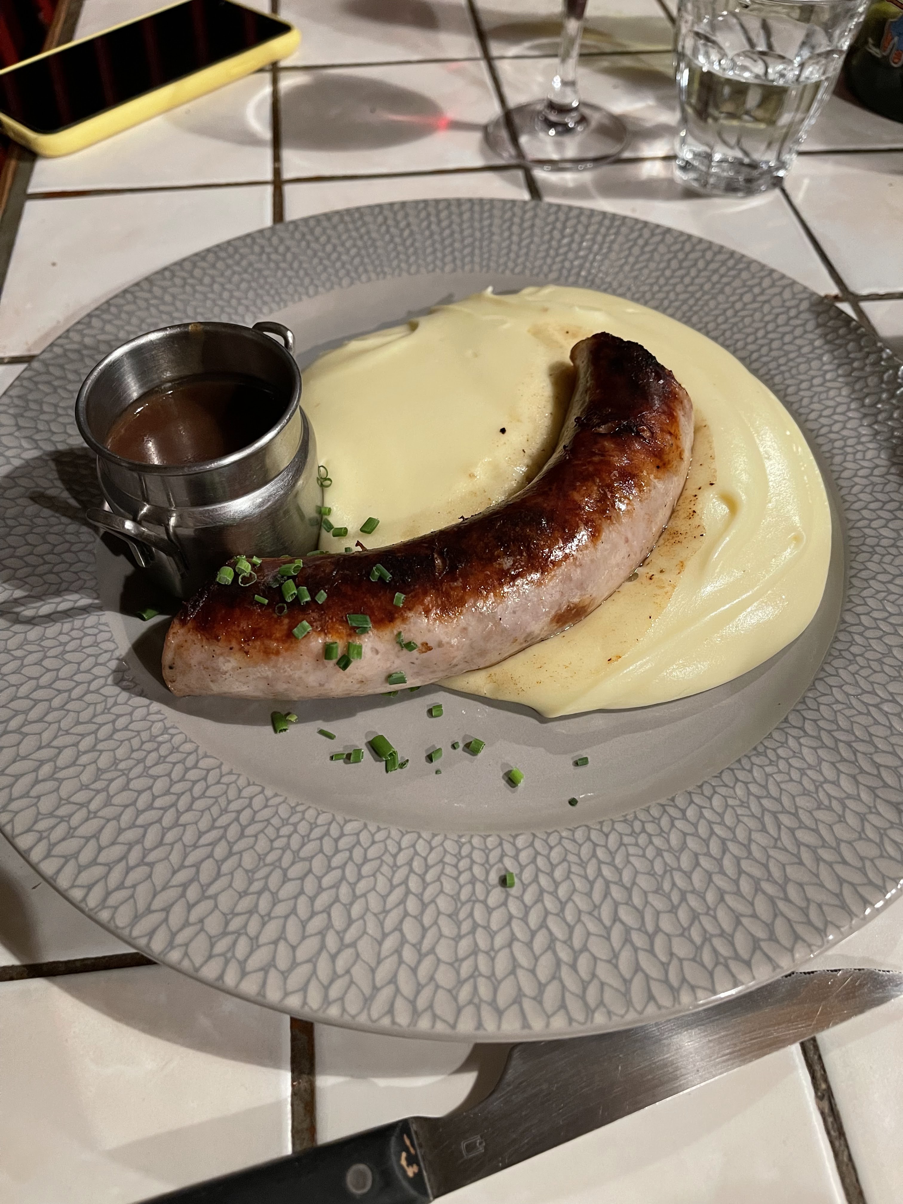 Ambiance chaleureuse ! Saucisse au couteau - aligot Un plat typique même si l’aligot n’a pas filé pour les habitués. Je reviendrai pour goûter d’autres plats !!!