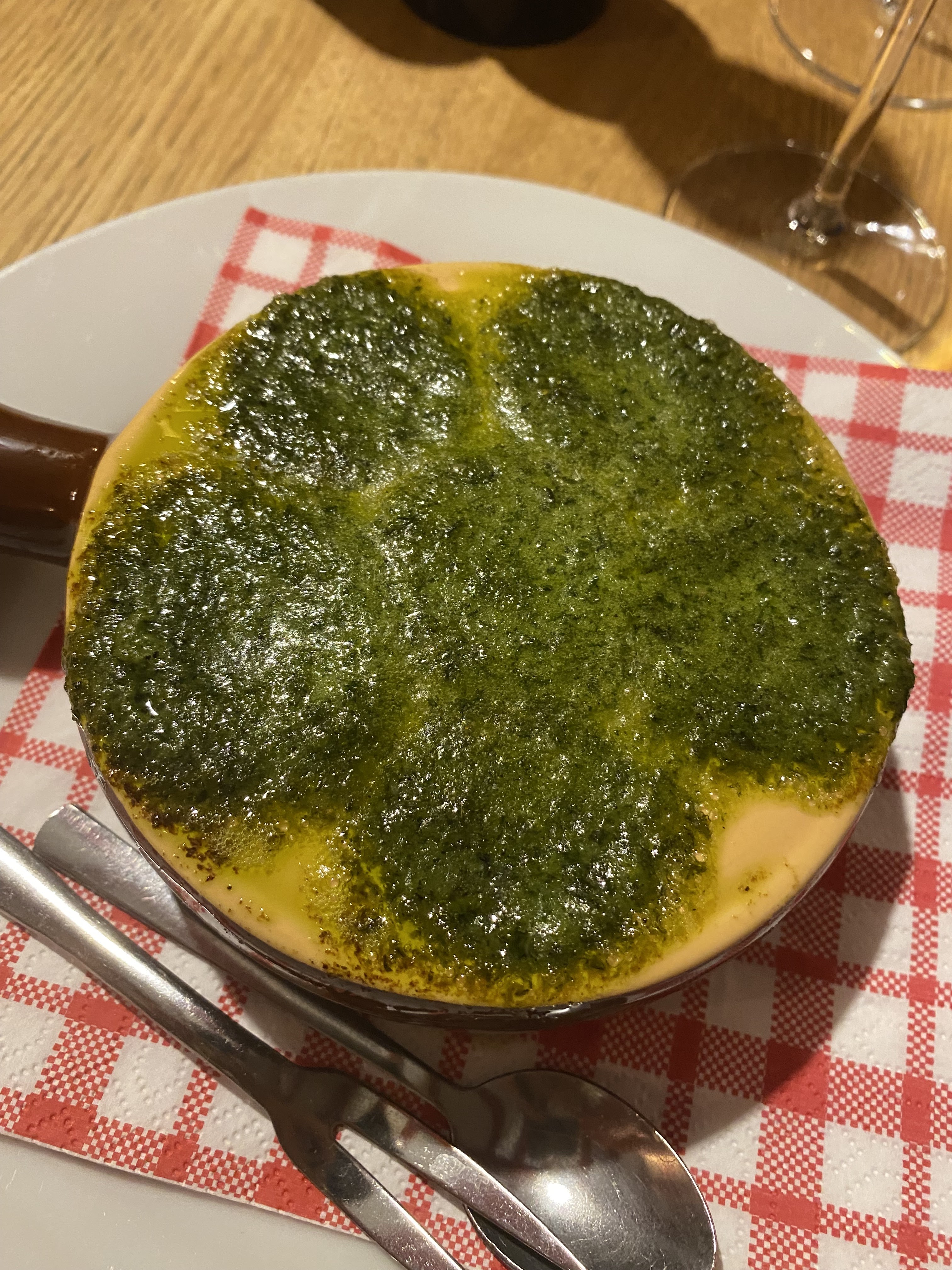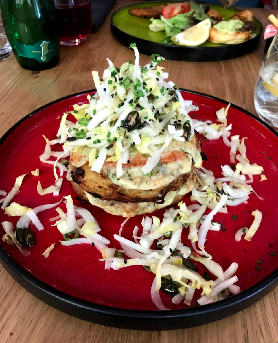 On a commandé un flammenkuch et le pavé de thon et les deux étaient très bonnes ! Comme dessert on a pris le crème brûle qui est vraiment incroyable ! Les serveurs sont très gentils et l’ambiance est chaleureuse.