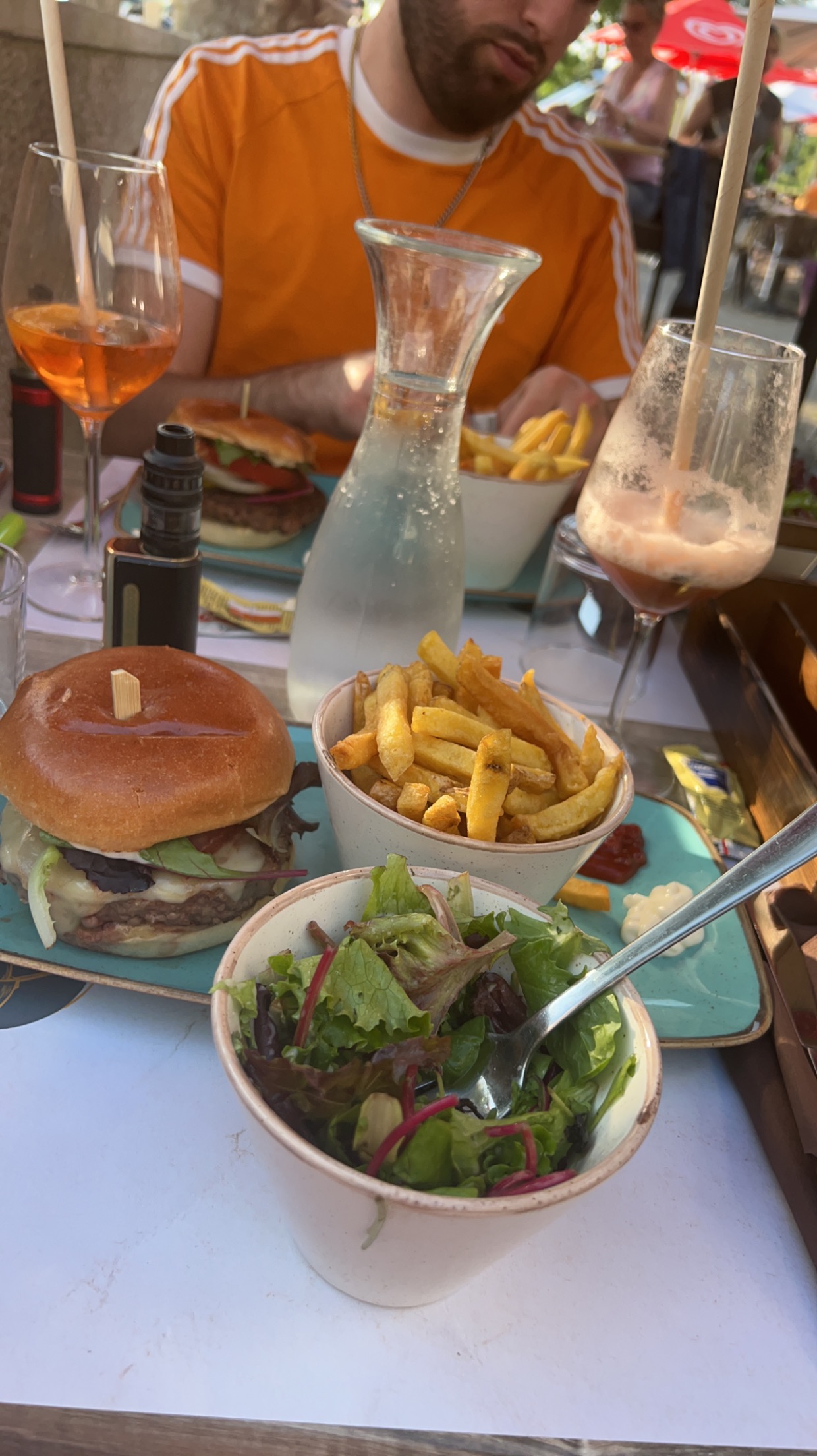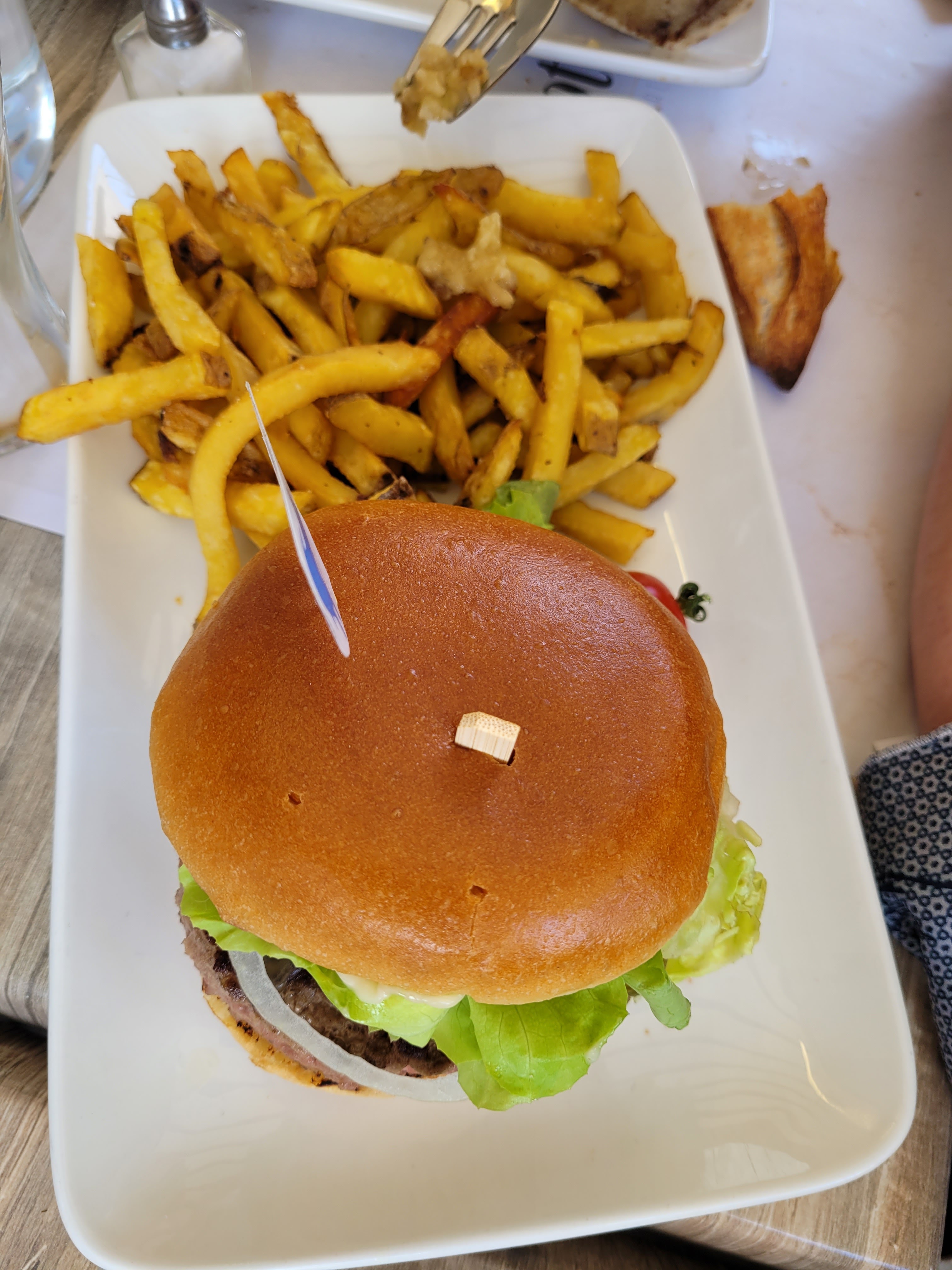 En week-end dans la région en famille on a été ravi de déguster un tres bon burger au bleu avec des frites maison, en terrasse avec des serveurs agreables et aux petits soins !