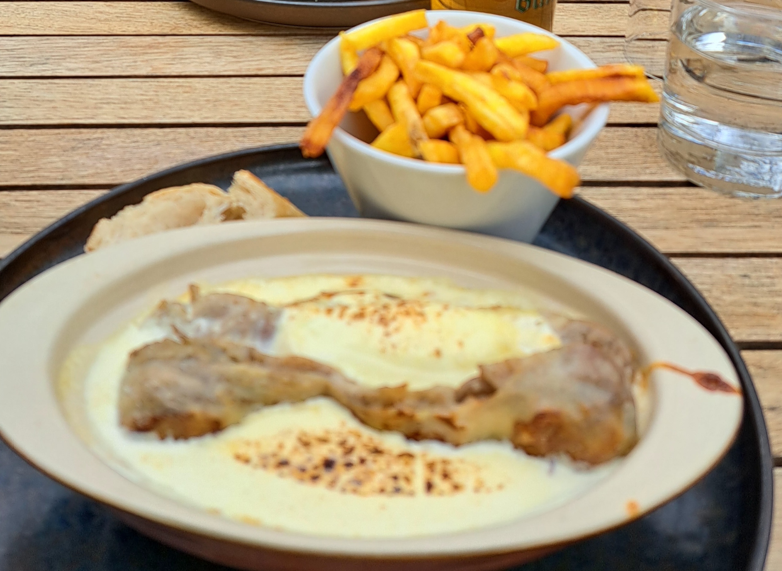 Petit bistrot, juste à côté de la Basilipue Saint Urbain. Nous avons eu 2x Burger du Bistrot et 1x Triologie D'Oeufs Parfaits. Malheureusement, la sauce Meurette et la sauce Morilles étaient très mal exécutées et quasiment immangeables. La sauce Epiosse, par contre, était bonne. Malheureusement, les frites des trois plats principaux étaient trop grasses et pas croustillantes. Je l'ai signalé à deux serveurs et ils n'ont pas répondu. Les jeunes serveurs ne savaient probablement pas comment gérer correctement la situation. C'est dommage, je m'attendais à une sorte de situation.
