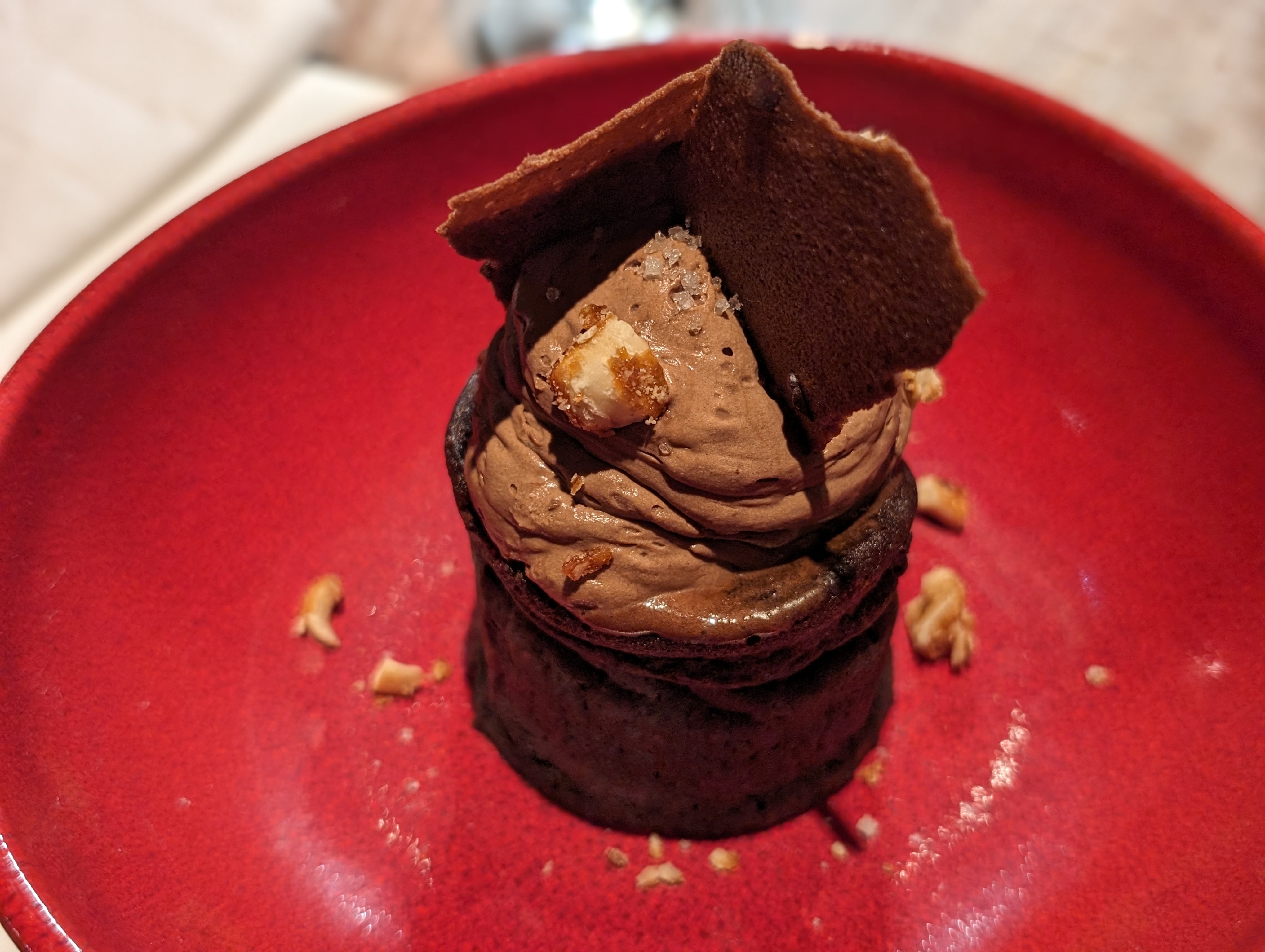 Déjeuner. Pavé de saumon environ 120g.dans une vulgaire émulsion....Les frites mini. Le moelleux chocolat tout petit enviro 4m de diamètre le tout 24.99 plus 2 € de supplément pour le moelleux non signalé par le porte assiette.le kf 3.50 robusta je pense pas terrible.. 2 verres de vin pas terrible à 6/7 € . Total plus de 70€ à 2 pour midi c très cher et vraiment pas terrible.