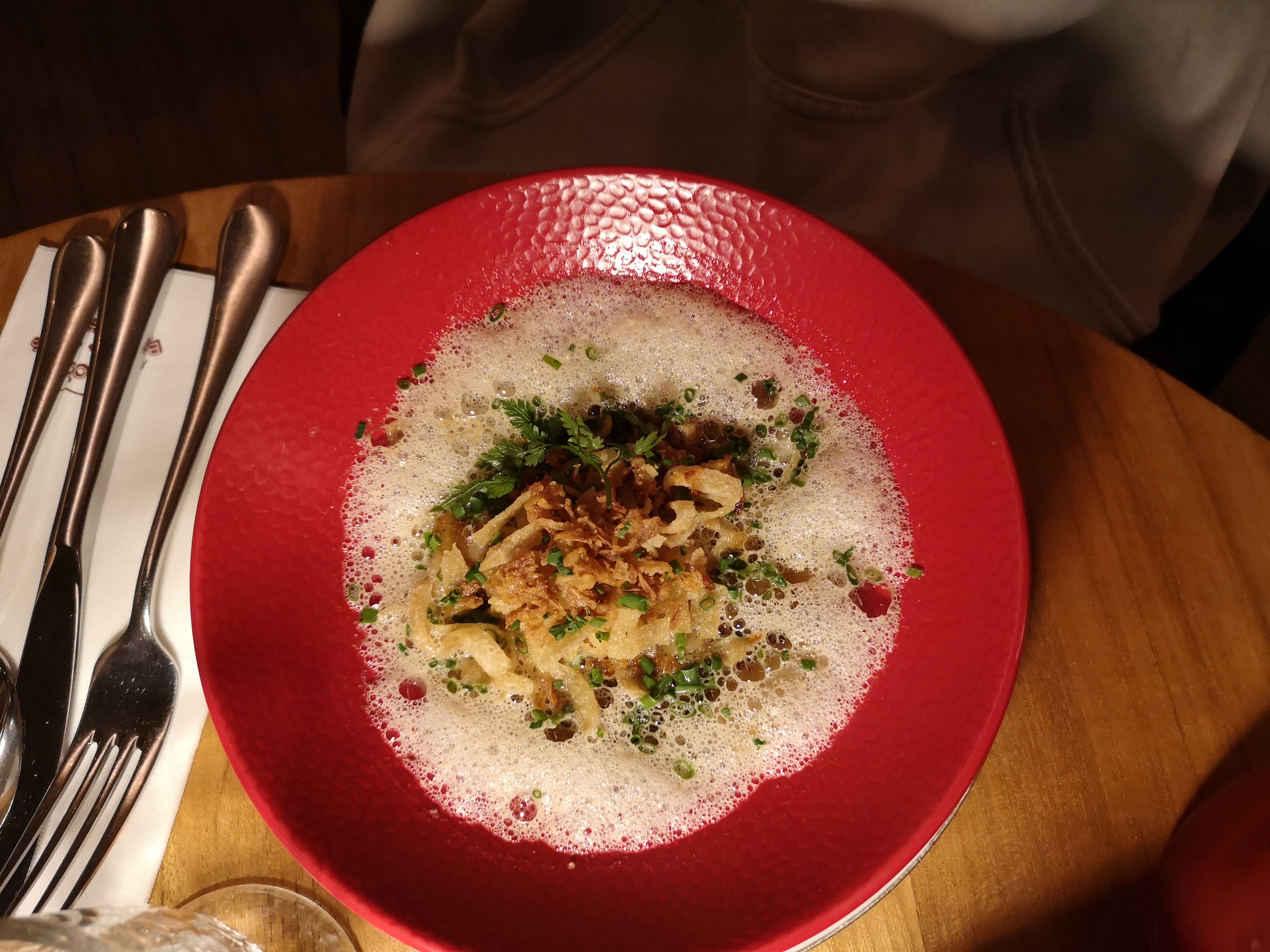 Un cadre magnifique avec du bois partout, une petit lumiére douce et tamisée avec ce froid sur fut un plaisir de passer une soirée entre amis. De plus le service fut un plaisir, Fiona a été un plaisir dans le soin dont elle fait preuve pour nous faire apprécié à 100% notre repas. Je conseils.