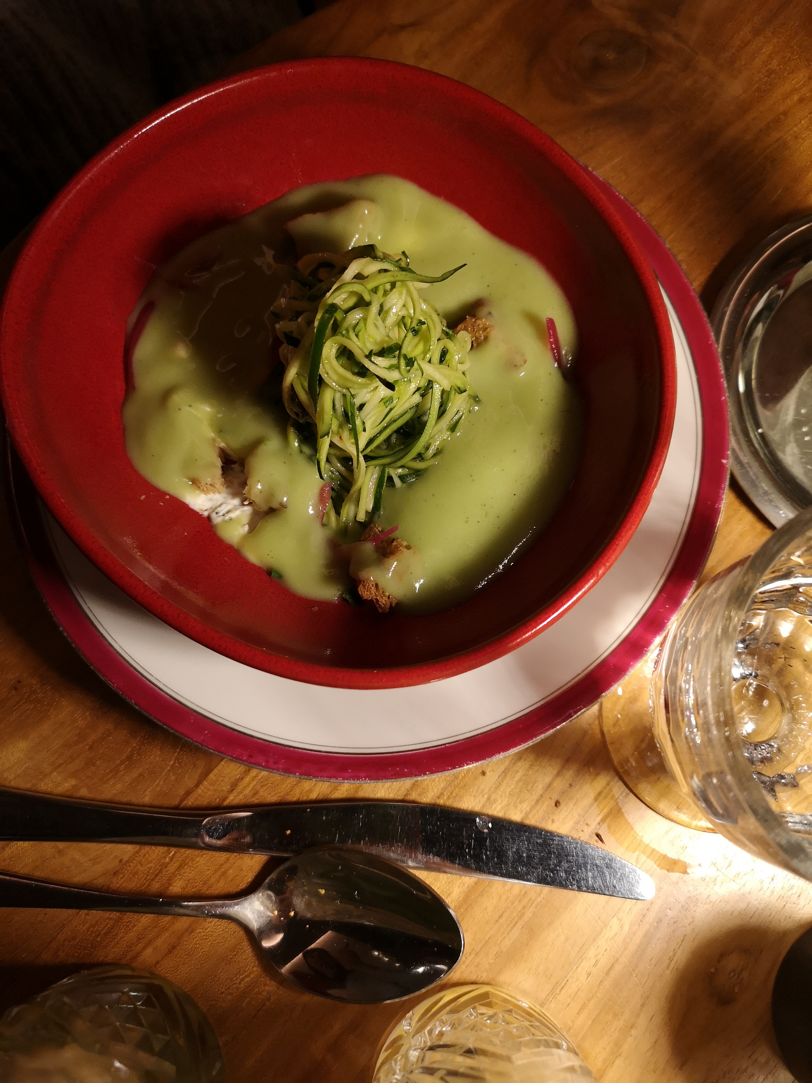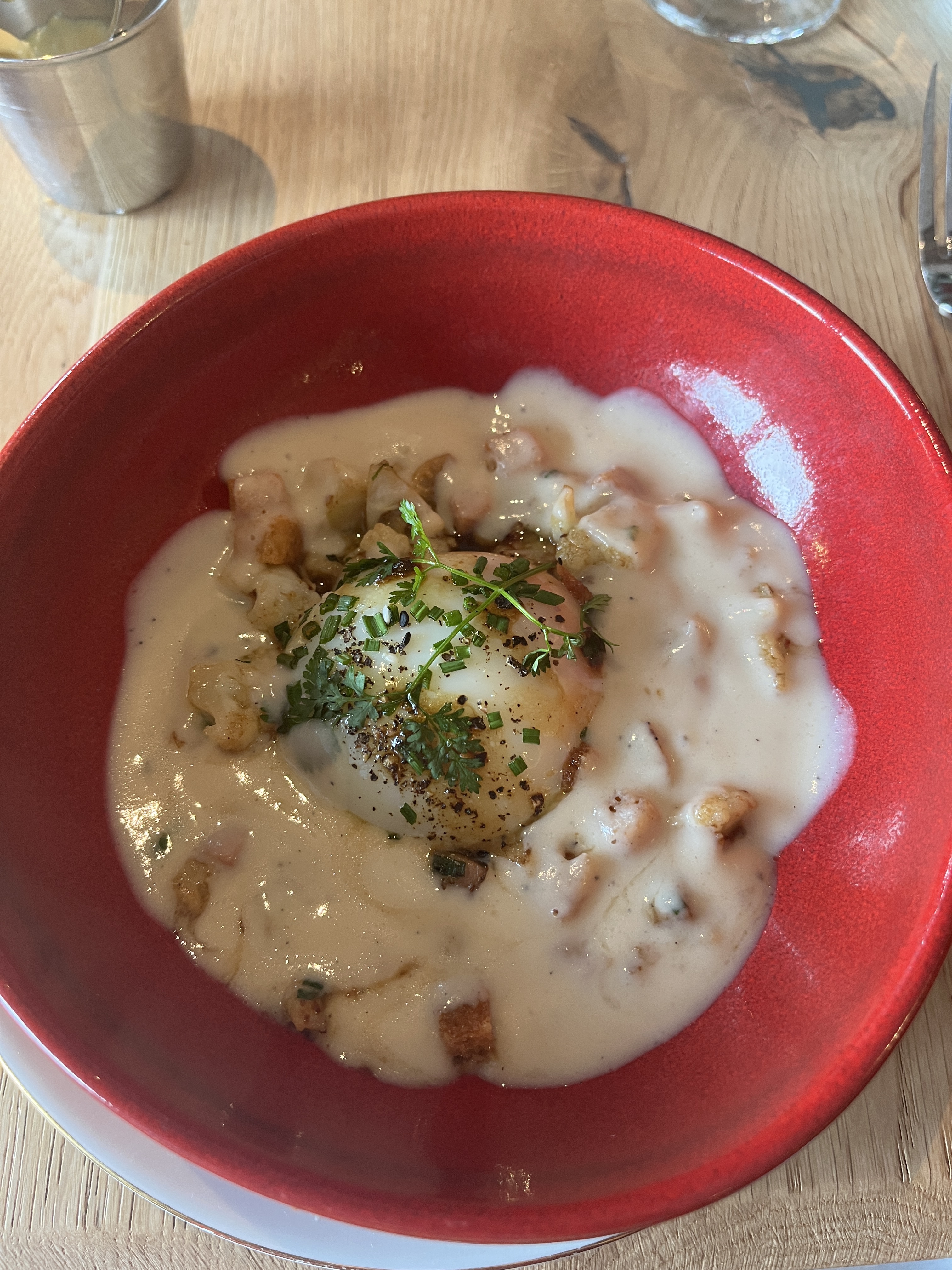 Sur les conseils d'une collègue, nous sommes venus un peu à l'aveugle ! Très bel endroit avec une déco sympa et romantique. Notre serveuse (Fiona) a été au top : aux petits soins et pleine d'humour... Merci ! En revanche, déception sur le cocktail et le plat. Un spritz très cher pour sa qualité moyenne et une fondue pour deux avec une salade... Posée sur une planche, coupée en 3... Et un appareil à fondue qui arrive avec du fromage fondu (collé donc) de la ou les précédentes utilisations... Heureusement le dessert (tarte aux pommes) a rattrapé un peu le niveau global du repas.
