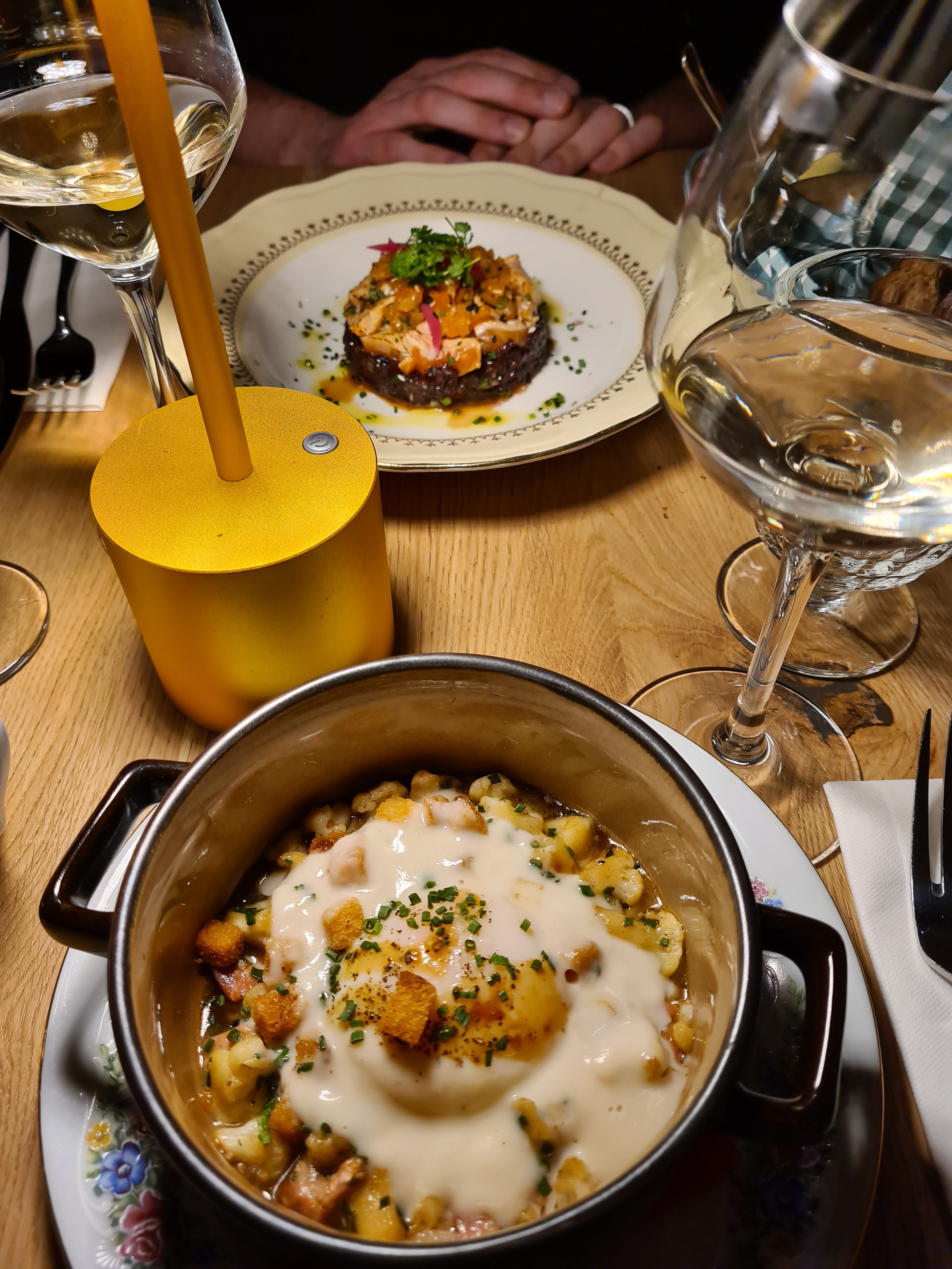 Un dîner en amoureux. Ambiance montagne chaleureuse au bord d’un lac. On s’y croirait…! Le service est à votre écoute presque aux petits soins. Cela commence dès l’entrée du restaurant. J’en profite pour féliciter l’hôtesse à l’accueil qui fait preuve d’un vrai savoir-faire et de savoir-vivre auprès des clients. Mon épouse et moi-même avons capté son prénom au détours d’un échange entre ses collègues. Sauf erreur, de mémoire, il s’agit Tamara. Elle mérite un vrai coup de chapeau !!! cette jeune femme a réussi, en une soirée, à nous fidéliser. Nous vous recommandons la pièce de poulet rôti sur son lit d’asperges. Excellent ! En dessert prenez « LE NUAGE BLANC AU MIEL CITRONNÉ ». Un délice aussi léger qu’un soupir et à la saveur exquise. Je recommande ce restaurant plutôt deux fois qu’une !!!