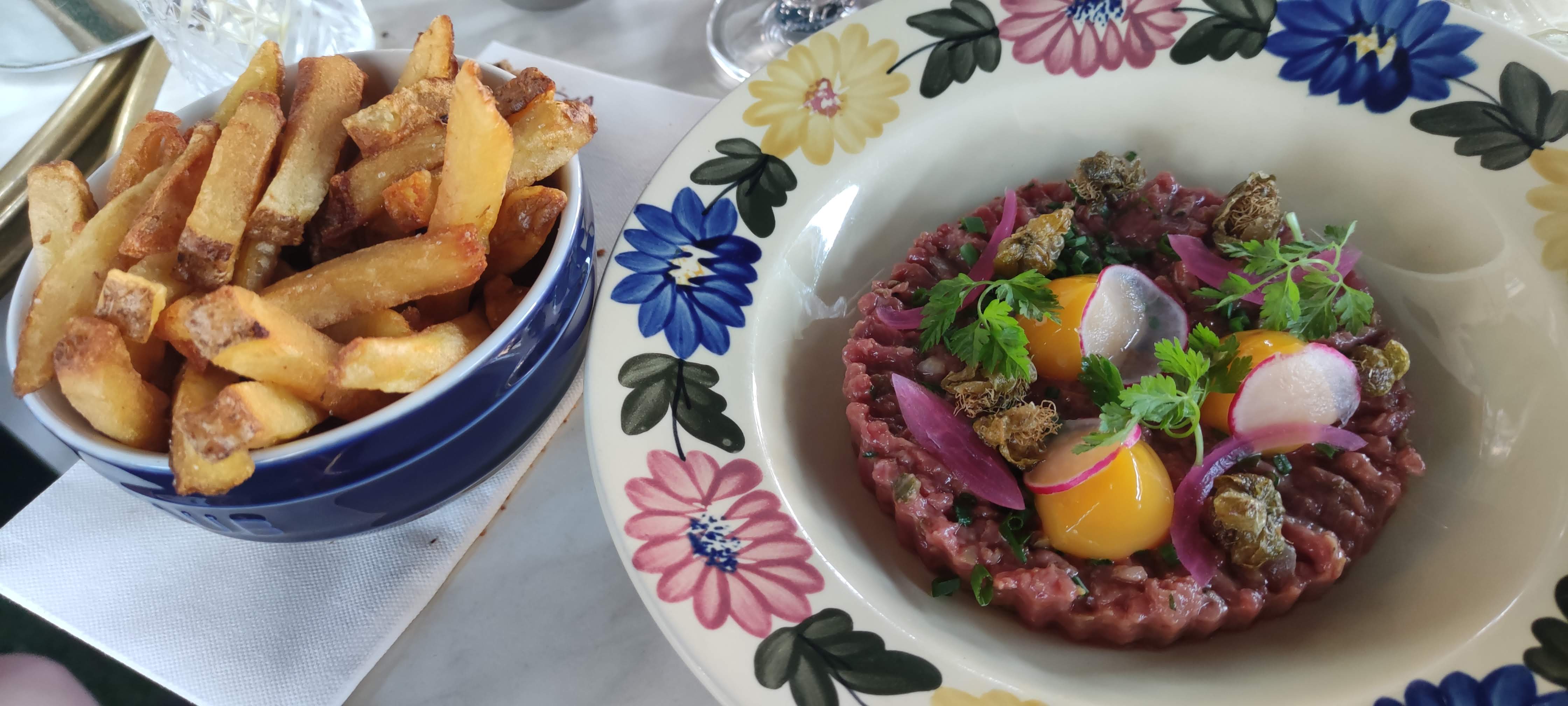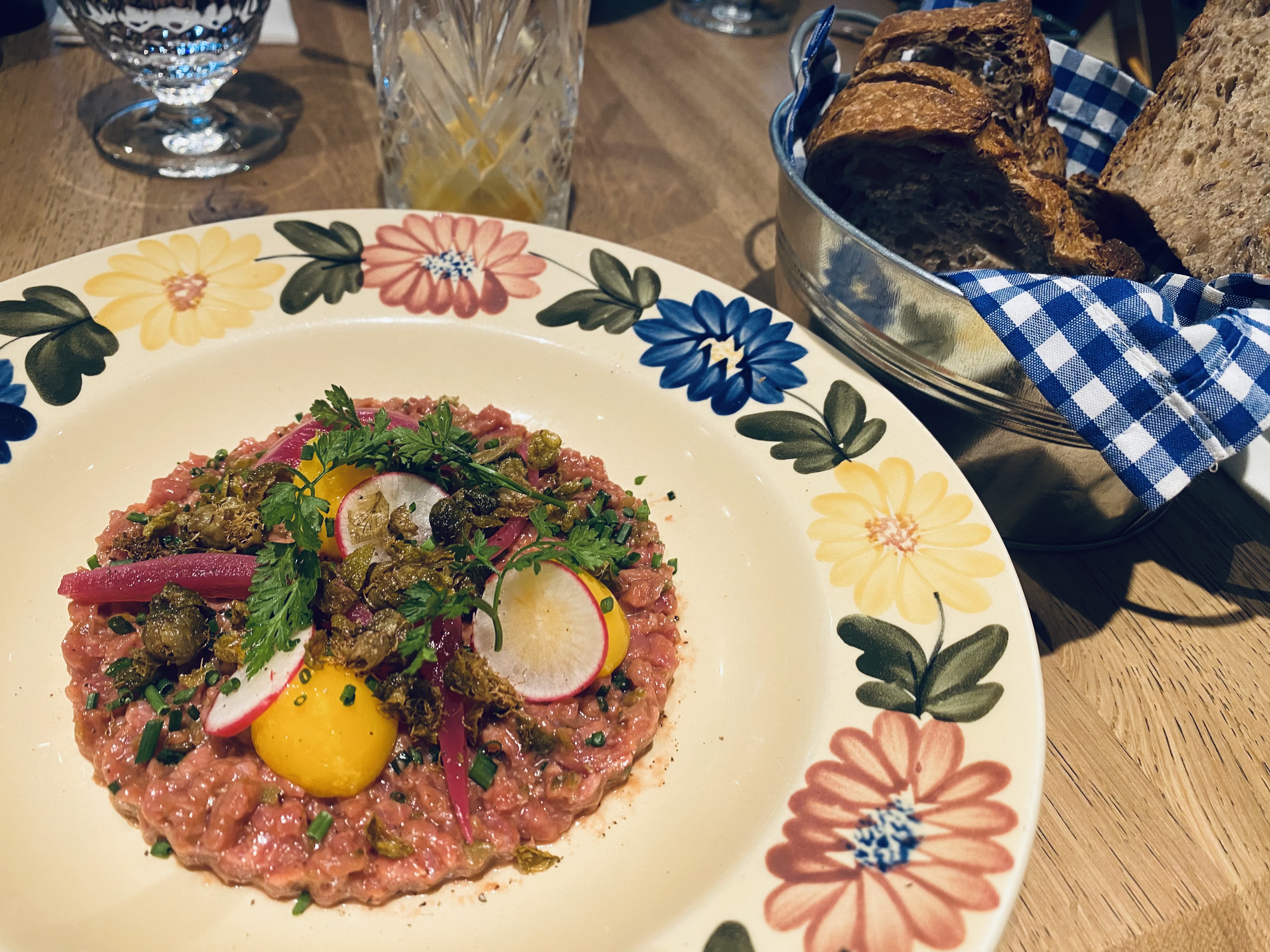 J ai découvert cette adresse. Par hasard. Le cadre est un mix du moderne, de l ancien et du rustique. Effet chalet. Belle cave à vin. Très beau bar. Service assuré par Harry et Quentin. Service soigné. Le pain est extraordinaire. J ai adoré le Tartare bien dosé et les frites extra. Les photos parlent d elles mêmes. Je reviendrai.