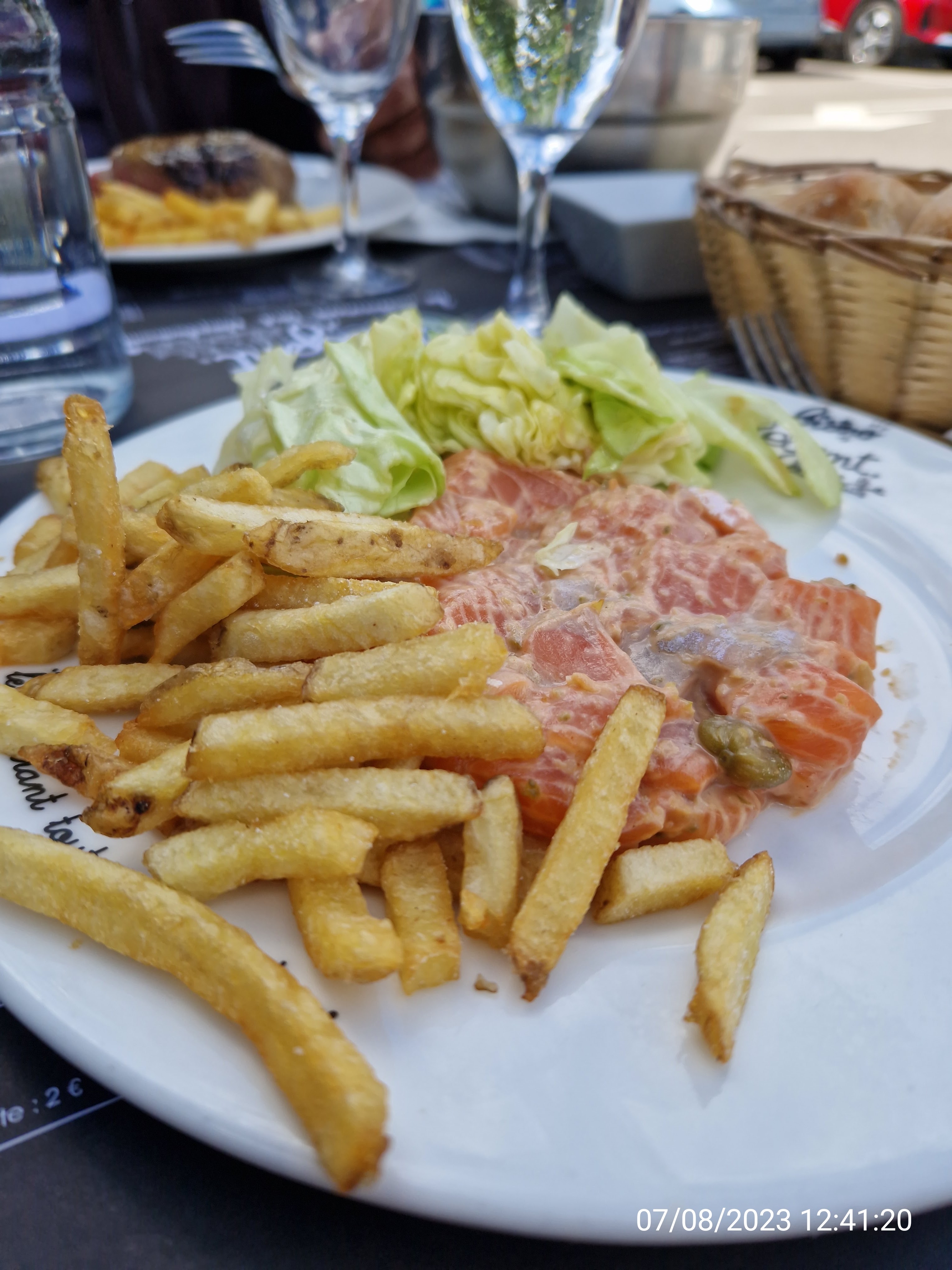 2ème fois que l’on vient, tartare de bœuf très bon, frites également. Seul reproche : l’accueil en terrasse, une réflexion de la serveuse car nous avions reculé la table de 5 cm !!! Pour se dégager un peu de la sortie. Nous avons failli nous lever pour partir compte tenu du ton utilisé par la serveuse. Dommage