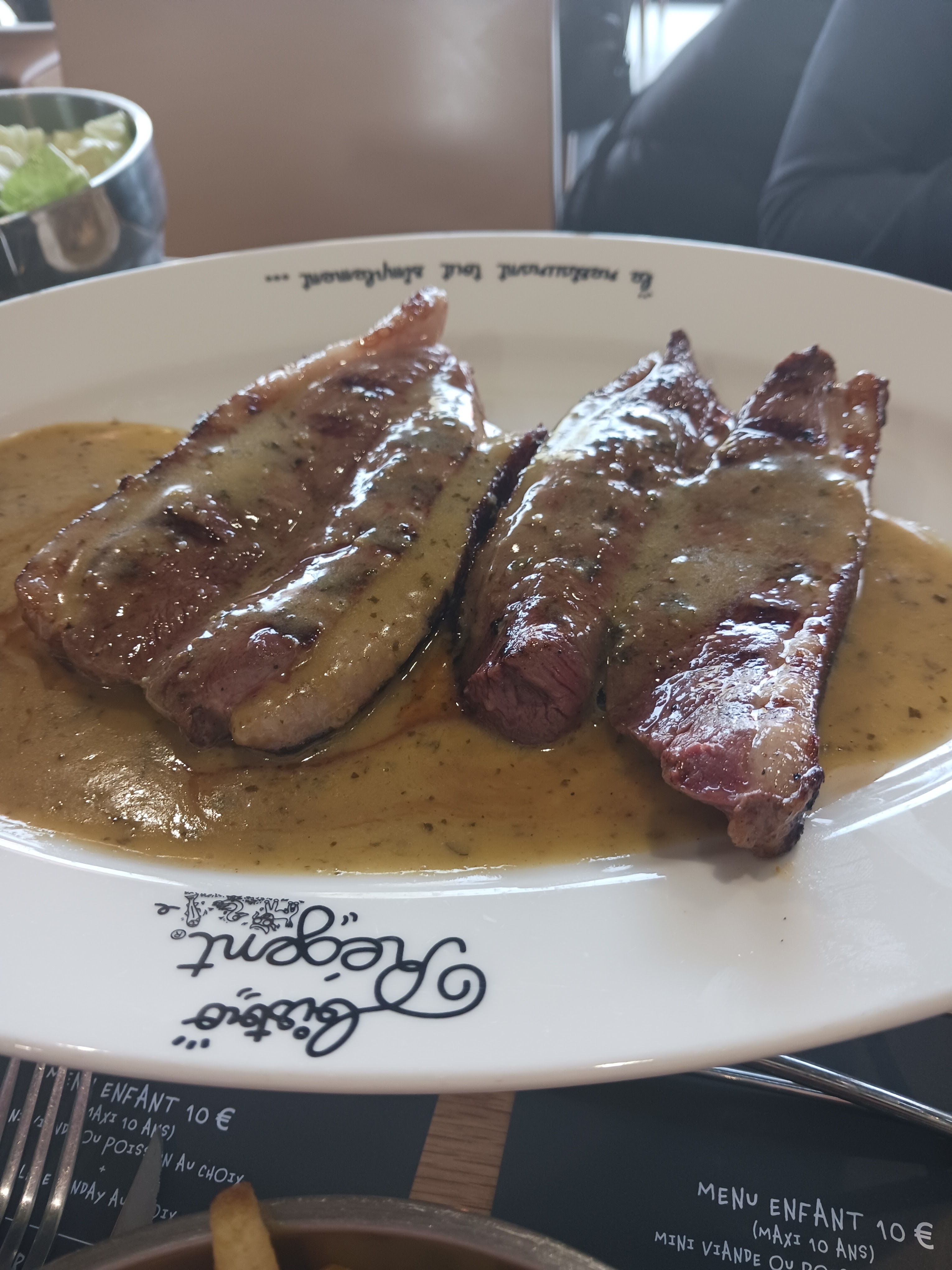 J'ai découvert pour la première fois ce restaurant. J'en suis ravi. Très bon accueil, une équipe jeune et très pro, gentille et souriante. Ça fait plaisir !! Un repas très bon. Le bœuf très tendre, et la fameuse sauce charmelcia, un délice !! Comme on ne connaissait pas cette sauce la serveuse nous a même proposer de l'avoir dans une saucière à part. Vraiment rien à dire. Si que l'on a passé un agréable repas avec mon amie. Je recommande bistrot régent de boé.
