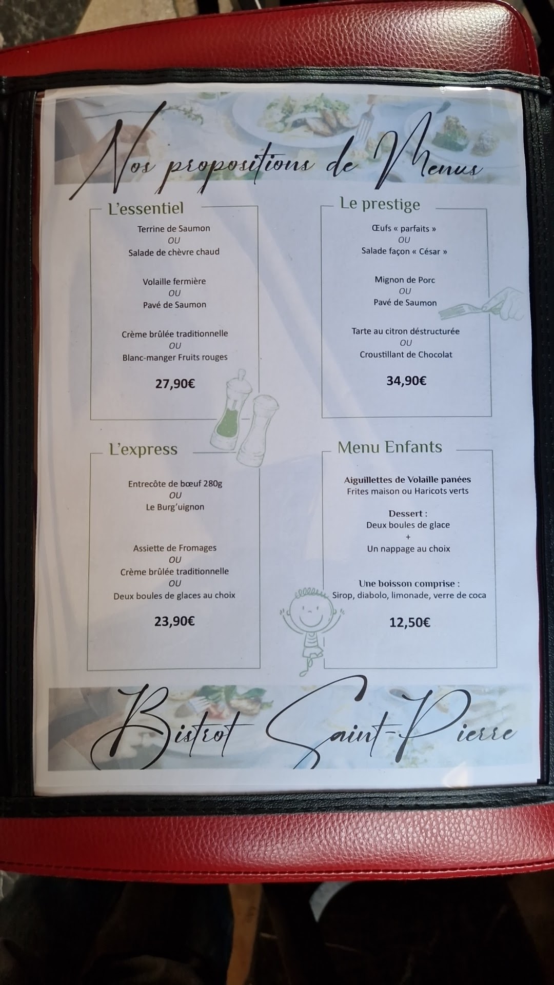 Nous avons dîné au bistrot st pierre.Tres contents de notre soirée.Personnel très aimable . Cuisine très bonne avec une vue magnifique.Allez y sans problèmes.