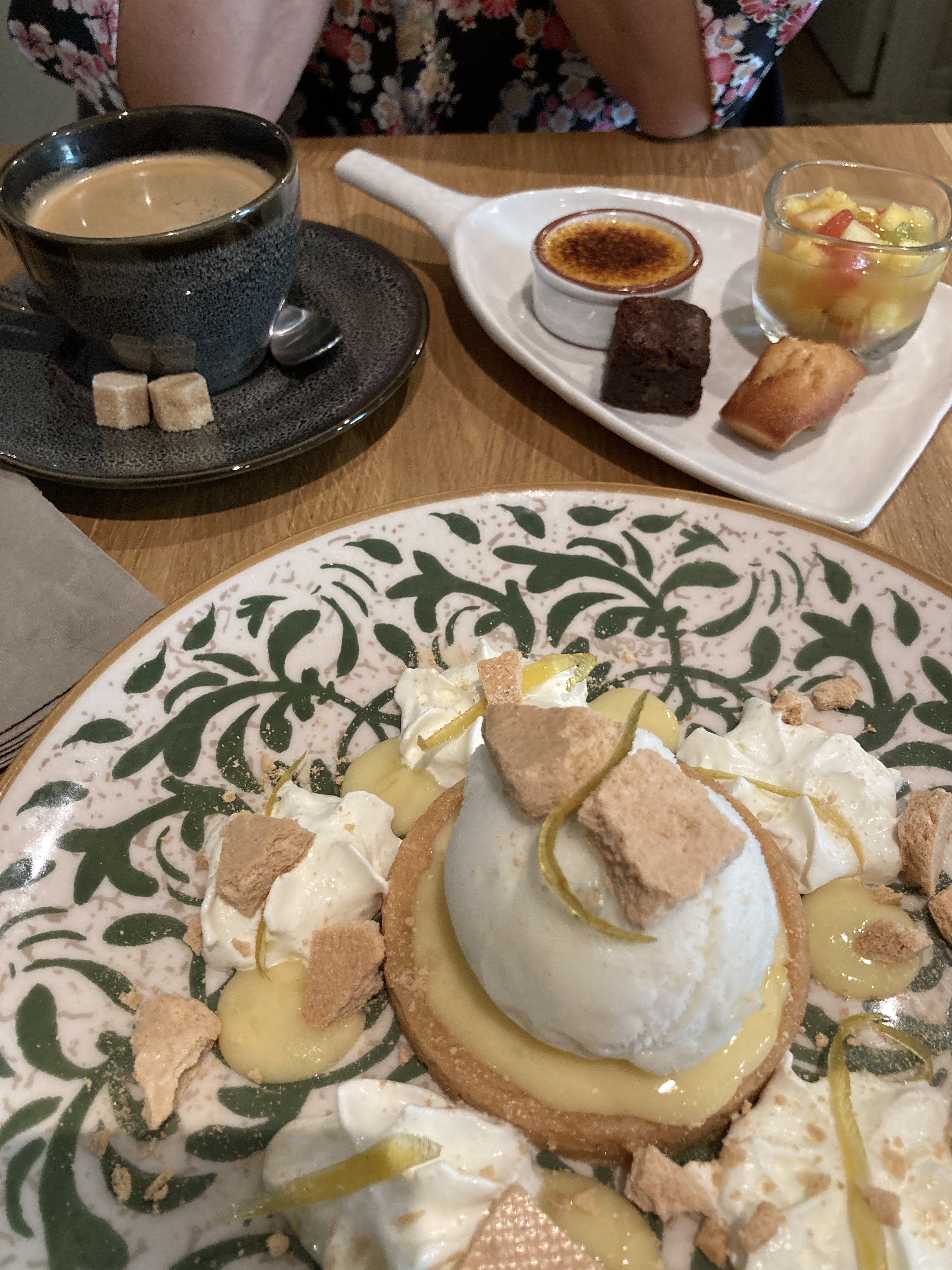 Cuisine : plat du jour agréable et bien préparé. Délicieux café gourmand fait maison. Service : accueillant et efficace. Deux bémols cependant : ambiance vraiment très bruyante et prix du vin au verre trop élevé.