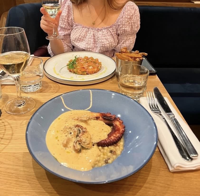 Le cadre est tout simplement topissime, les serveurs sont très sympathiques et souriant (même sous les masques). La nourriture est bonne mais ce qui me chagrine un peu, ce sont les prix que je trouve à certains moments un peu exagérés … 6 euros un petit pot de frites, 24 euros une planche de charcuterie, qui est très bonne, mais bon, pas très garnie pour le prix, les churros, je n’ai plus le prix mais encore une fois bien trop élevé par rapport a la quantité. C’est vraiment ce que j’ai trouvé dommage car la nourriture est vraiment bonne, le pain aussi est excellent, que ce soit le grillé ou l’autre. Par contre, le verre de rouge à 4€ (très bon aussi) ne m’a pas choqué, à croire que la nourriture est plus chère que l’alcool… La décoration est superbe également.