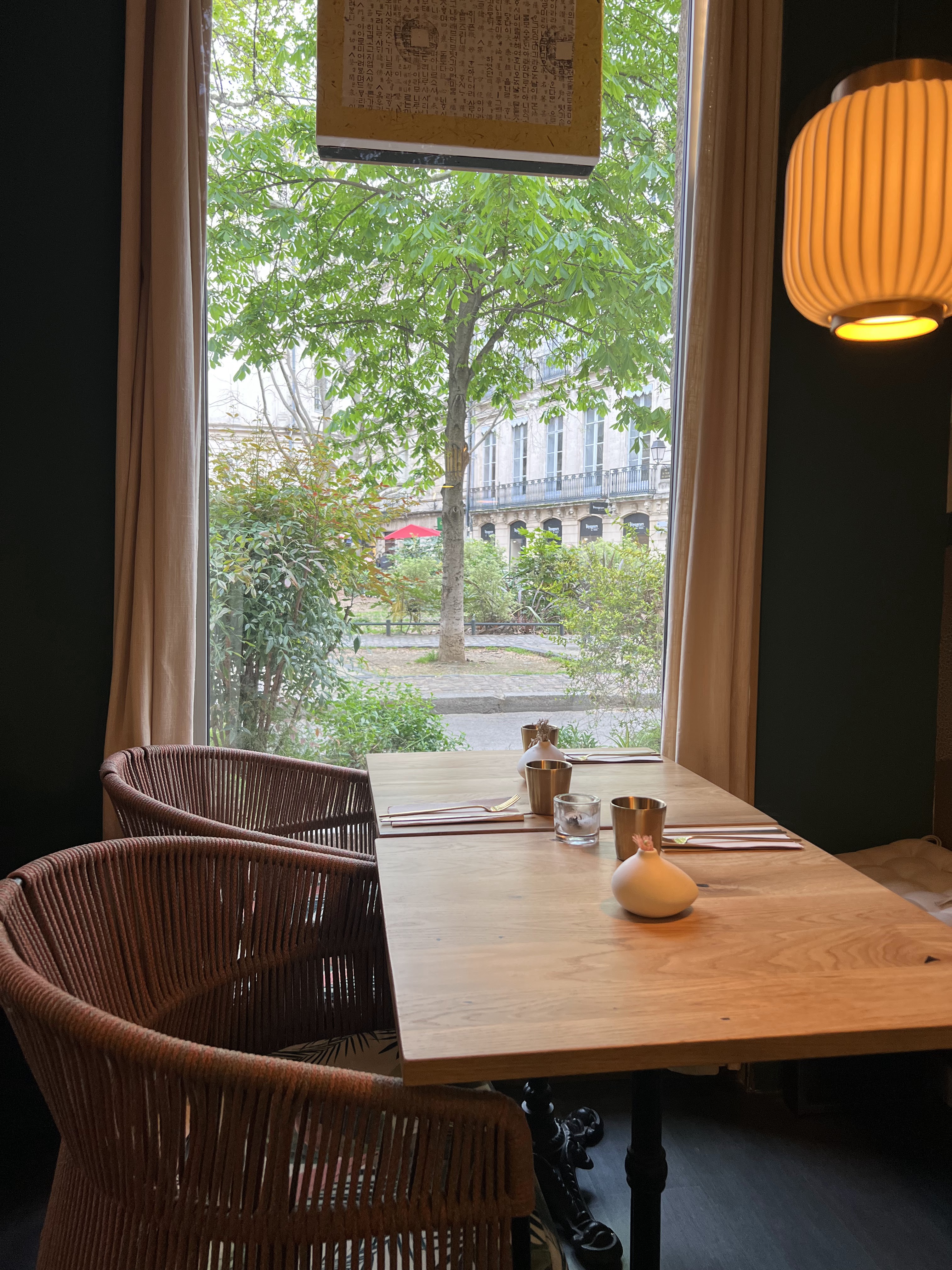 Cadre en terrasse agréable, formule tapas du soir.Service souriant bienveillant de bon conseil pour le vin et dessert.. Parlant anglais... Tapas savoureux en particulier, le Kimbap saumon, le Ceviche est une belle expérience de goûts, mochi maison de qualité et tiramisu au thé matcha vraiment léger... Nous avons beaucoup apprécié et passé un excellent moment.. Si l'on rajoute un bol d'edamame, une bière coréenne et un verre de vin.. Note d' un peu moins de 100 euros pour 2..