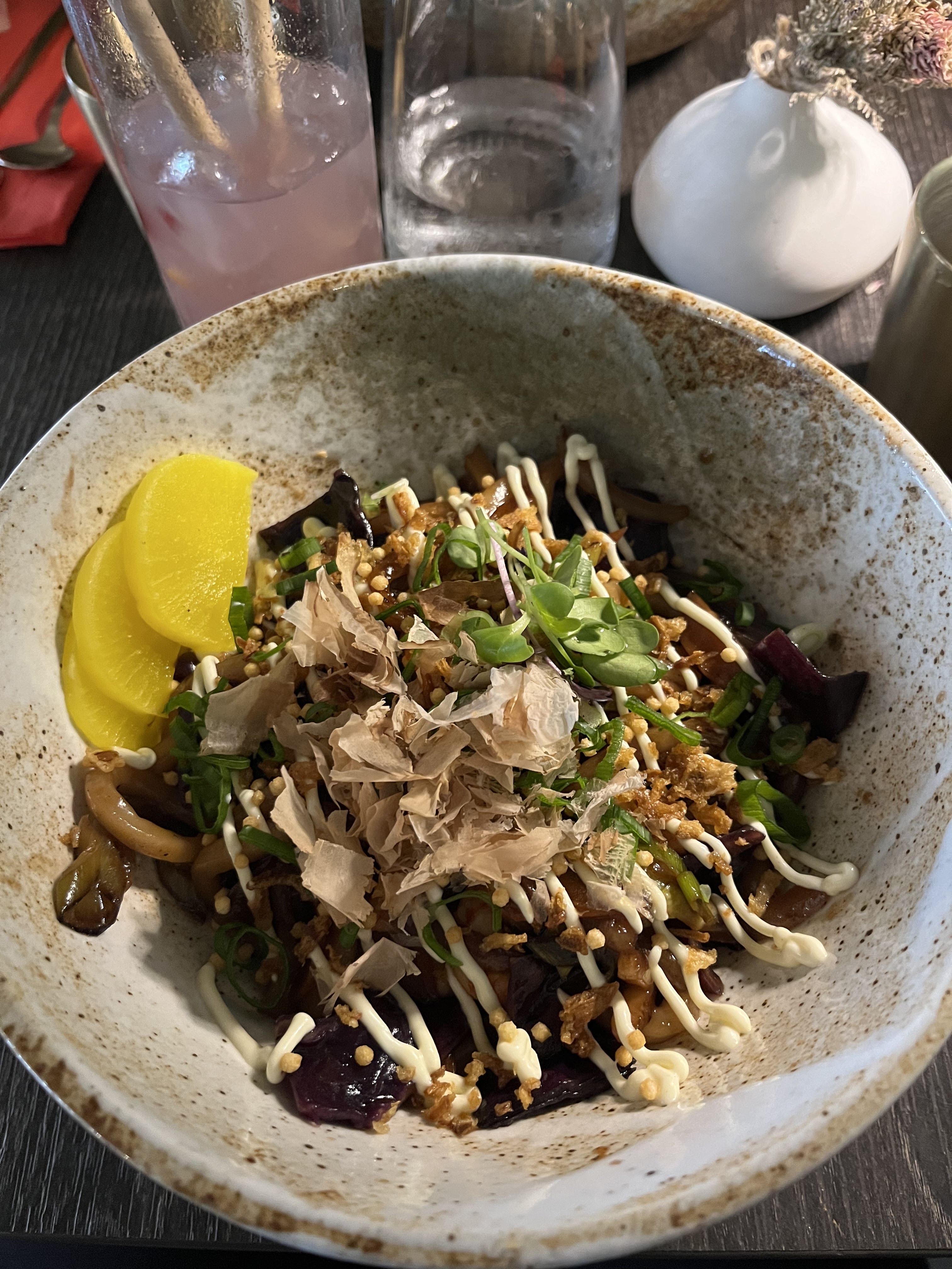 Savoureux mais cher. Les portions étaient assez petites. Les frites de pommes de terres avaient une bonne sauce donc elles étaient savoureuses dans l'ensemble mais pas exceptionnelles. La Brochette Umami avait une belle sauce aux arachides, le porc était tendre et globalement délicieux. Le ceviche d’Amélie était bon, pas le meilleur ceviche que j’ai essayé mais il présente un bel équilibre entre fraîcheur, acidité, douceur et goût de poisson. Le choix de la morue comme poisson était cependant un peu discutable pour moi. L'ambiance était vraiment sympa, les baguettes/fourchettes/tasses étaient magnifiques. Globalement, c'est un endroit agréable pour déguster des goûts intéressants mais la sélection n'est pas aussi grande et l'endroit semble un peu plus axé sur les boissons.