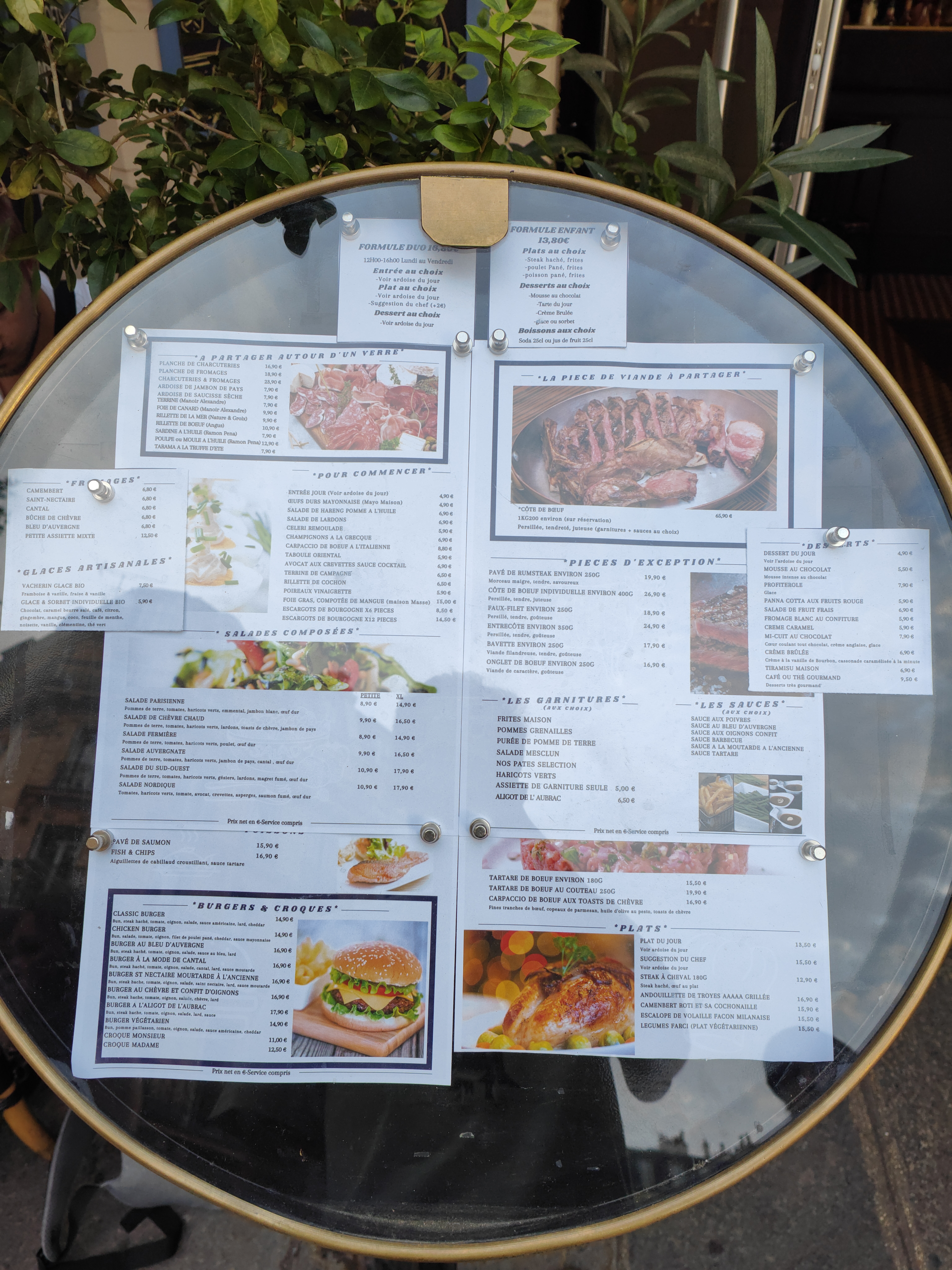 Juste pour un verre du vin et un café, donc je ne peux pas en dire beaucoup sur leur nourriture mais c'était le premier serveur vraiment sympathique à Paris que j'ai rencontré.