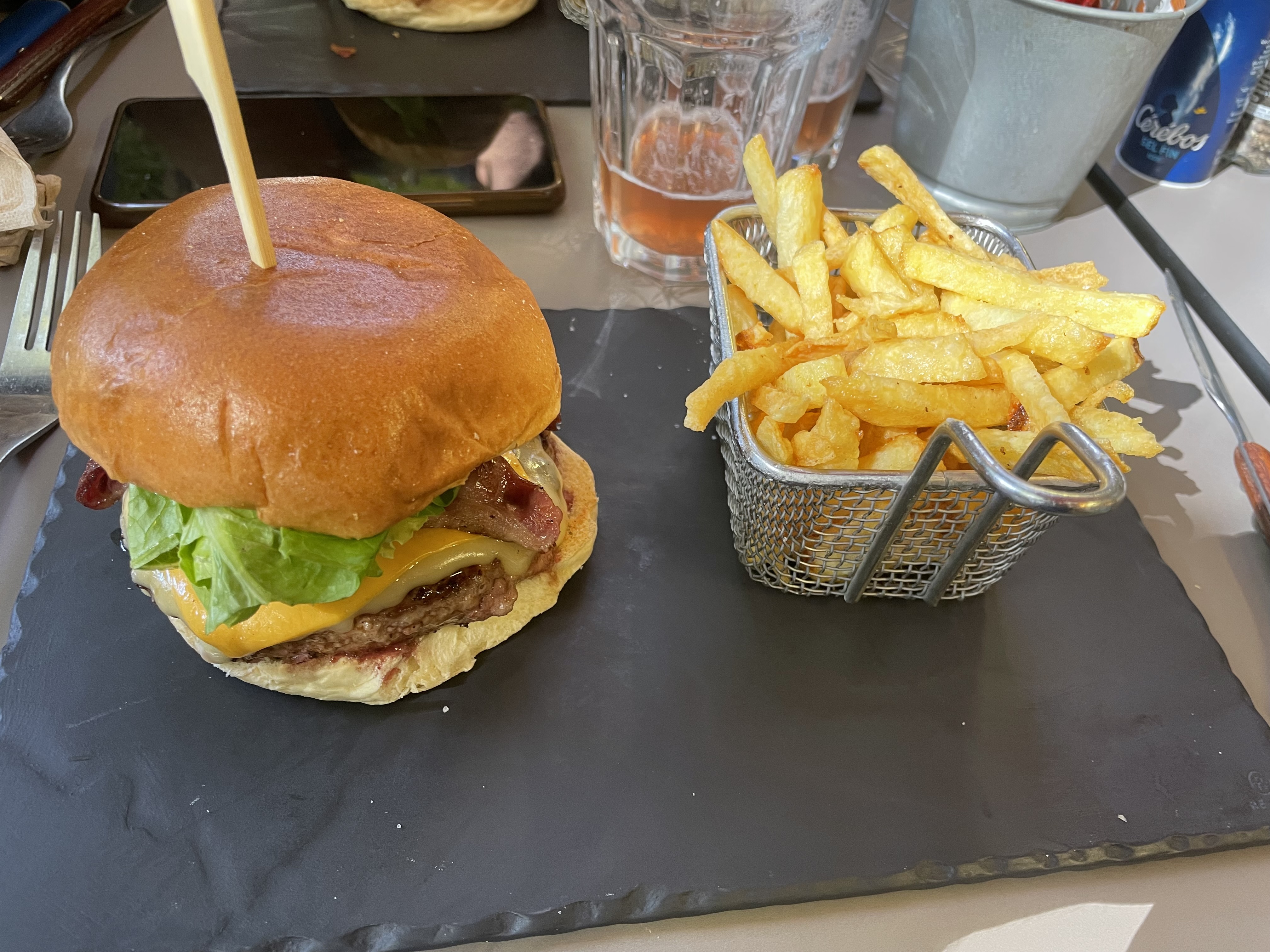 Super. Serveuse au top, super gentille, les frites sont bonnes et l'hamburger un REGAL, très copieux. On avait prit également des tapas en apéritif et la encore RAS on s'est régalé. On y retournera et je conseille aux personnes voulant tester des hamburgers autres que ceux des grandes chaînes de fast-food. Ici c'est d'un autre niveau