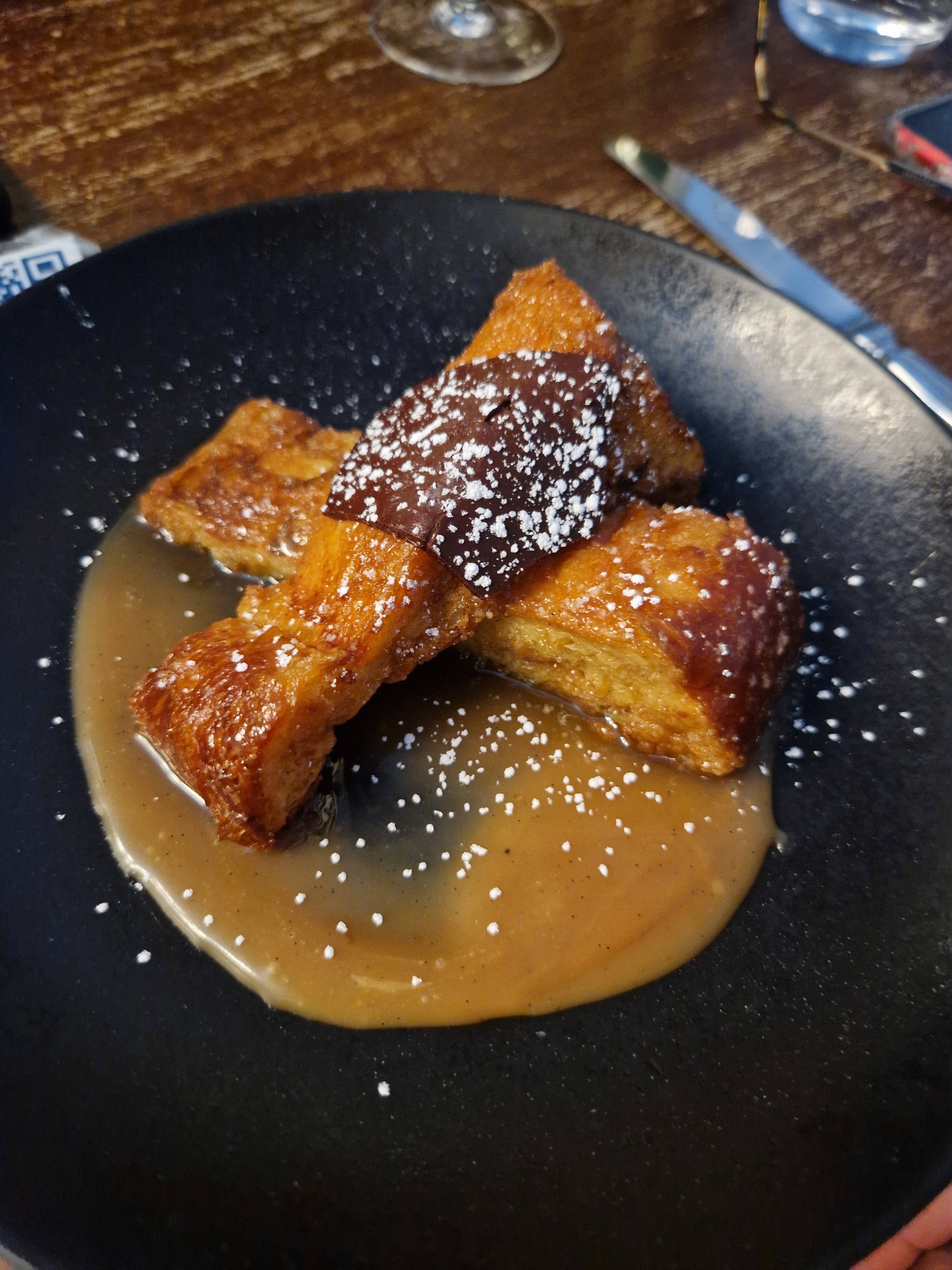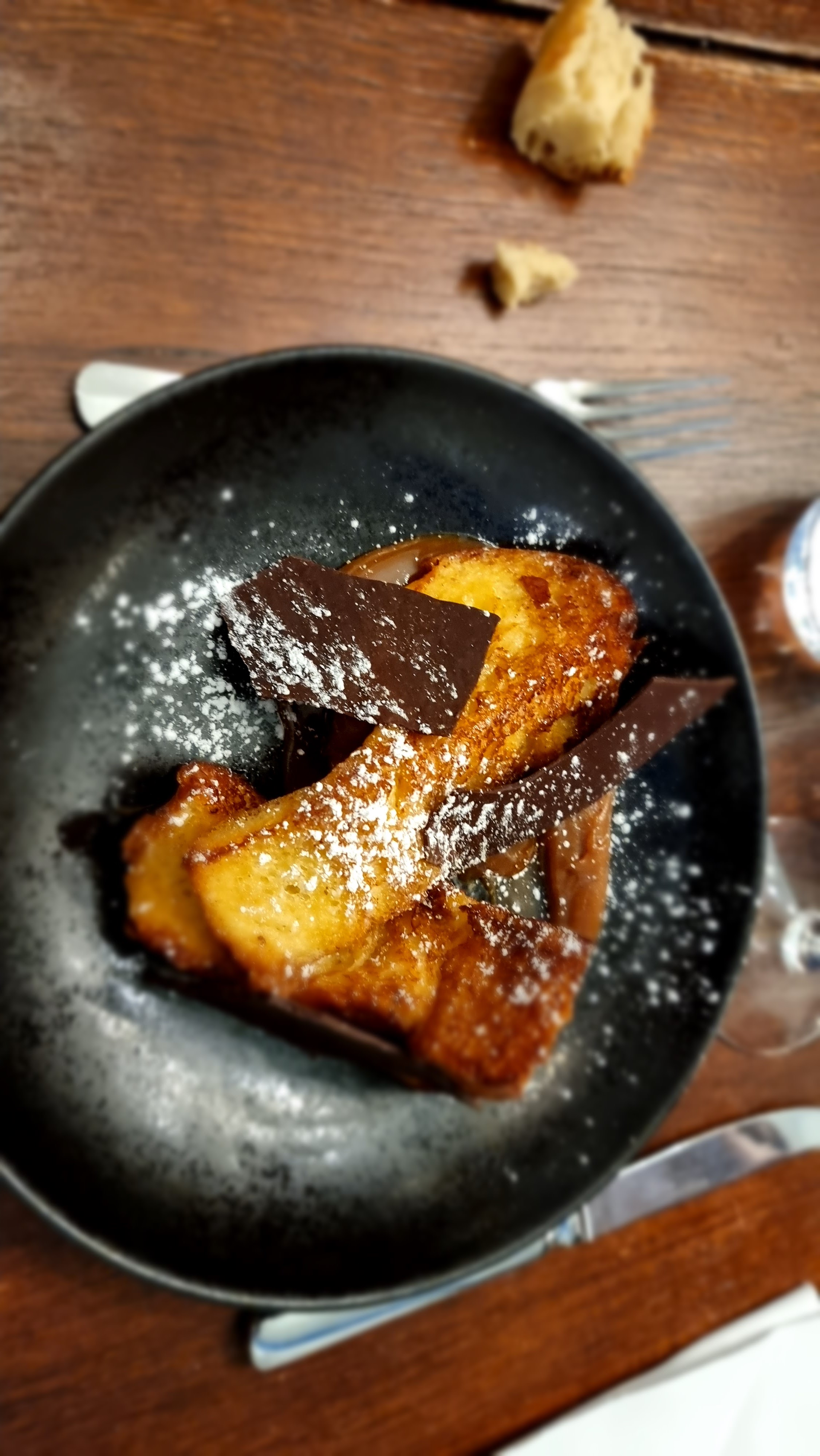 Parfait ! Un pain-perdu excellent. De très bons vins.