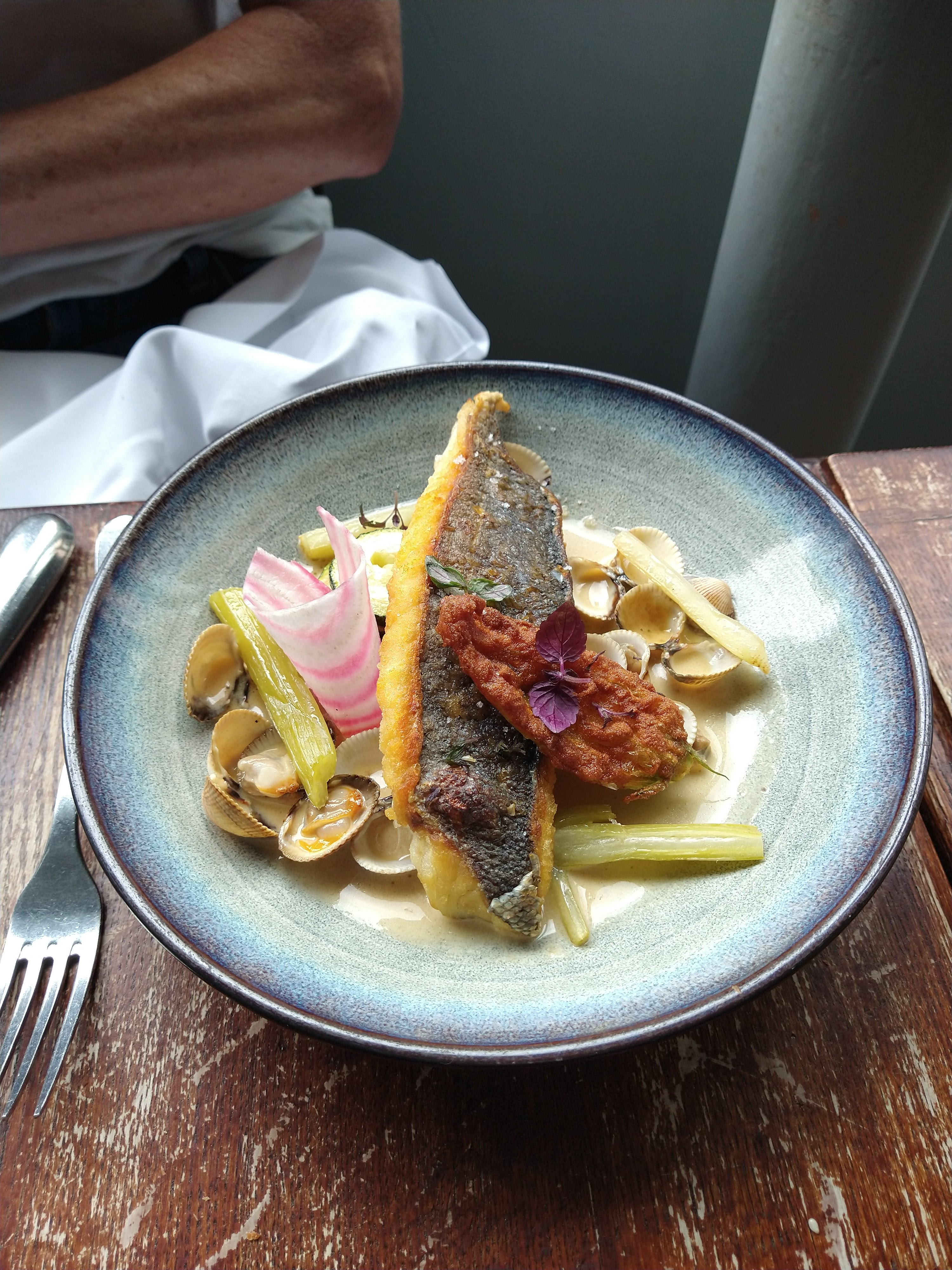 C'était tout à fait correct, mais pas vraiment quelque chose de très spécial. Les pétoncles et le poisson étaient tous deux légèrement trop cuits.