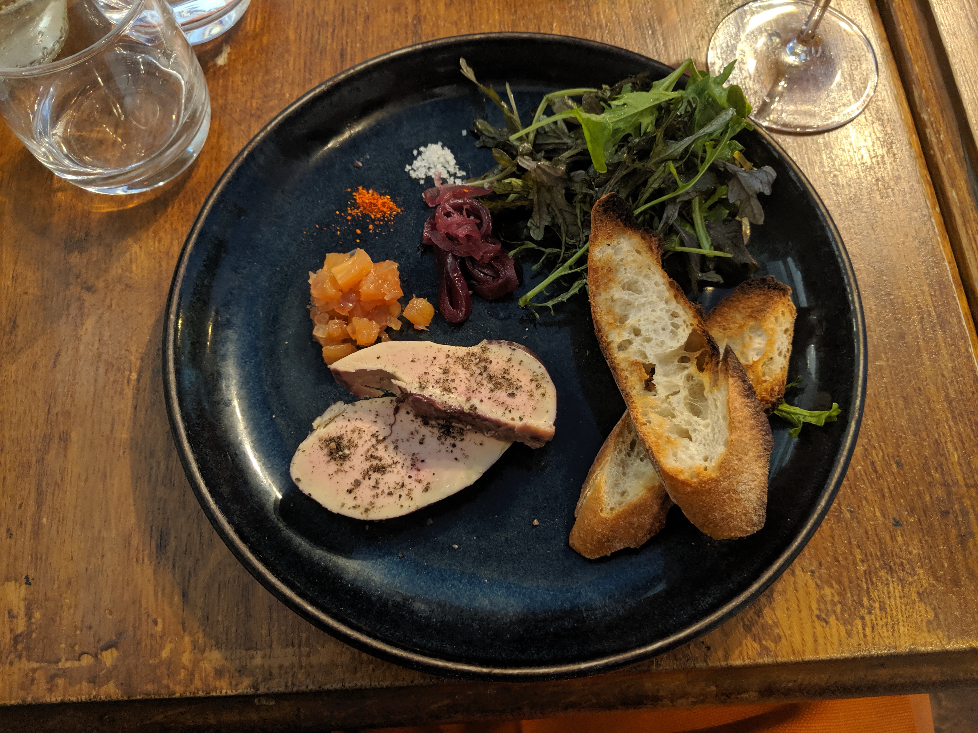 Incroyable! La nourriture était fantastique et le restaurant était si petit et intime. J'ai eu le foie gras, le lapin et le pain perdu avec sauce caramel en dessert. Tout a dépassé mes attentes, les serveurs étaient super et dans l'ensemble nous avons passé un moment formidable ! L'accord vin avec le foie gras était impeccable 👌