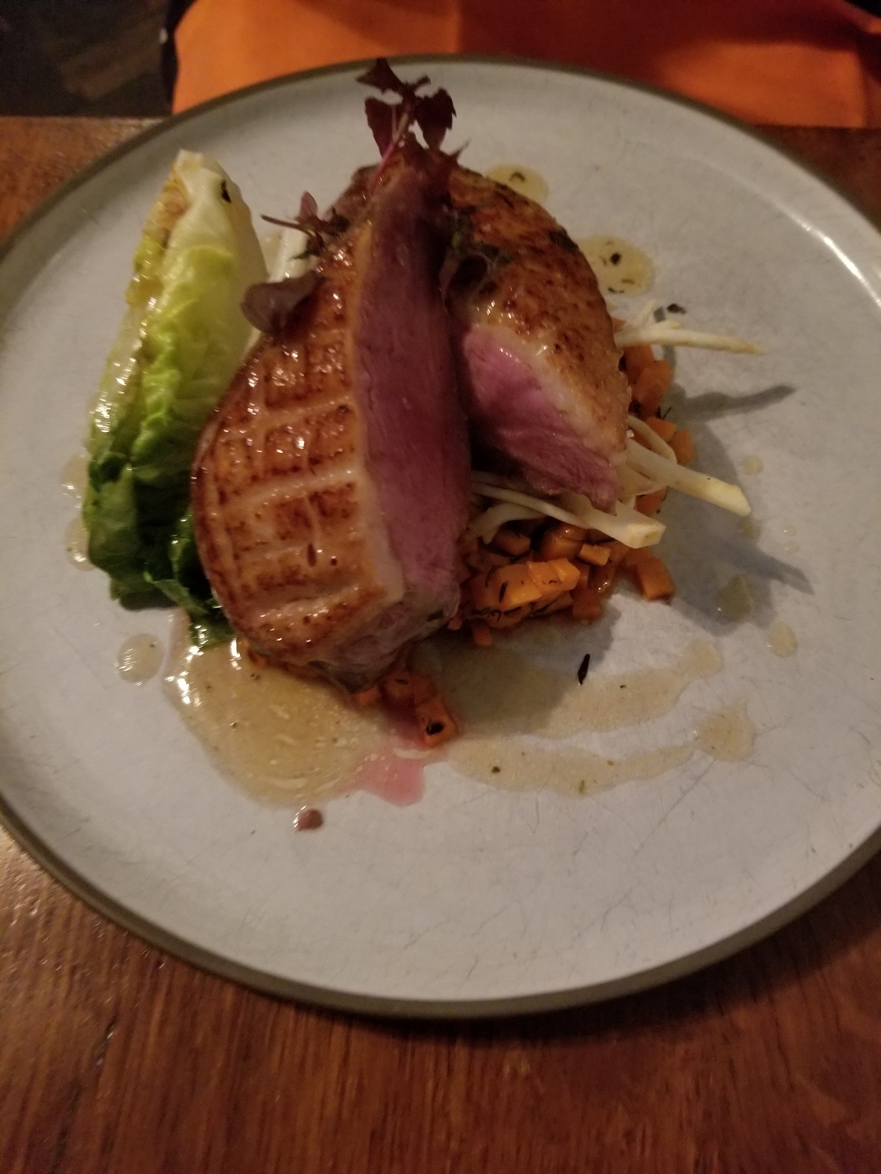 La cuisine est faite maison, la carte laisse présager de bons plats mais nous avons été malheureusement déçus. C’est globalement bon mais pas à la hauteur du prix. Le cochon n’était pas fondant comme on aurait pu attendre, les ravioles sont en fait des chaussons, et le Paris Brest n’a pas goût de praliné. Les vins sont corrects mais la encore, pas forcément le meilleur rapport qualité prix.
