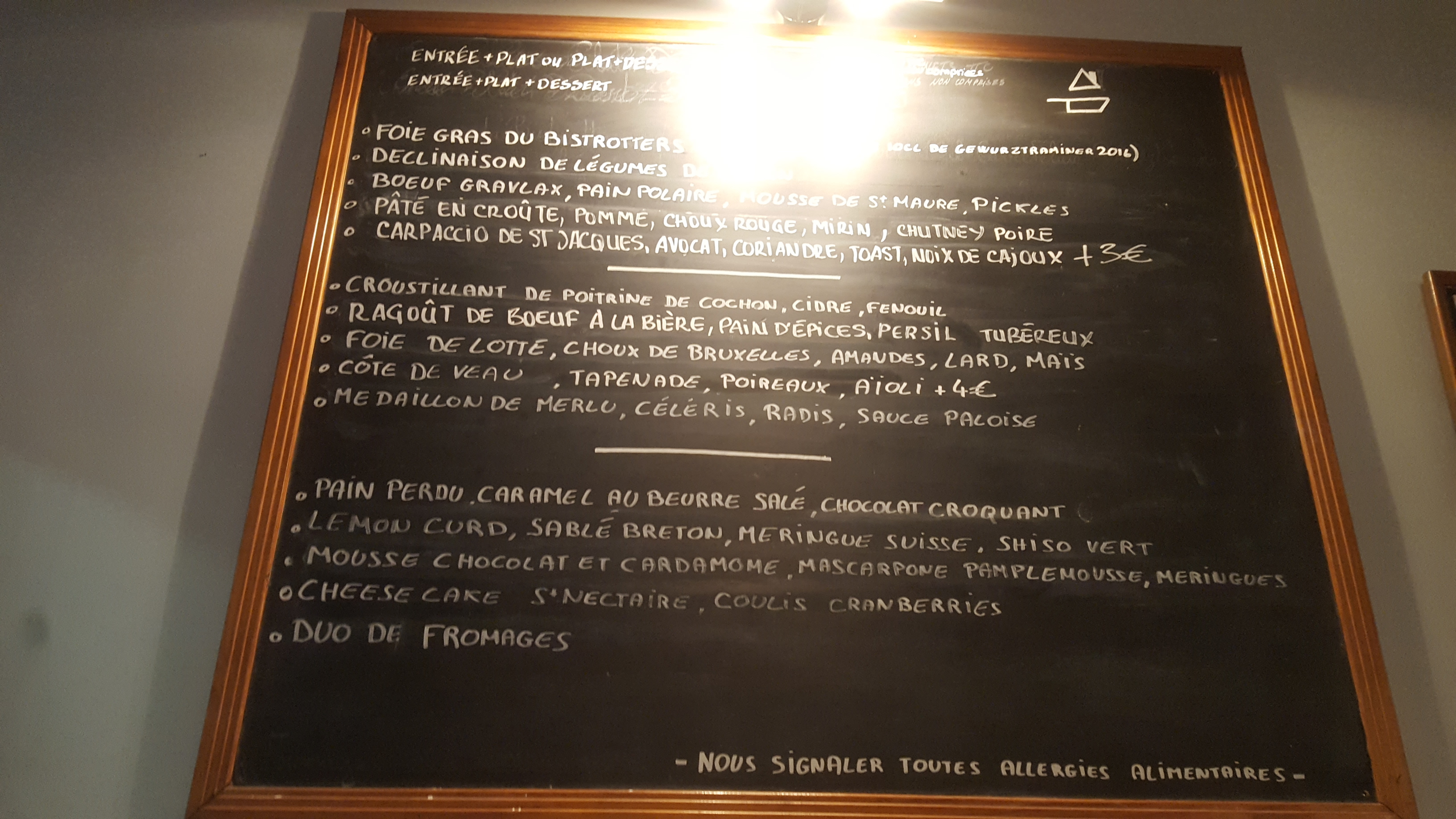 Incroyable restaurant français avec un personnel très sympathique qui parle anglais. Entrée + Plat est à 33€ (2 plats), et ma femme et moi avons essayé la cuisine suivante. Entrées Cromesquis de Langue de Bœuf, sauce yaourt épicée, oignons mijotés, fruits rouges Foie de canard Bistrotters, Chutney d'Ananas, Oignons confits +6 euros Secteur Râble de lapin farci, haricots verts, sauce rouille, rondelles d'oignons, lardons Thon blanc glacé mi-cuit, pastèque brûlée, tagliatelles de courgettes