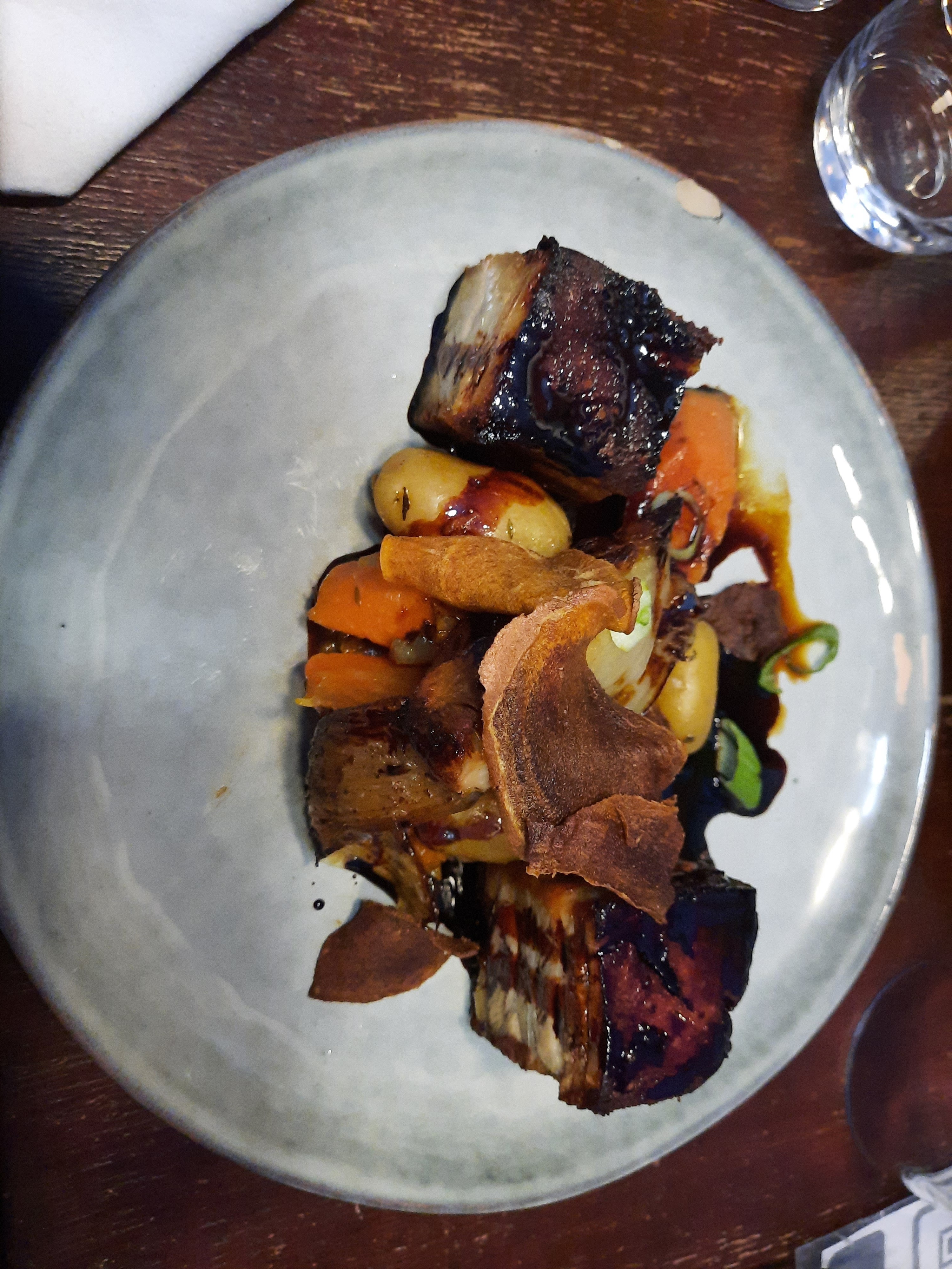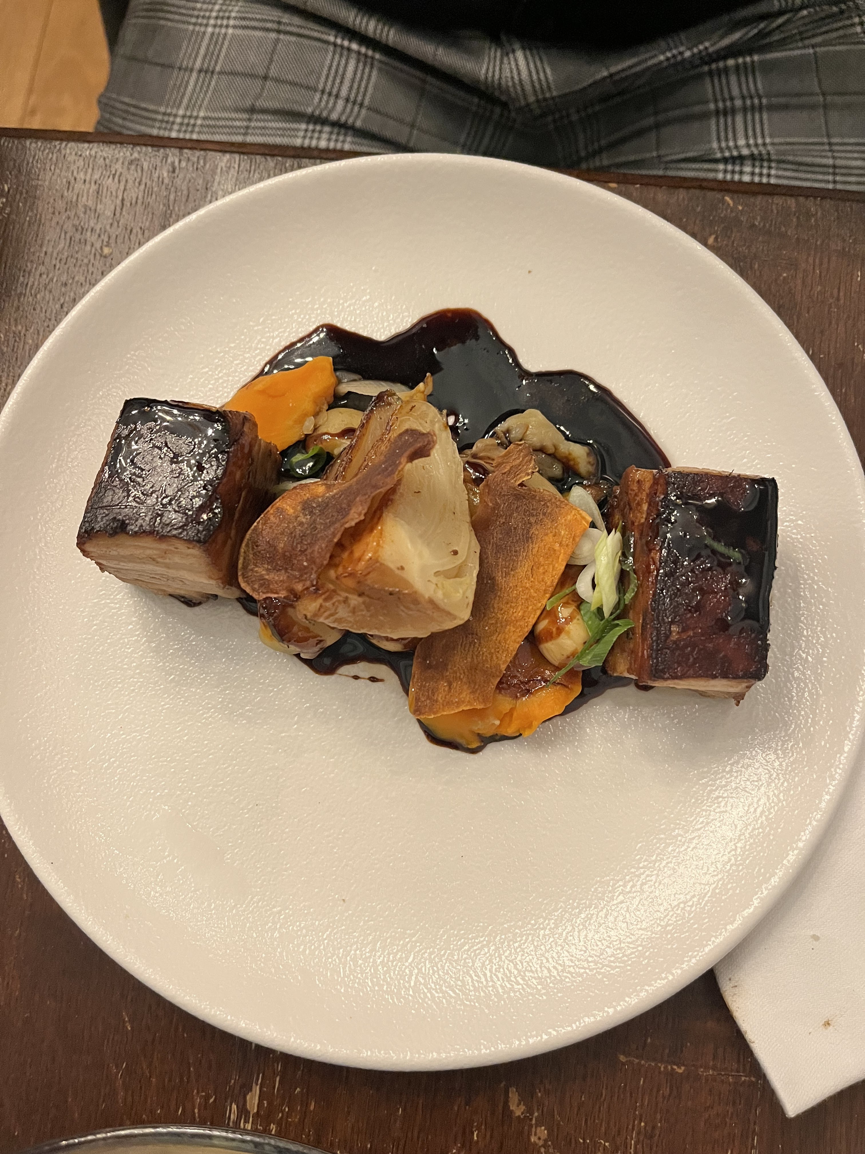 Nous avons vu que ce petit bijou se trouvait à proximité de notre hôtel et en regardant les photos Instagram, il nous fallait juste y aller. L'atmosphère est agréable, accueillante et informelle. Nous voulions essayer de parler un peu français et la serveuse qui nous a servi était très gentille et arrangeante. Nous avons tous deux commandé le ventre de porc croustillant qui était délicieux !! Plein de saveurs et de textures merveilleuses. Nous étions épuisés par notre voyage depuis l'Angleterre, alors ils ont gentiment pris notre dessert à emporter. Le dessert était délicieux. Nous pensons que cet endroit est incroyable et nous aurions aimé l'avoir chez nous en Angleterre.