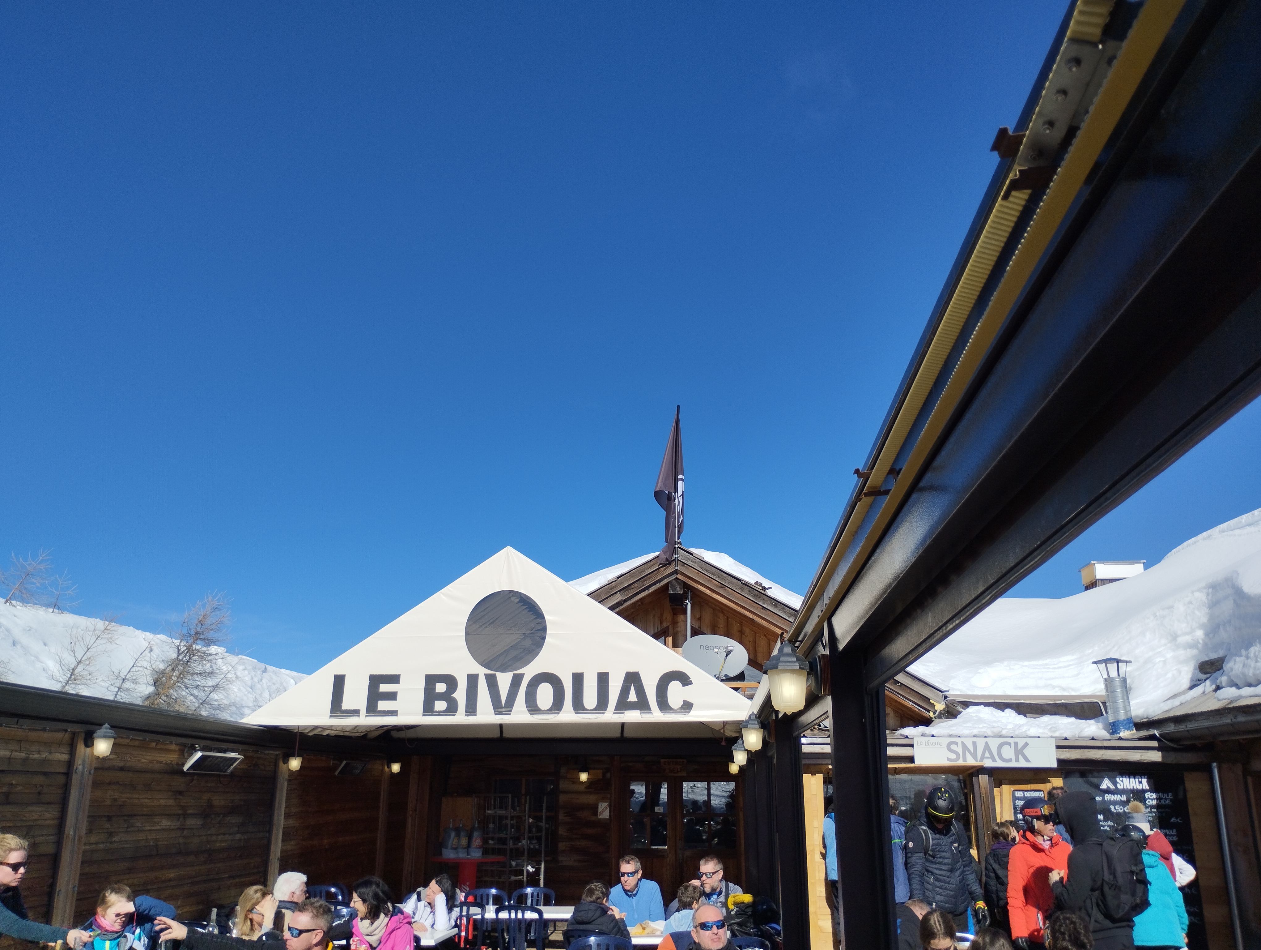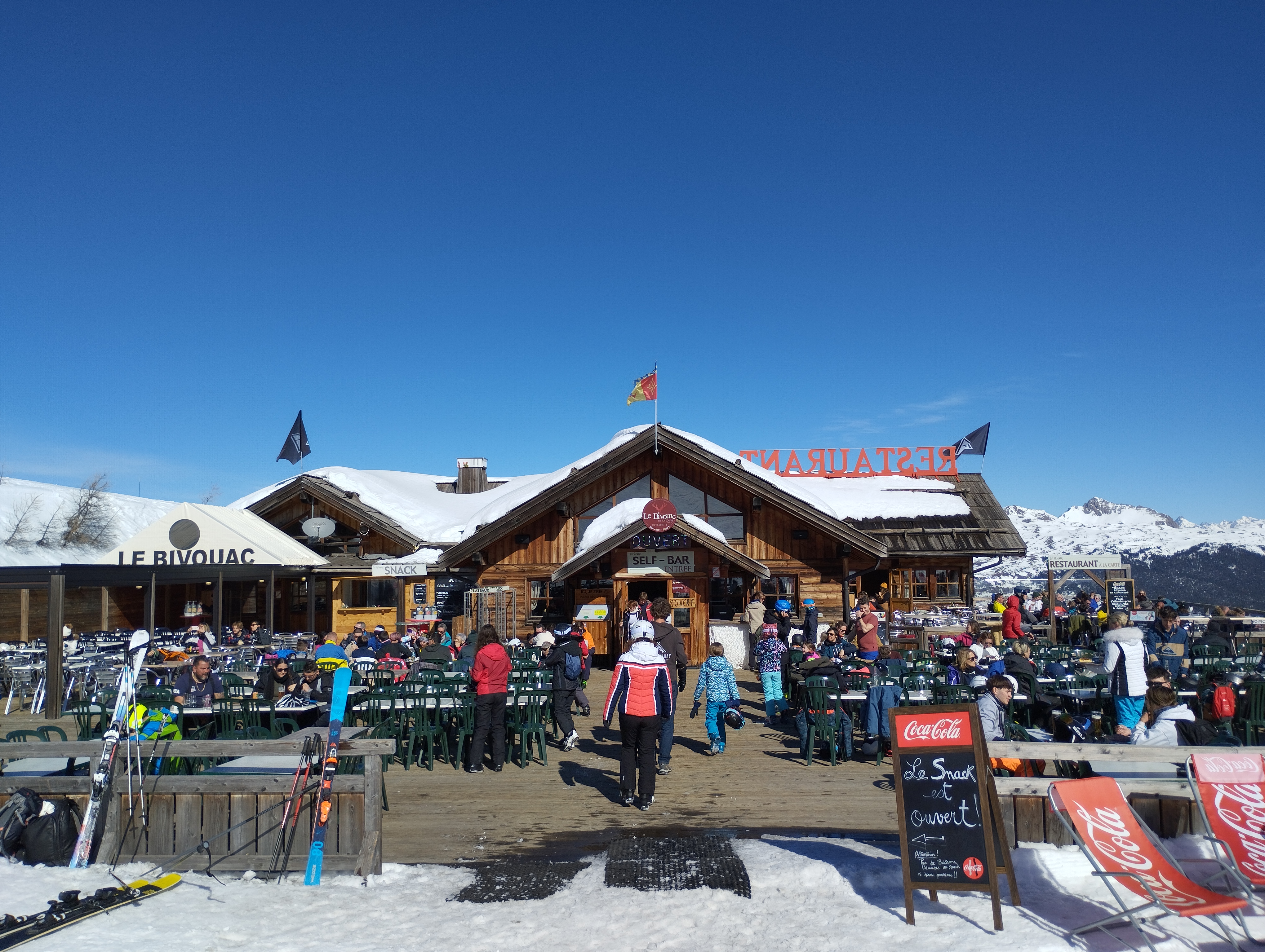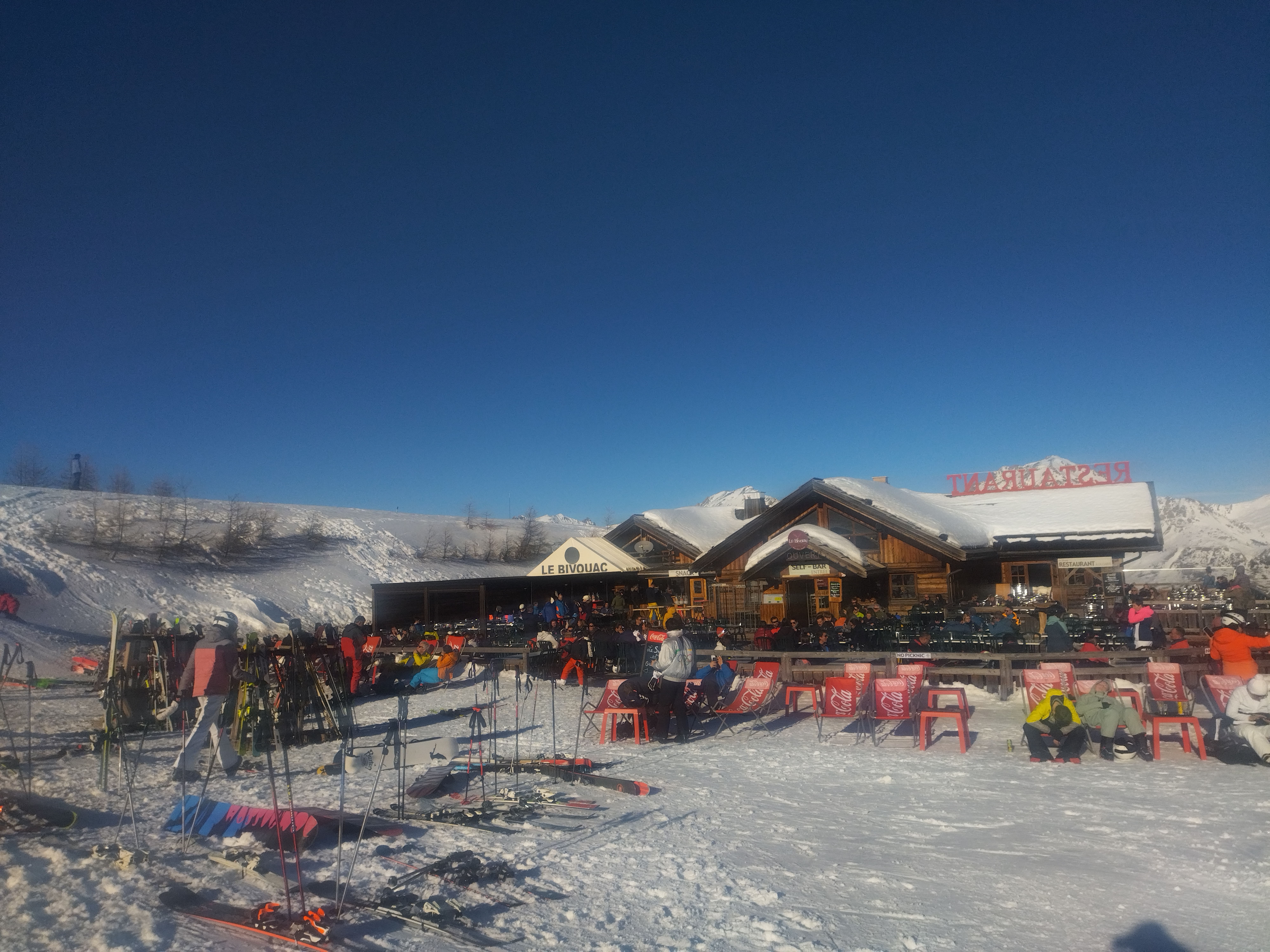 Belle ambiance dans ce lieu au milieu des pistes. Le Bivouac propose trois formules différentes allant du restaurant servi à table, à la cafétéria bien tenue et avec un choix vraiment différent et un snack rapide à l'extérieur. Une vue imprenable sur les cimes du domaine de Serre Che en écoutant une musique prodiguée par un DJ maison. Vraiment sympa