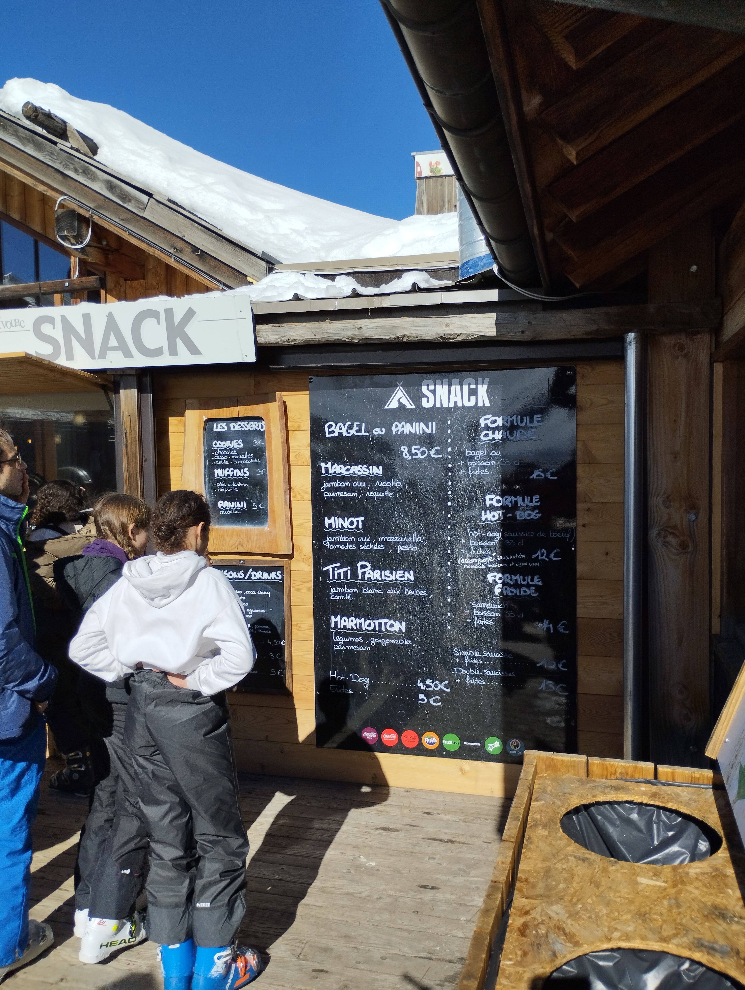 40 minutes d’attente pour avoir un panini… Nous aurions aimé être prévenu avant de passer et payer notre commande…A l’intérieur, le self service était bien plus rapide. Rien à dire si ce n’est que nous aurions trouvé normal que le bol de soupe à plus de 8 euros soit plus gros que la tasse d’un café allongé … Dans les autres restaurants sur les pistes testés lors de notre séjour, les soupes étaient servies dans des grosses assiettes creuses ou de très gros bols…