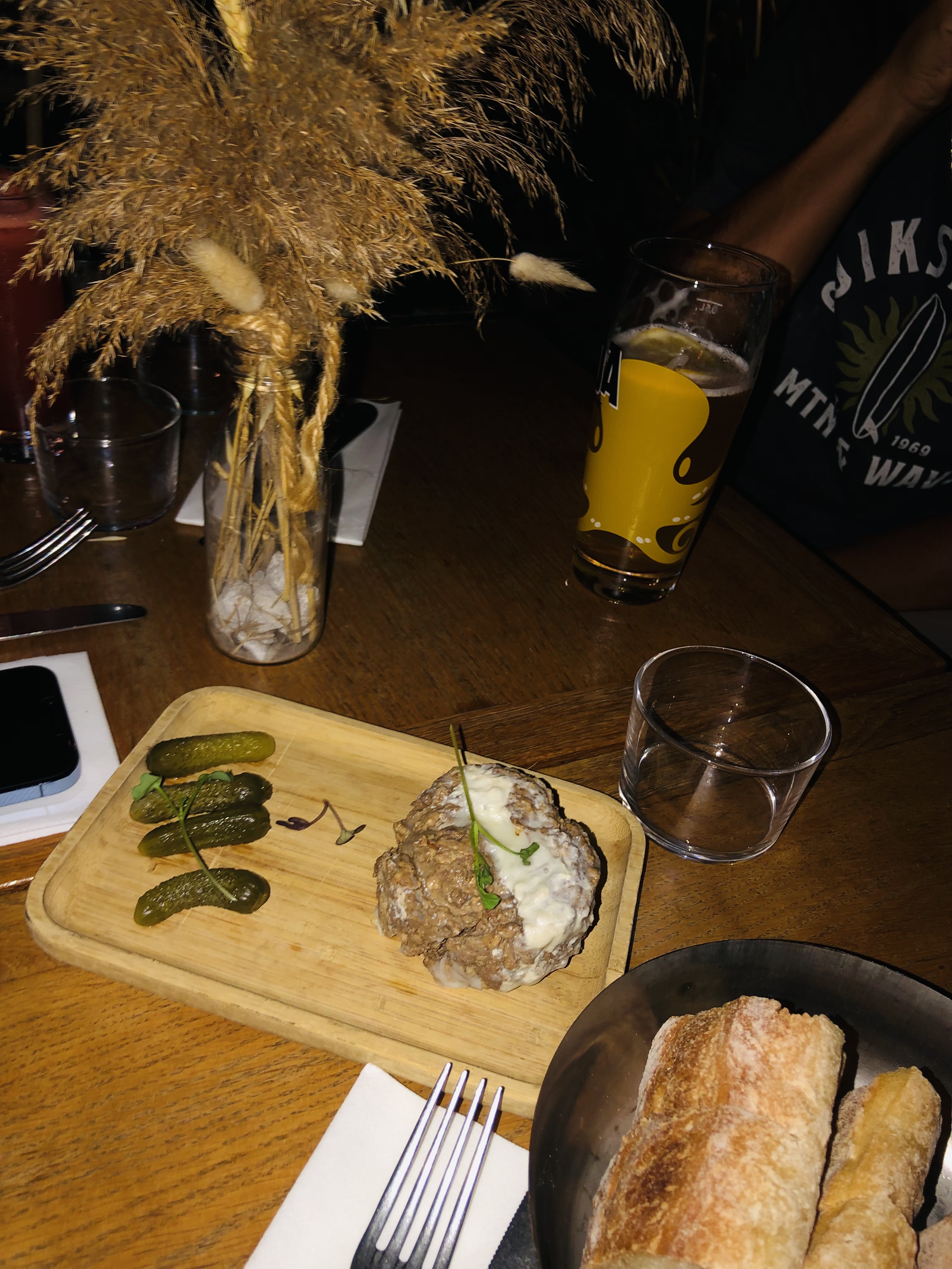 Un subtil équilibre de convivialité et de saveurs dans un cadre chiadé, le Bivouak ! Une belle équipe, sympa et efficace. Une pépite au bar: Anthony (aka Coco)! Merci encore pour ce moment magnifique. Je vous conseille de lui demander son Fameux Espresso Martini, une merveille dont il a le secret. Côté cuisine, le chou-fleur rôti est très très bon, sa petite salsa est une vrai bombe de saveurs... parfait pour l'apéro. Burger maison, frite fraîches (la base), bon mais une belle sauce, (un peu plus aussi) amènerait de la gourmandise. Petit moins a rectifier (même si c'est bon), le Apple Pie. L'énoncé porte un peu à confusion, on s'attend plus au Pie américain qu'à une tartelette à la Française. Allez y, amenez vos amis et surtout réservez ! A très bientôt !