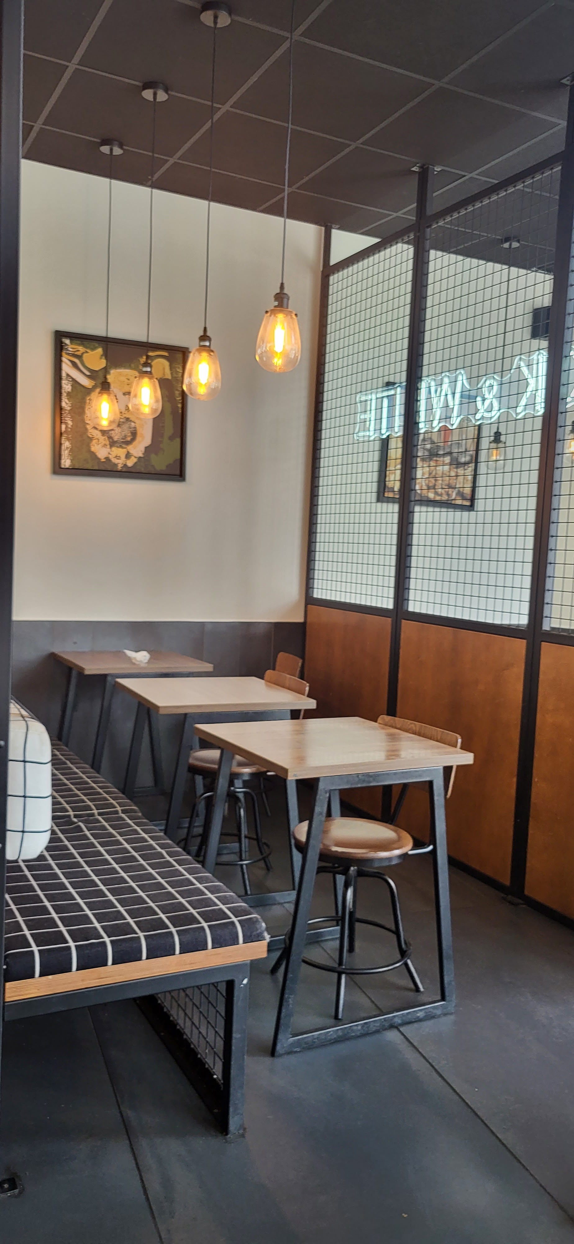 Nous étions de passage sur Saint Etienne ce jour et sommes allés au B&W burger. Salle propre, spacieuse et bien agencé. Les commandes se font sur la grande tablette et beaucoup de choix. Malheureusement, ce jour là les burgers étaient un peu froid mais étaient quand même assez bien.. Je mets 5 étoiles car un membre de l'équipe Éric s'est montré très a l'écoute, compréhensif et réactif... A bientôt pour manger de bons burgers chaud ;)