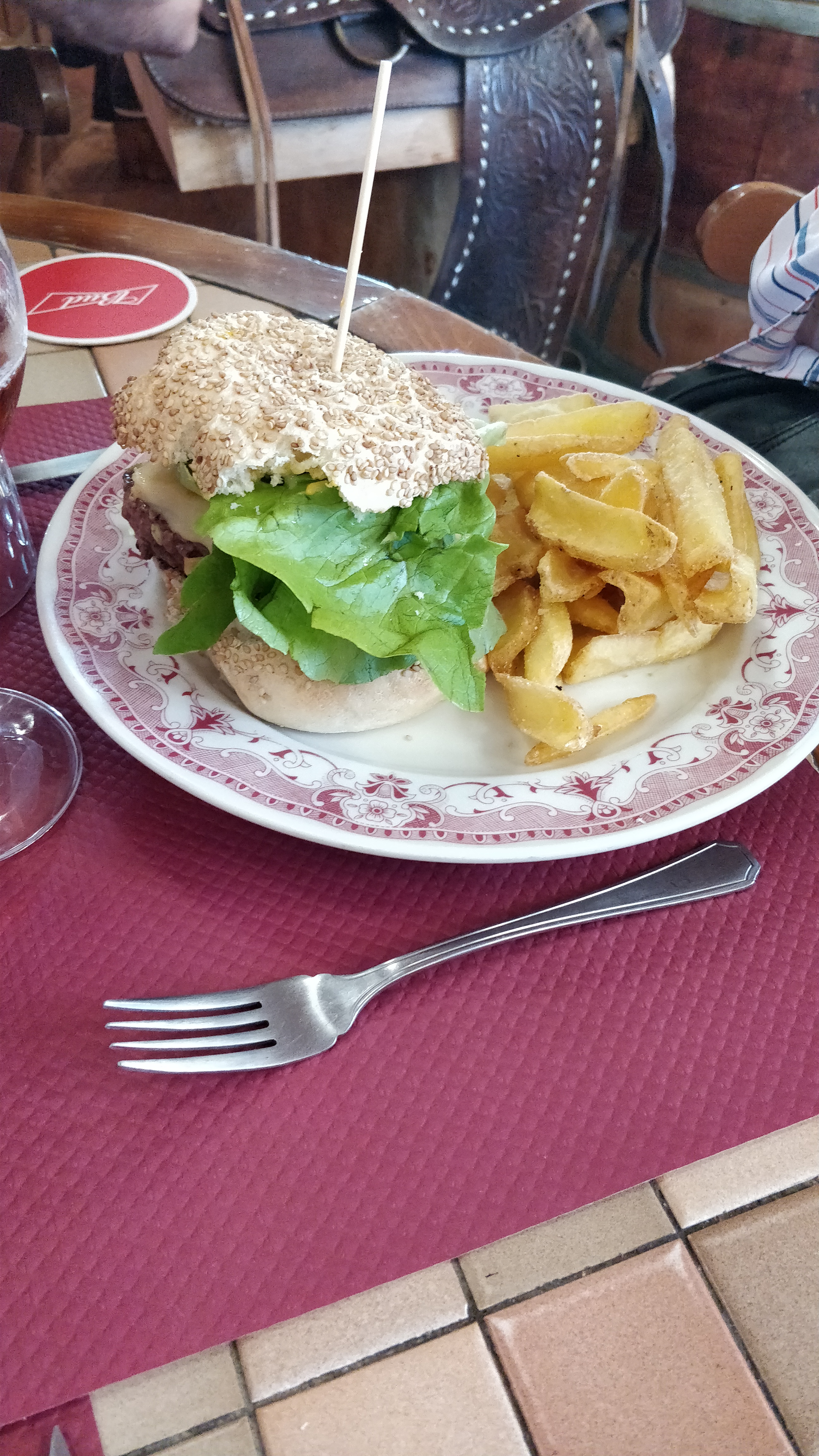 Pas assez nombreux pour avoir les vrais chaises… tellement mal assis que j’ai due partir après le plat, 27,90 pour 2 burgers dont 1 enfant avec quelques frites et en boisson un demi et un sirop… je vous laisse vous faire votre propre avis, perso j’y retourne pas.