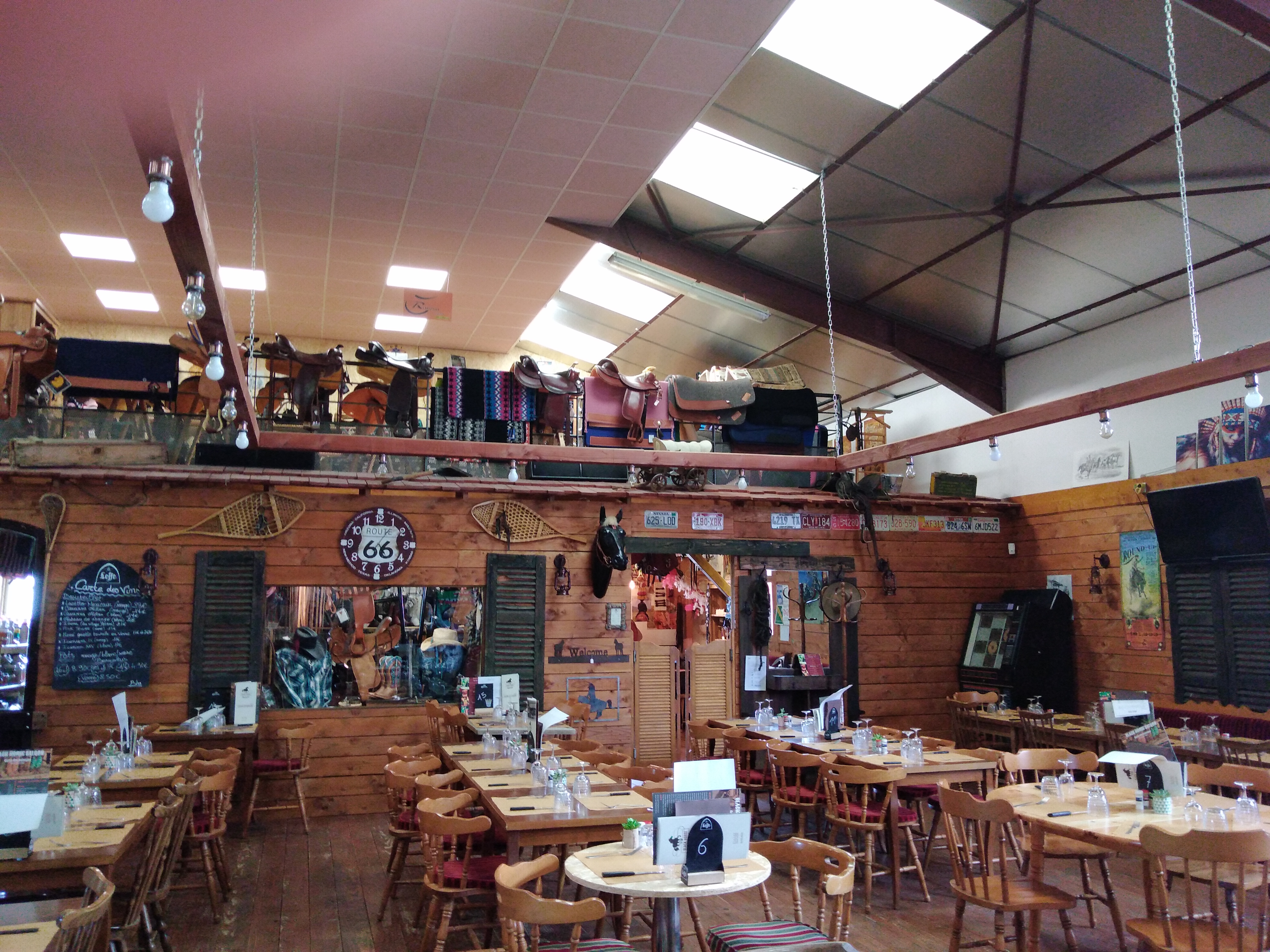 Restaurant sur fond d'Amérique. Musique country avec un cadre porté sur les States. Les prix sont très acceptables. Du Burger🍔 à l'entrecôte et toutes sortes de boissons. De plus une boutique sur place pour amateur de chevaux et toujours de country. Le tout dans un grand espace. A faire et à voir.