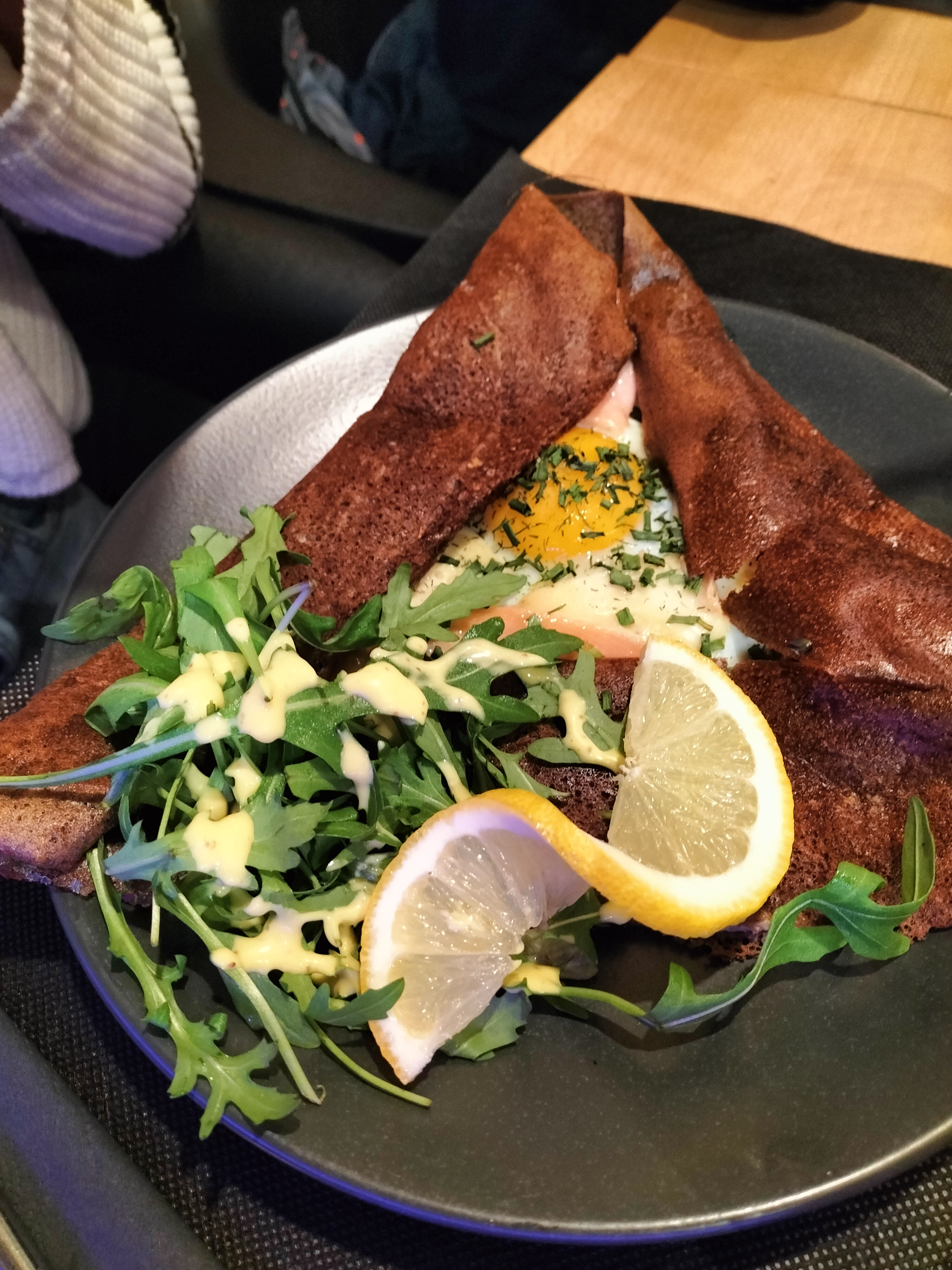 On peut y déguster de délicieuses crêpes équilibré avec un peu de salade Un coup de cœur !!