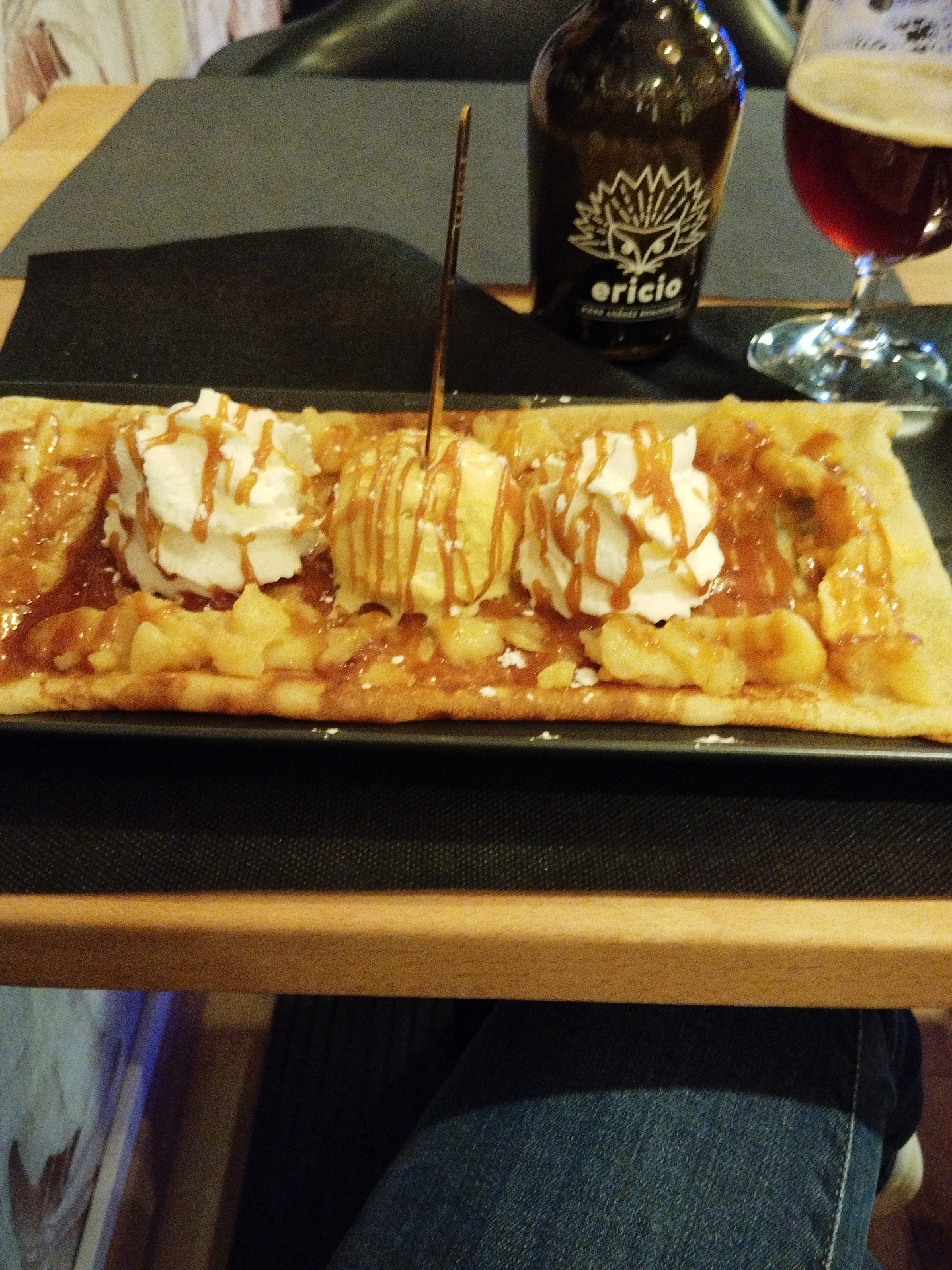 Si vous souhaitez goûter à la crêpe spéciale normande, c'est un bon choix. Le patron est très enthousiaste et le prix n'est pas mal.