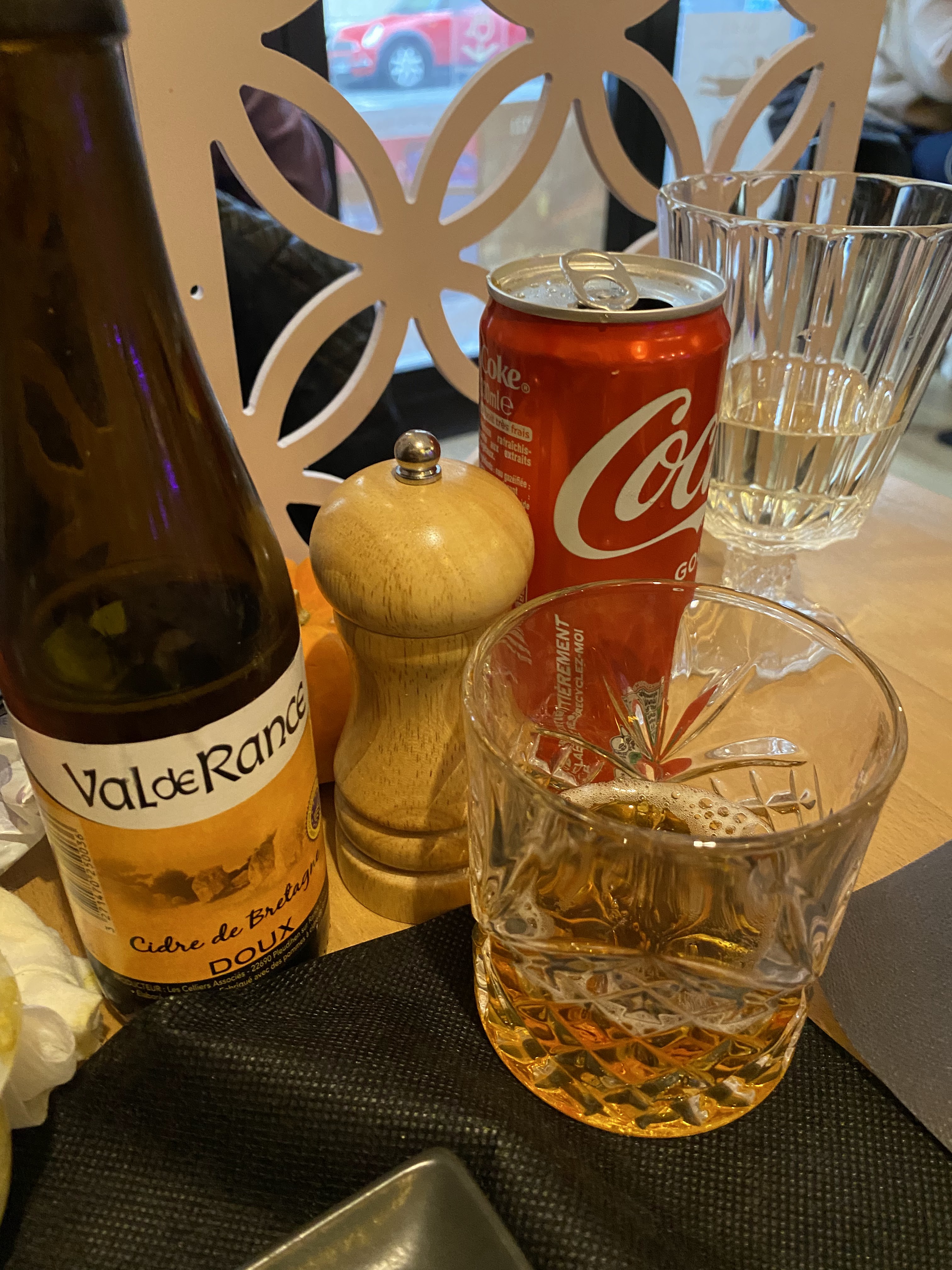 Petite crêperie sympathique. J'ai goûté un cocktail au cidre (bien évidemment) qui était très bon. J'ai pris un Burger Breton avant qu'il parte de la carte (étant le plat du mois) et je ne suis pas déçue. Mes parents ont pris en entrée un plateau de 3 fromages puis une galette Végétarienne et une galette Raclette et se sont régalés. Nous avons fini avec des crêpes sucrées et une salade de fruits. Personnellement j'ai mangé à ma faim et le repas n'était pas lourd.