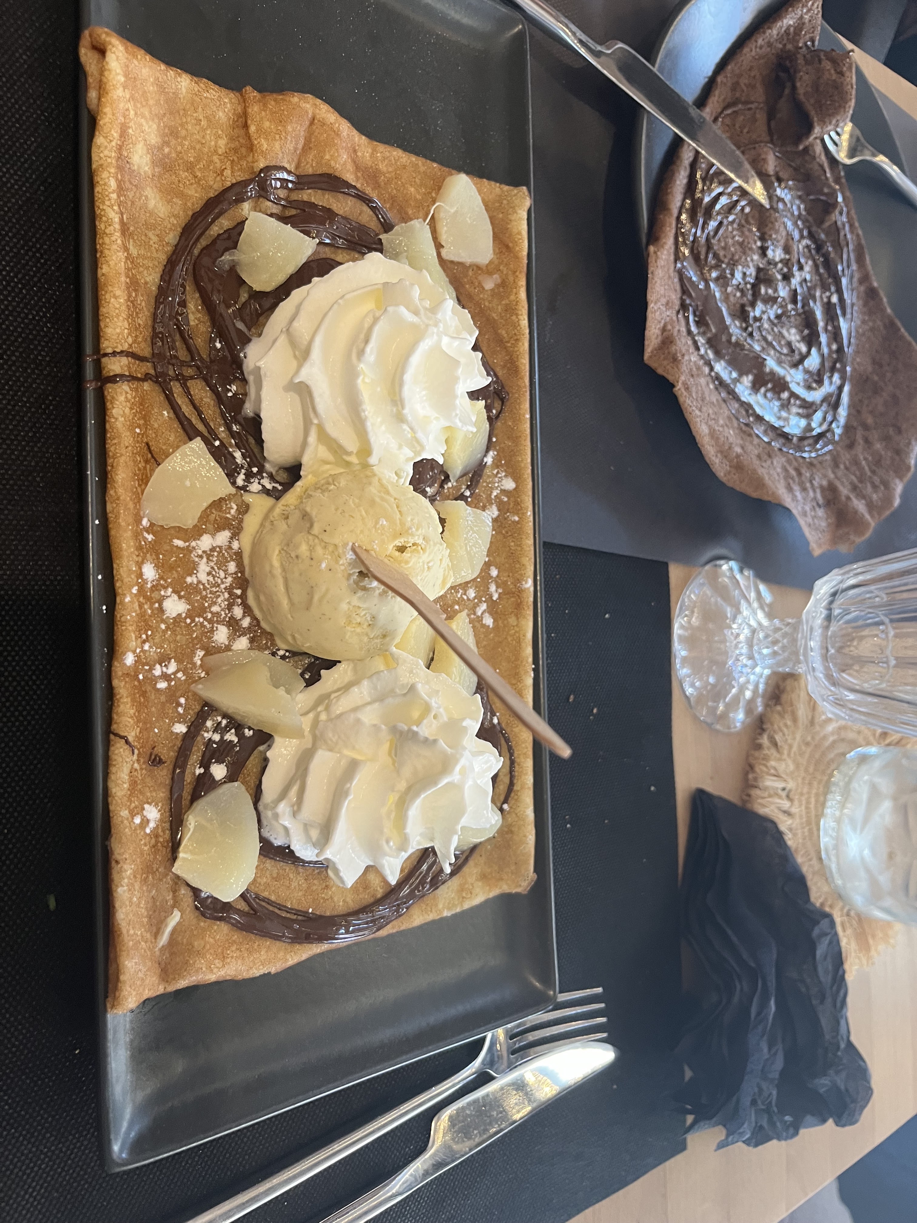De délicieuses crêpes, un environnement petit mais très accueillant et lui et elle étaient très gentils. Il était sympathique et serviable et m'a aidé à traduire certains ingrédients que je ne comprenais pas en français. Expérience très positive !