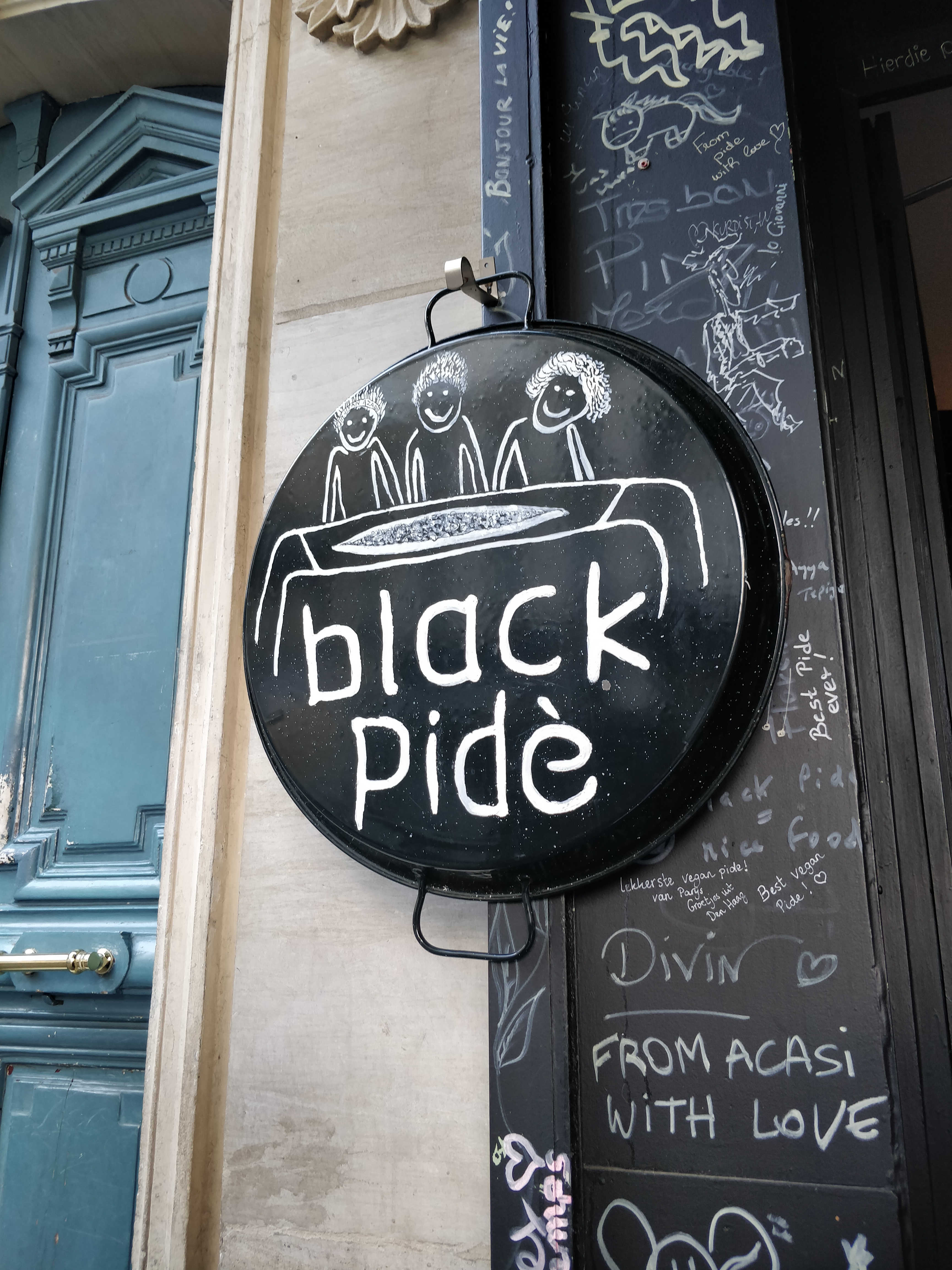 Une drôle mais néanmoins très agréable, sensation d'être chez-soi.D'être à l'aise... Une salle aux murs remplis de prénoms, de courtes phrases , dans différentes langues pour signifier son passage, sa satisfaction des plats ou son amour pour l'Autre ! Ajoutez à cela la sympathie des responsables ( patrons ?) qui , en attendant nos plats échangent sur divers sujets. Et en plus nous nous sommes régalées avec les délicieuses et généreuses pides ! Merci 😊