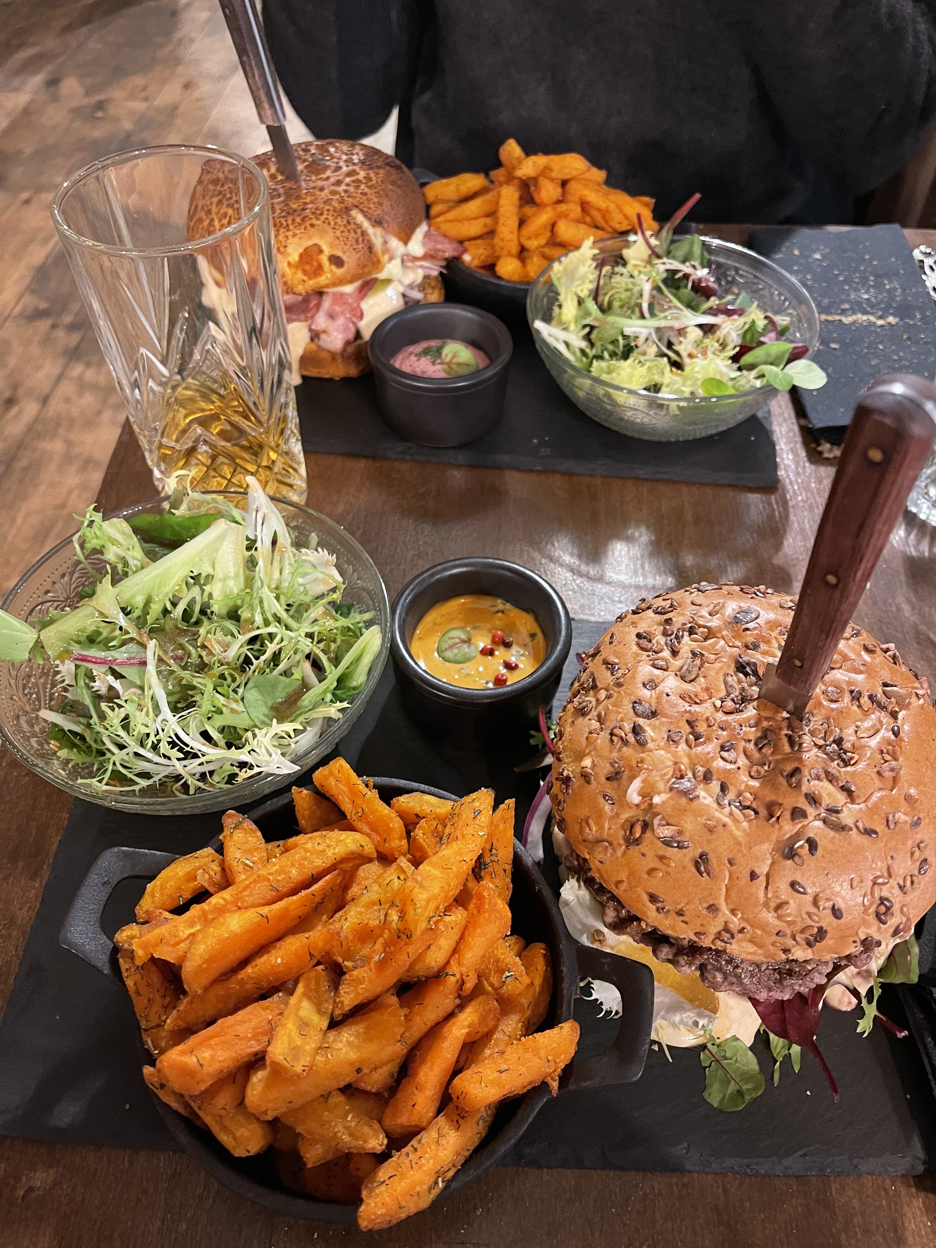 On cherchait à manger des bons burgers mais pas d’une grande chaîne et bien on a été servis. Pain noir léger avec des sauces maison comme par ex betterave originale et tres bonne. Frites type potatoes bien assaisonnes. Et pour finir on garde volontiers une place pour leur dessert maison tres bons et soignés. Merci pour l’accueil et à la prochaine 😋