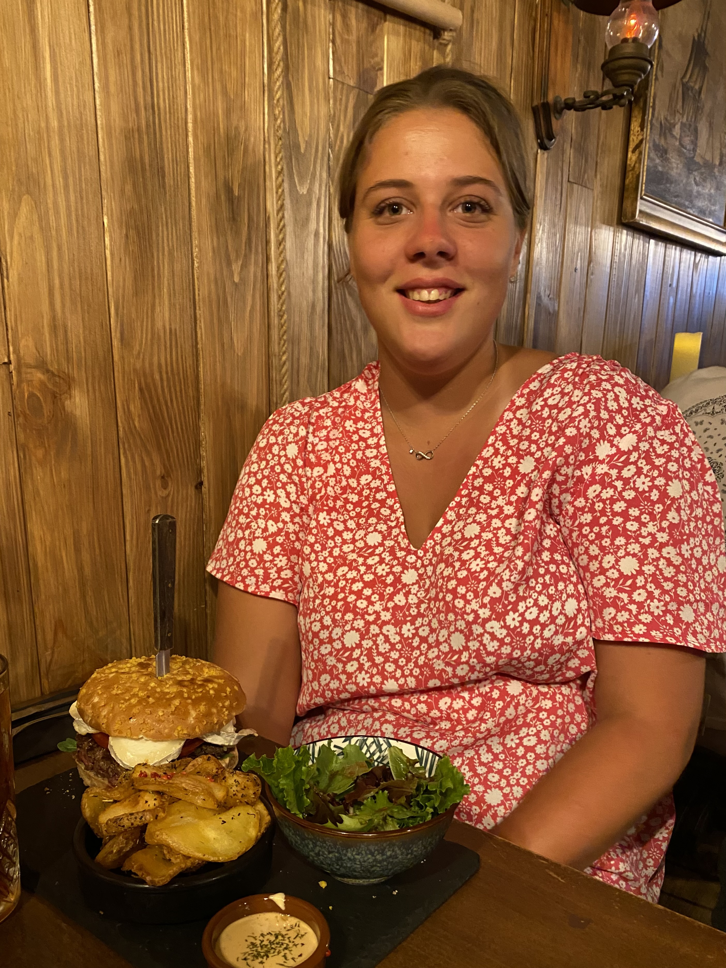 Le cadre était sympathique tout comme l'accueil. Cependant je ne me suis pas vraiment régalée, je pensais que les hamburgers étaient excellents au vu des avis sur google et des photos. Malheureusement, le serveur ne nous a pas demandé la cuisson des steaks... ils étaient donc a point ce qui n'est pas de mon goût. Je mets donc 3 étoiles pour les poivrons offerts en entrée, la gentillesse et le cadre de pirate.