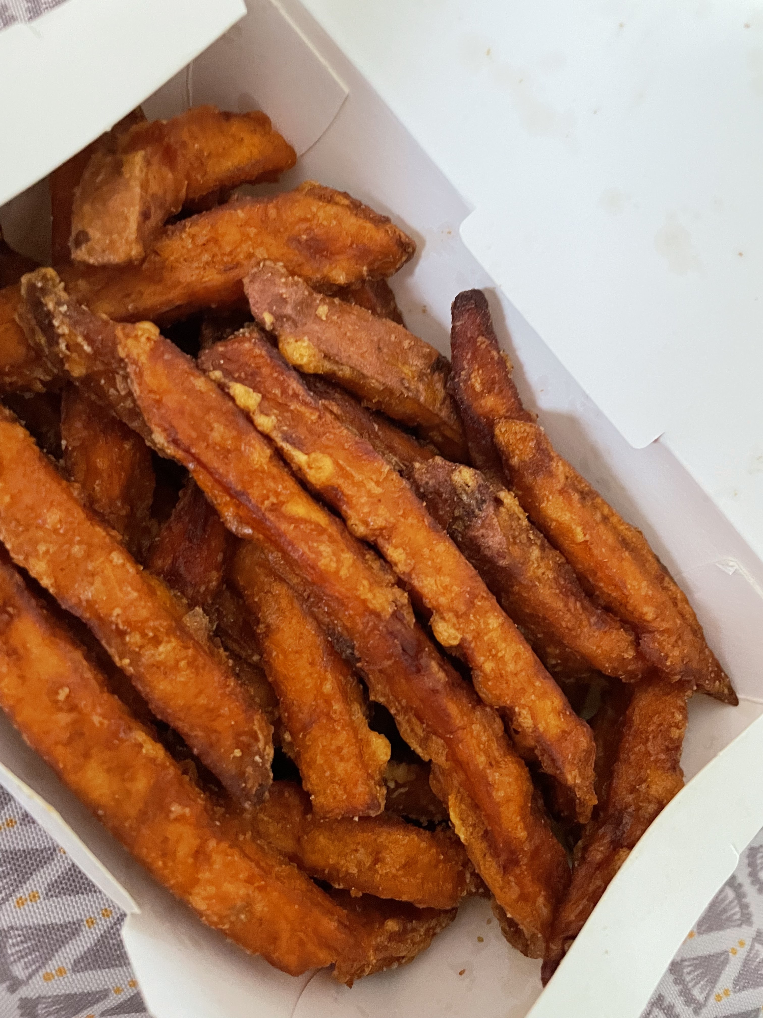 Les frites de patate douce étaient super bonne et le Burger aussi en plus les prix étaient abordable je recommande ( l’ambiance était tres agréable )