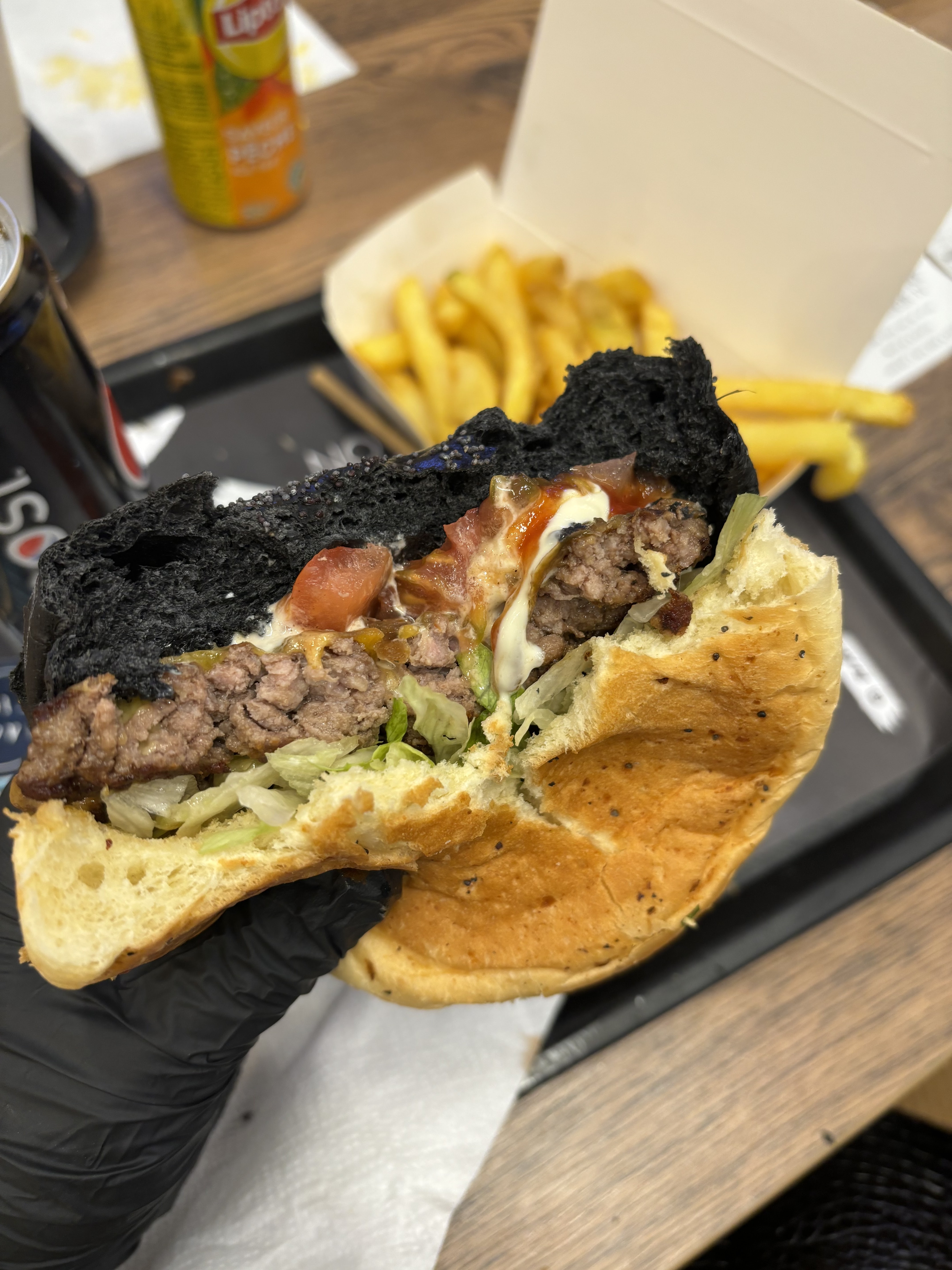Je recommande ! Belle découverte ! Un concept (moitié noire - moitié blanche) que j'ignorais avec de bonnes sauces. Les frites sont bien meilleures que chez des mastodontes du secteur. Bonne présentation des burgers et un service assez rapide. Par ailleurs, la musique trop forte au restaurant d'à côté altère un peu l'ambiance.