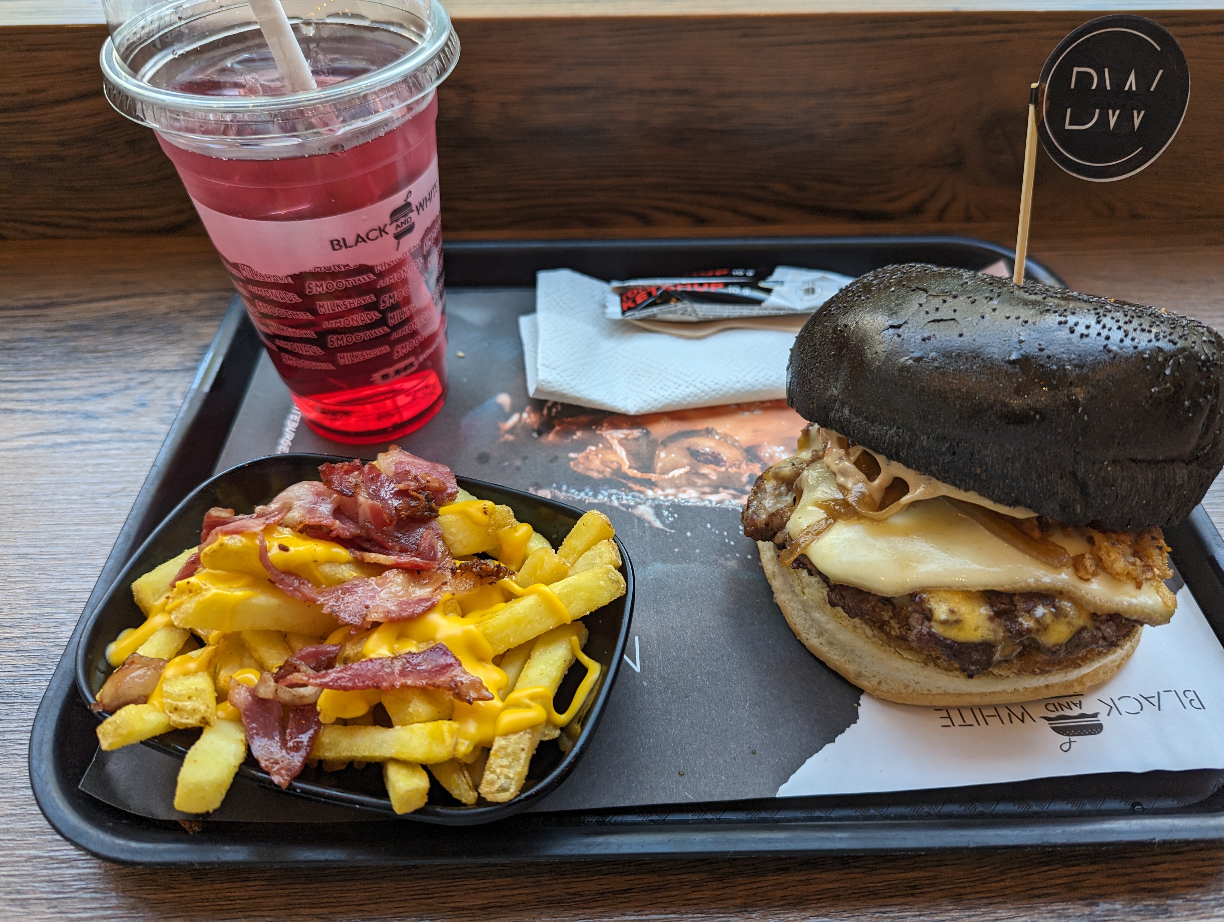Première fois dans un black & White burger, pas déçu ! Des supers burgers maison (les frites aussi), vaut bien plus le coup qu'un macdo ou un burger king. Vaut le détour. Ouvert tard le dimanche, un gros plus.