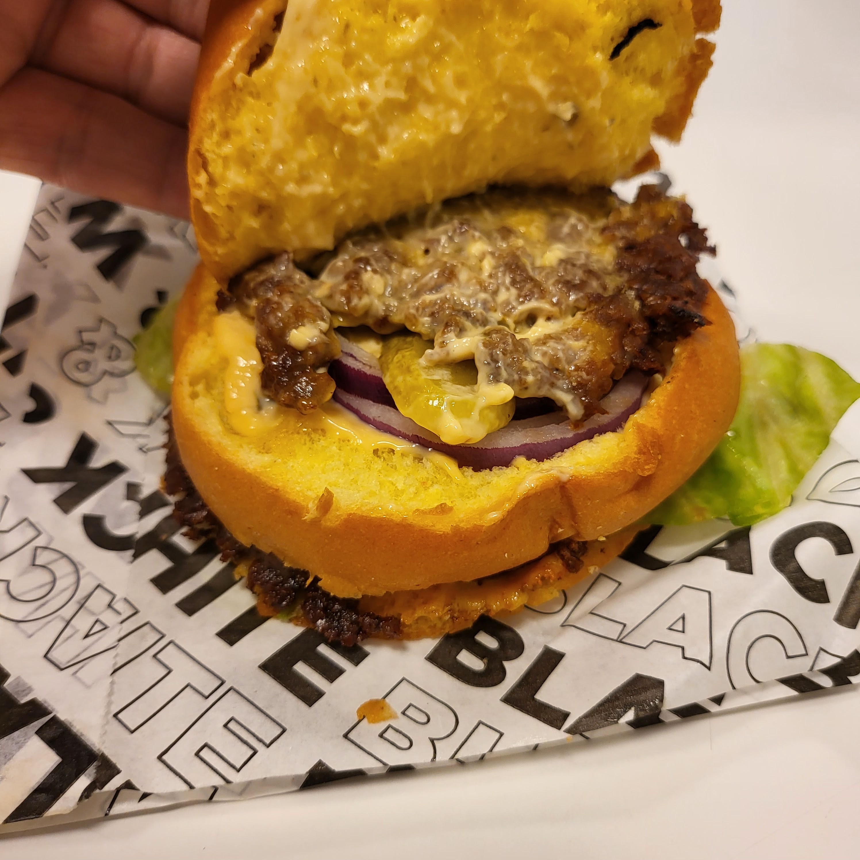Le black and white c’est…( tses le mec il oublier). Non plus sérieusement le burger il était incroyable, carrément je sais même pas comment d’écrire le burger, la sensation, le mélange il est tellement parfait que on dirait un tableau de Van Gogh , le service est vraiment rapide, la cuisine propre, les toilettes propre , les tables sont propres, tout est parfait. Bref tout sa pour dire…( lâche pousse bleu👍🏽)