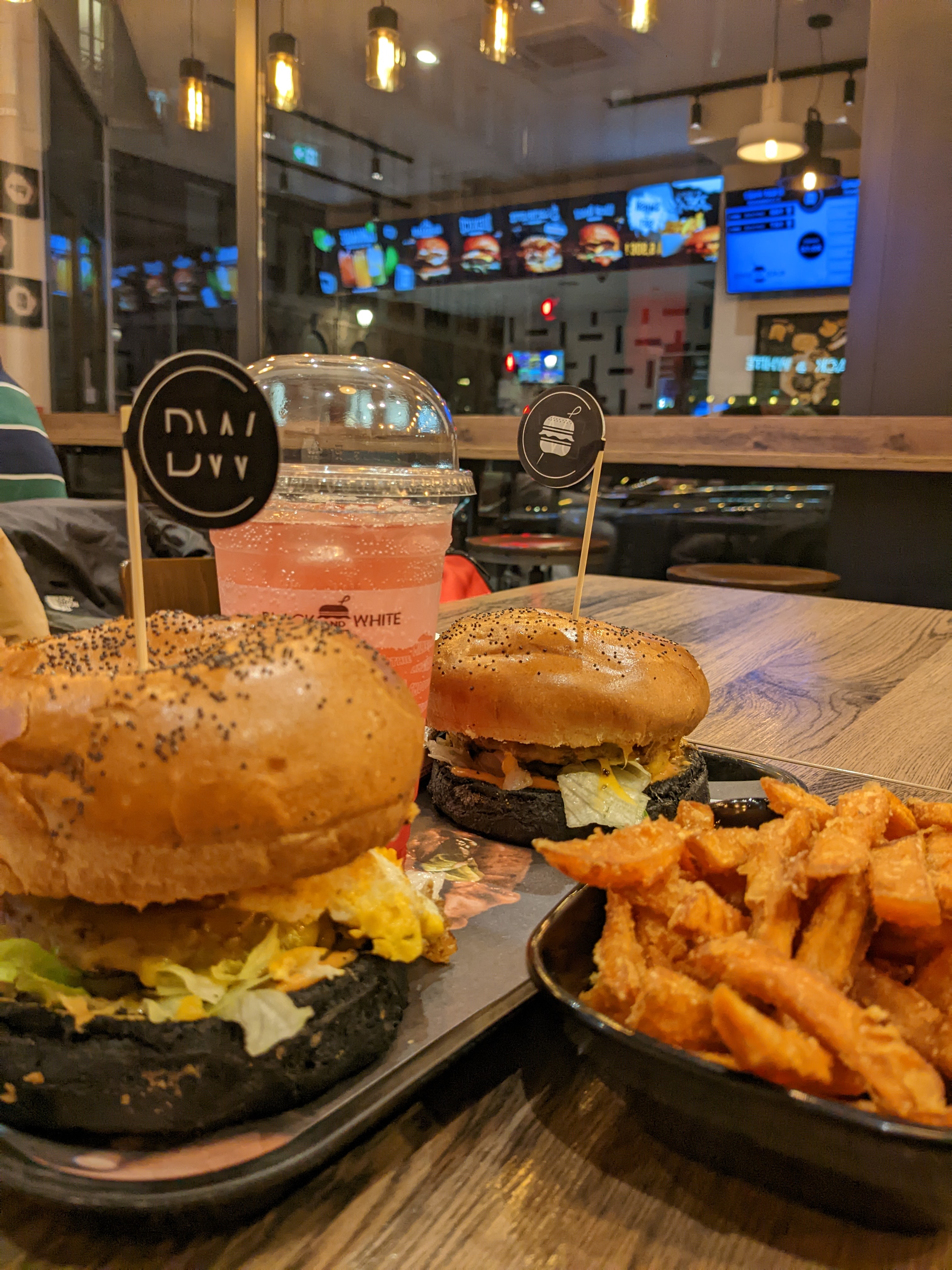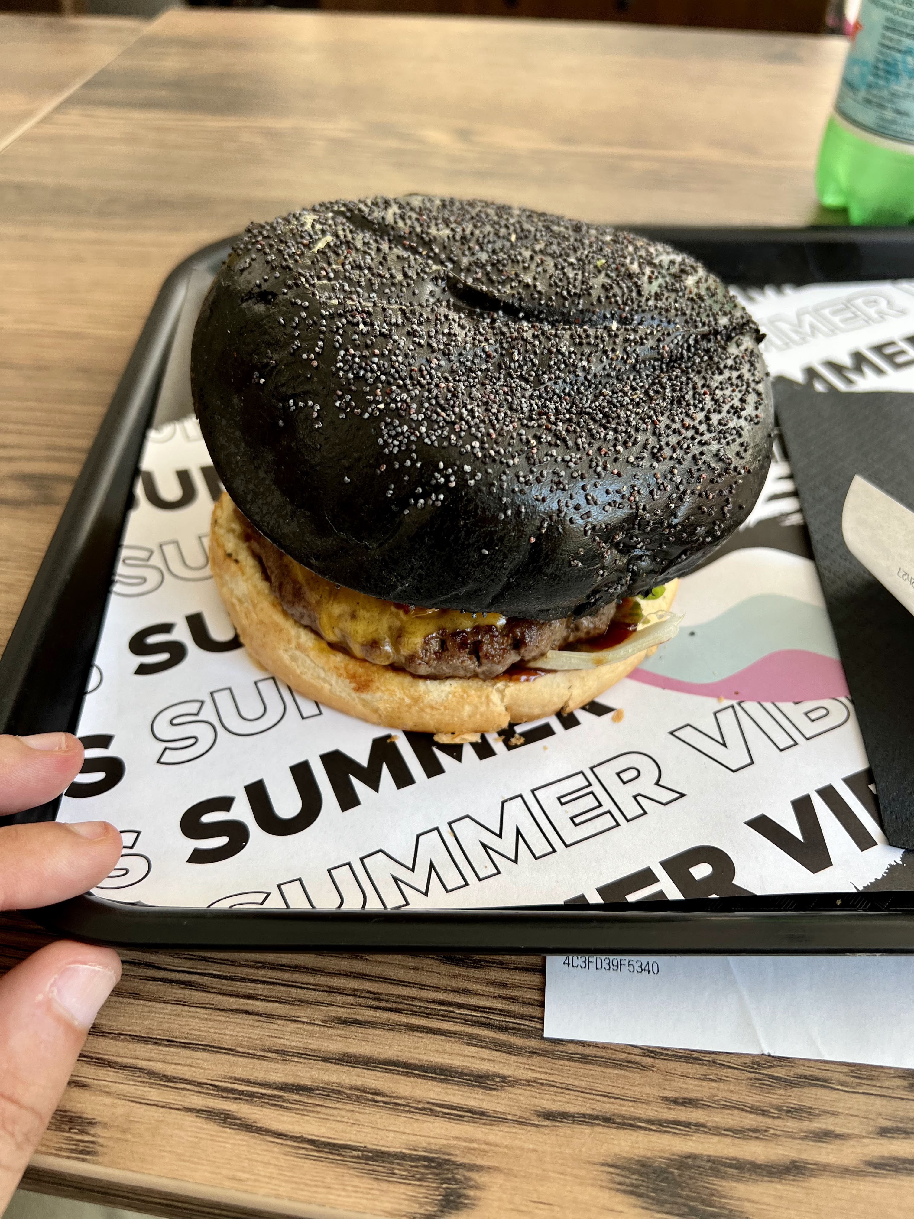 Le burger au pain noir et blanc apporte le contraste parfait entre l’esthétique et le goût , les produits sont aussi frais que les cuisinier et serveurs . Une découverte surprenante qui m’a réveillé les papilles gustatives