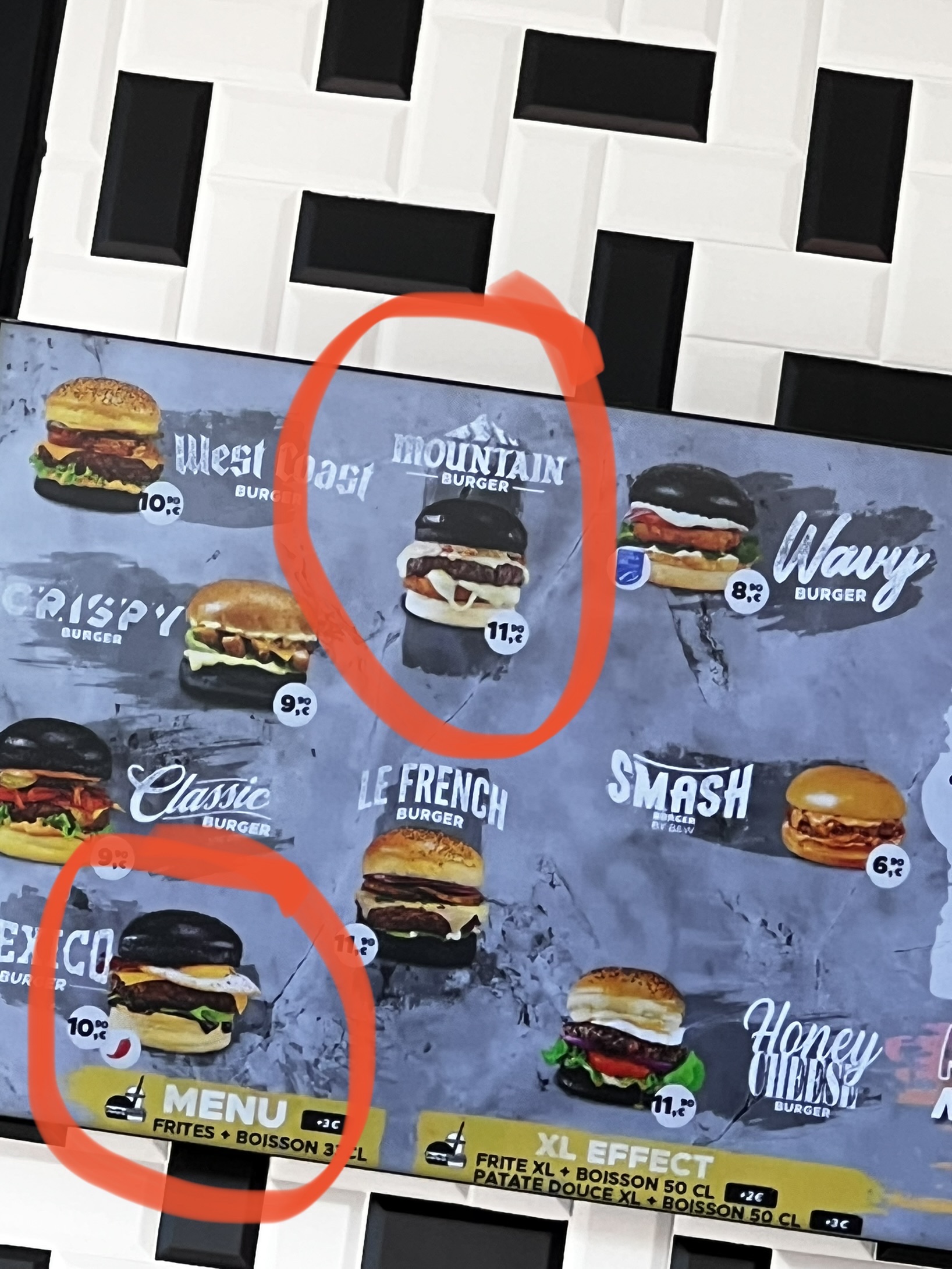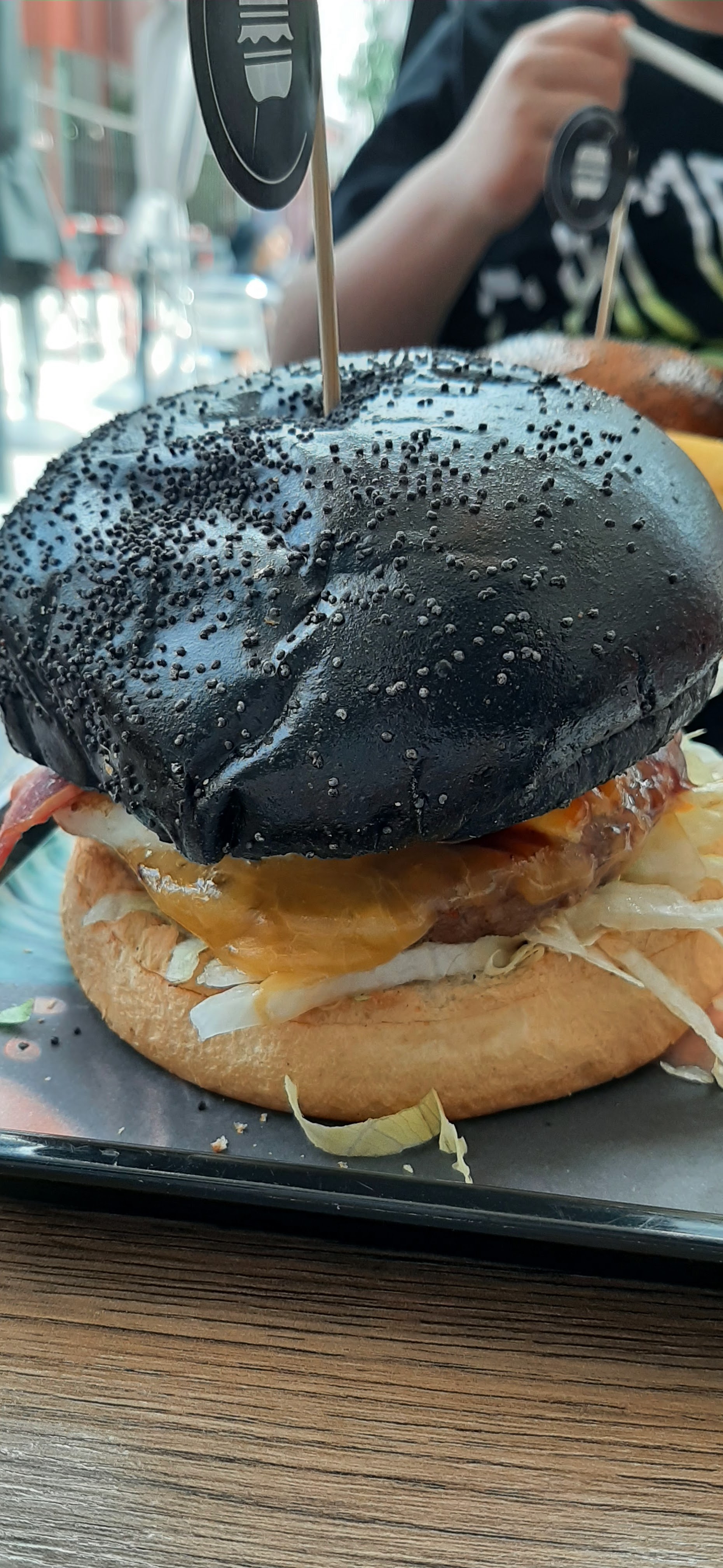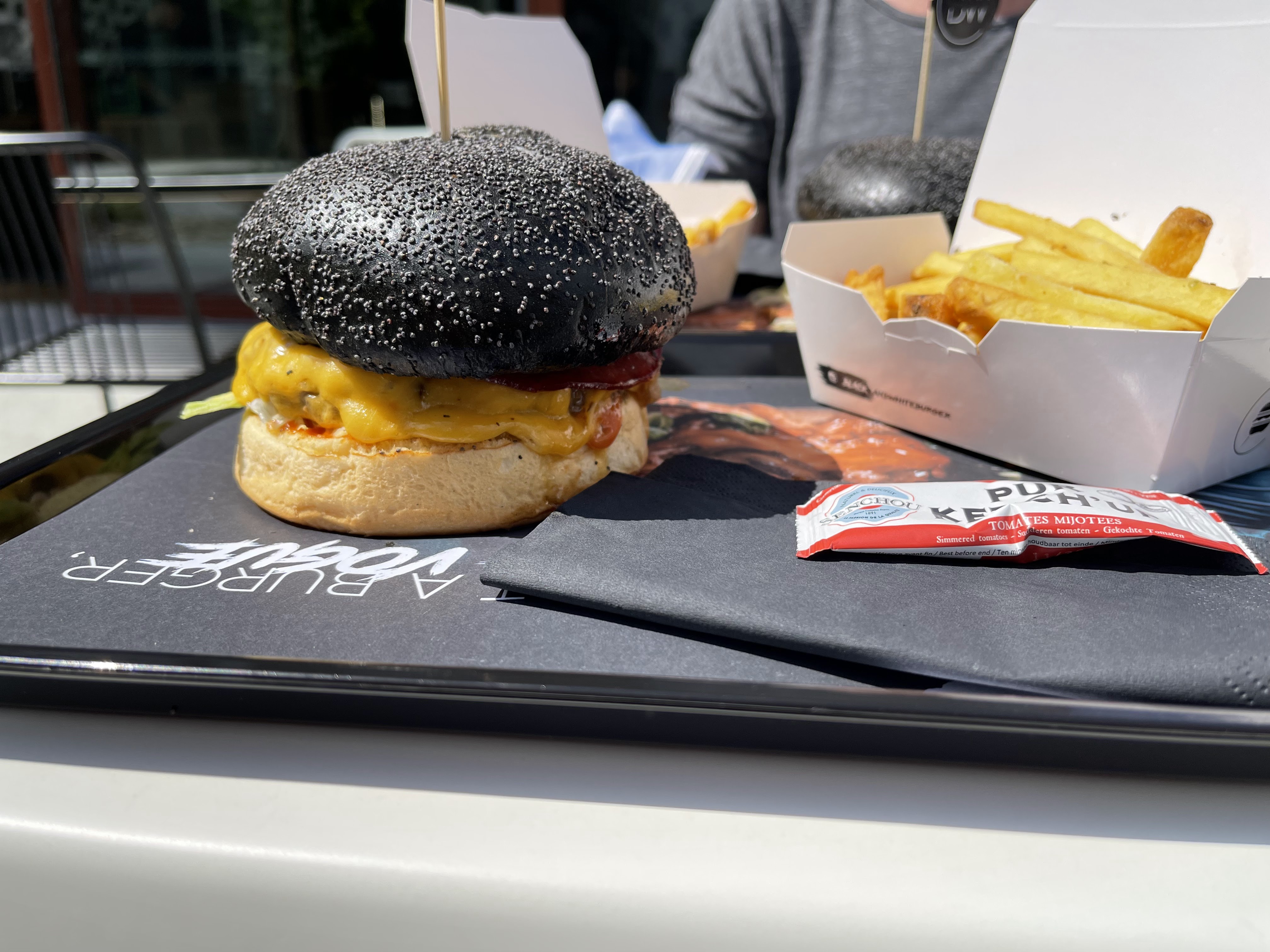 Je suis extrêmement déçu par l’expérience que je viens de vivre. Petite découverte pour moi. Pain noir dans un Burger, why not. Le décor est sympa, ça a l’air propre, cosy. Les prix sont destinés à des amateurs de burger à mon sens. Donc grosse expectation sur la qualité du produit. Je regarde les affiches, les menus et je me dirige vers un Mountain et un México pour leur particularité du pain noir au dessus. Le service se fait à table, parfait. Que fut ma surprise … un burger avec le pain noir en dessous et non au dessus comme figuré sur les affiches, menus etc.. Ça a totalement cassé l’expérience client au premier abord. Car cela ne correspond pas du tout aux indications. Première déception Il y a effectivement plus de pain que de condiments .. je confirme les avis de certains. Dommage car ça avait l’air goûteux. Je suis venu pour déguster un burger et non que du pain. Sinon la boulangerie n’est pas très loin. Deuxième déception Les frites ont encore le goût du surgelé. Très dommage malgré la tonne d’épice dessus pour masquer l’odeur. Alors je peux vous assurer qu’à 15€ on a largement mieux en terme de qualité. Quand on accumule le tout, expérience à éviter à l’avenir Merci pour votre lecture