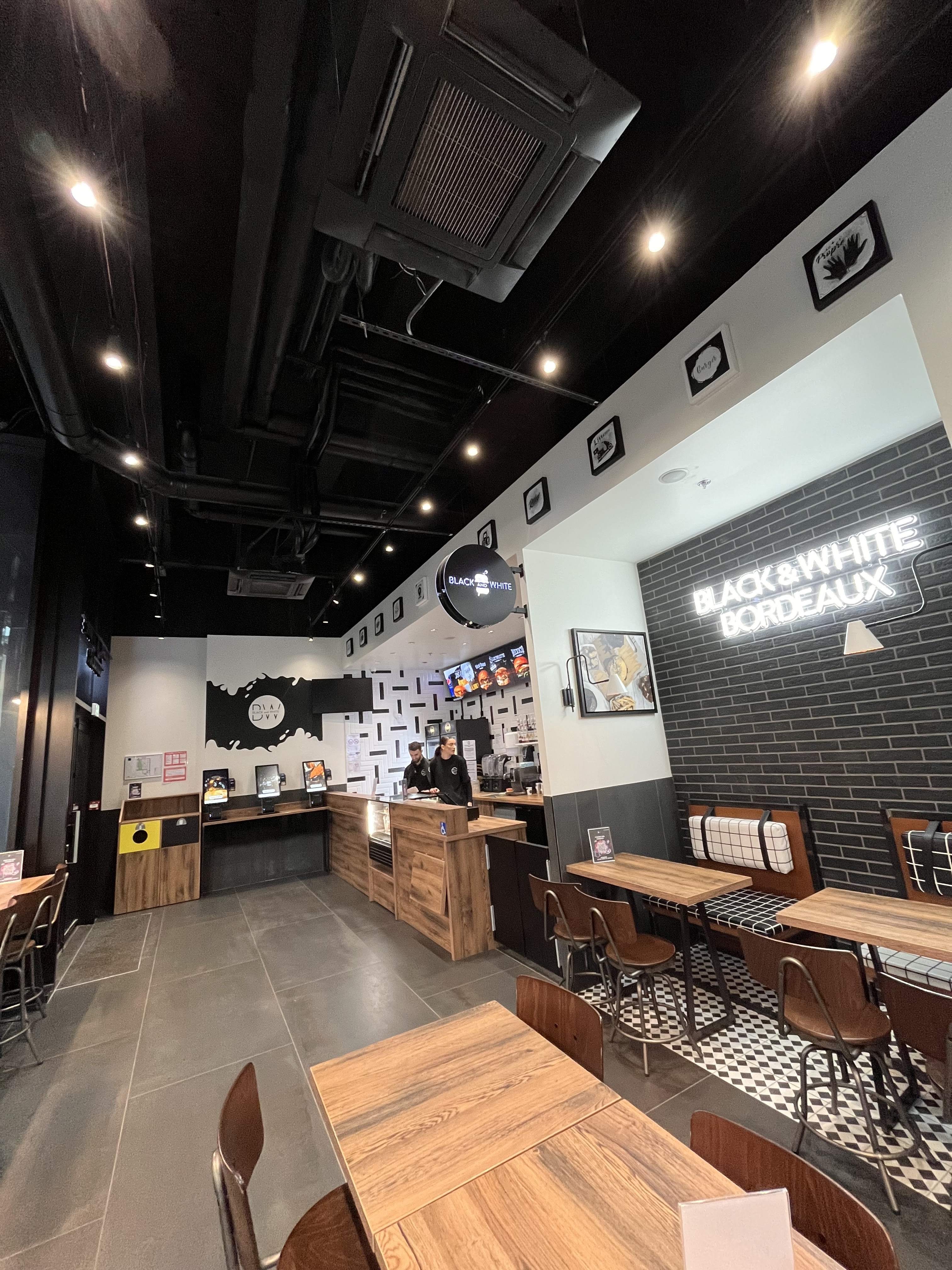 Fast Food black and White incroyable digne d’un restaurant étoilé. Les cuisiniers sont très agréable et le service est pour moi assez rapide (10 minutes ). Les Burgers sont vraiment délicieux tout comme les frites au cheddars. Je conseil ce Fast Food même si les prix sont un peu élevés.